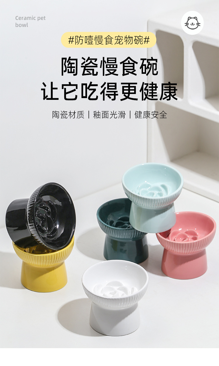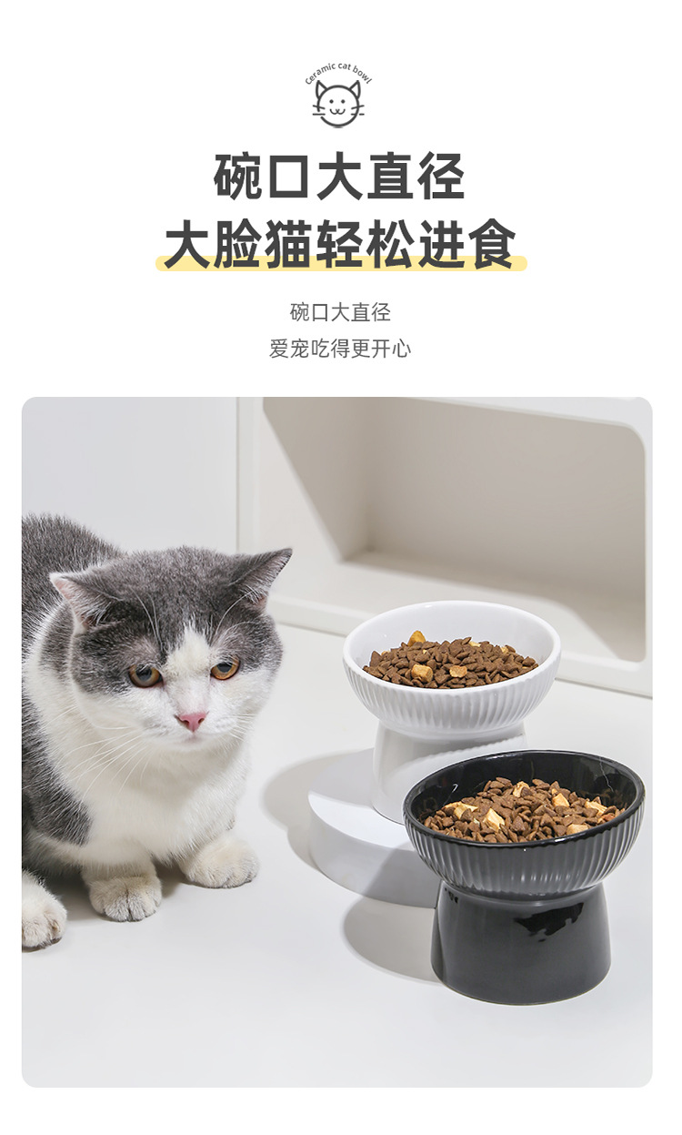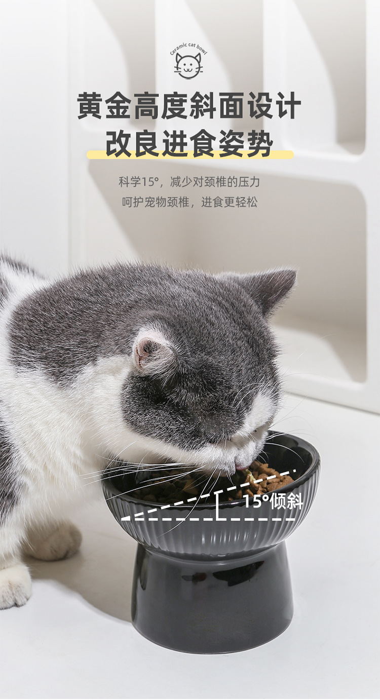 검은 고양이 그릇 세라믹 슬란 입 목 보호 고양이 분지 개 그릇 고양이 음식 분지 평평한 입 마시는 물 고양이 애완 동물 그릇 애완 동물 용품스토어 가기