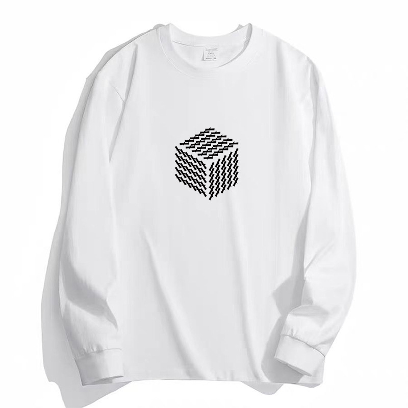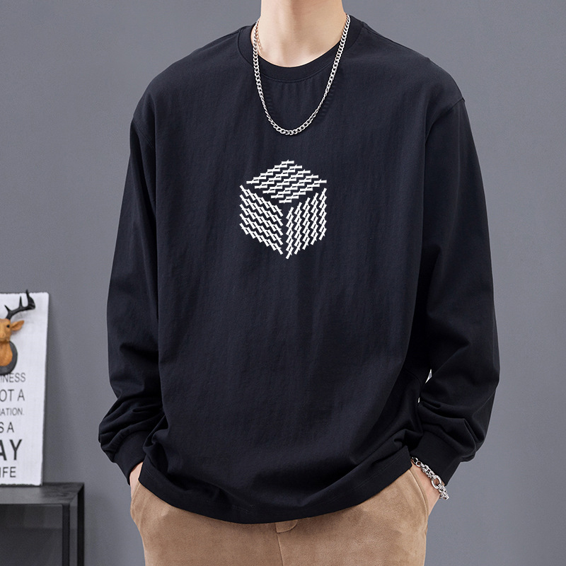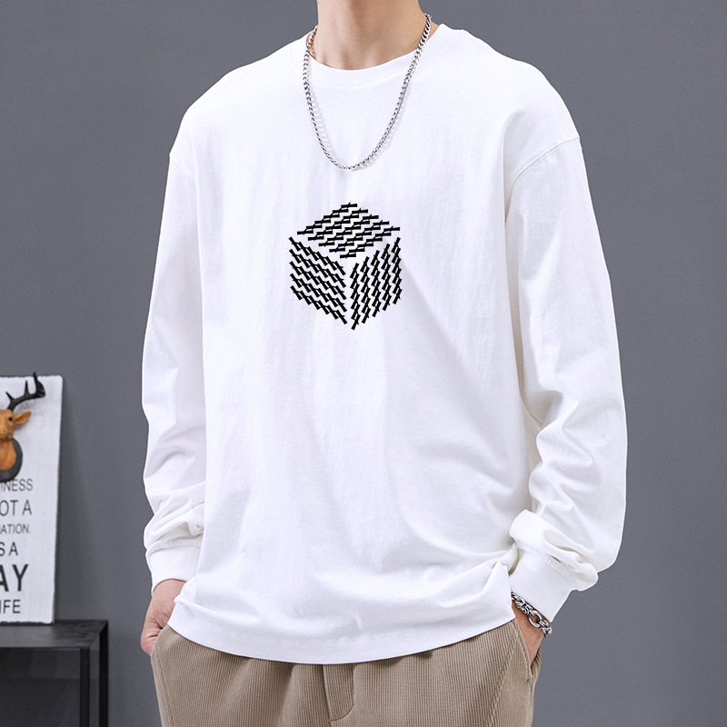 일본식 트렌디 브랜드 레터 헤비 코튼 긴팔 티셔츠 남성용 느슨한 봄과 가을 코튼 화이트 베이스 셔츠 탑스토어 가기