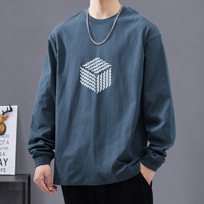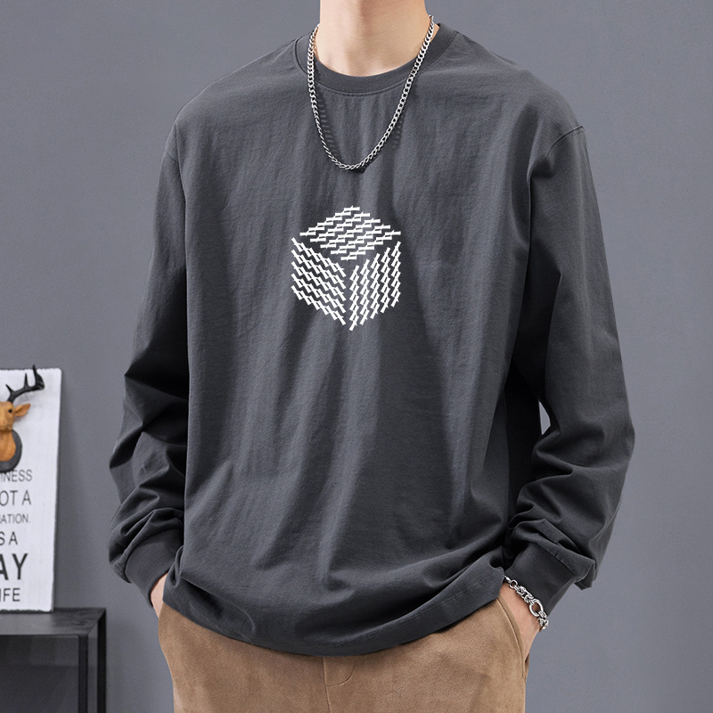 일본식 트렌디 브랜드 레터 헤비 코튼 긴팔 티셔츠 남성용 느슨한 봄과 가을 코튼 화이트 베이스 셔츠 탑