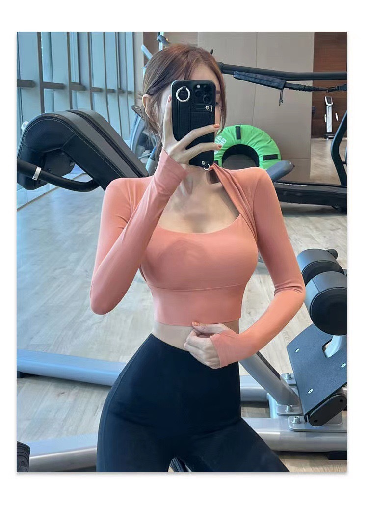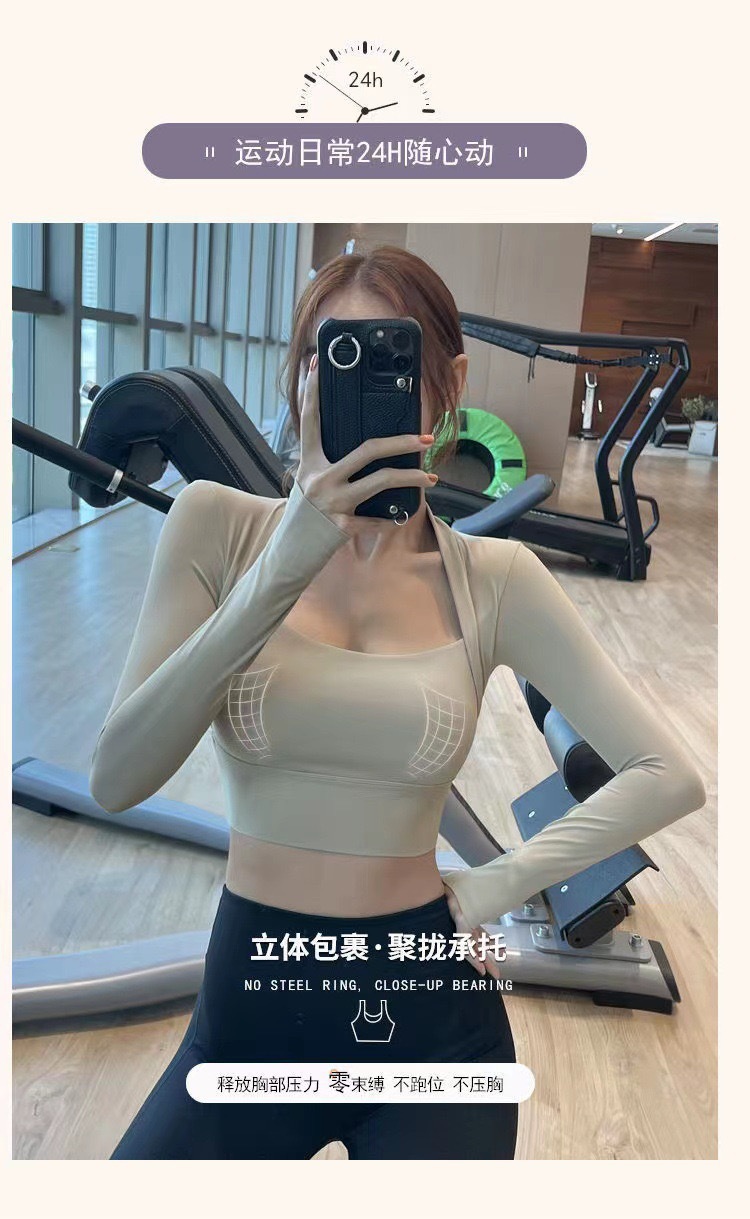 Lulu 스포츠 속옷 여성 충격 방지 가슴 패드 가짜 투피스 피트니스 긴팔 타이트탑 슬림 핏 요가 세트