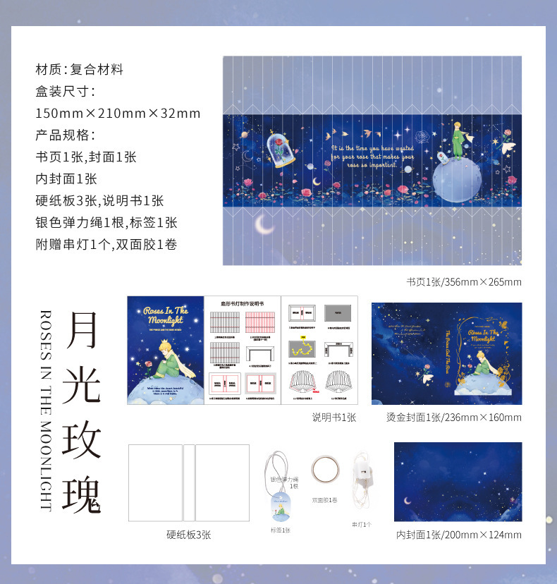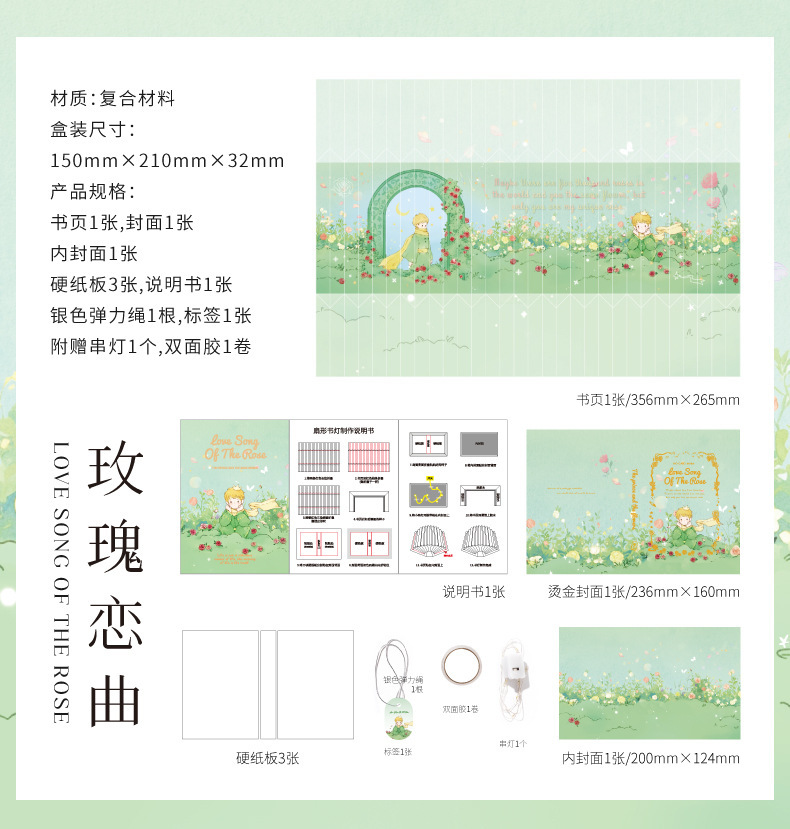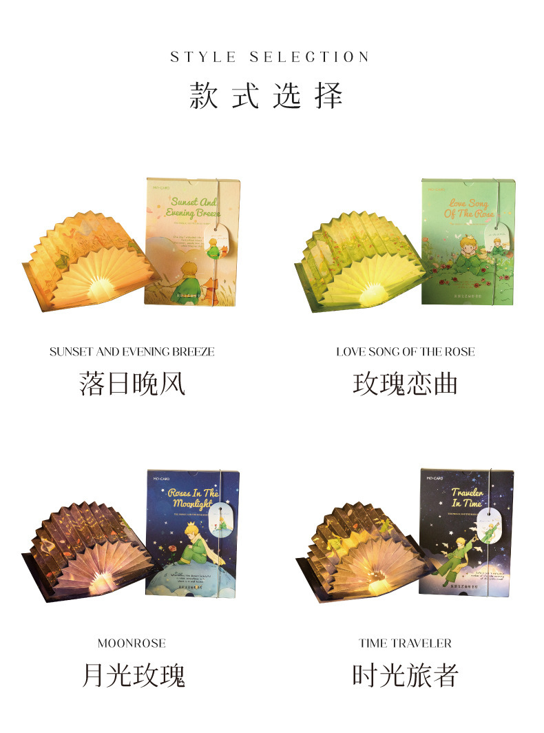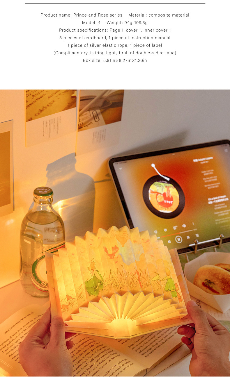 모모 팬 접이식 책 램프 왕자와 로즈 시리즈 로맨틱 아트 바람 선물 수제 DIY 장난감스토어 가기