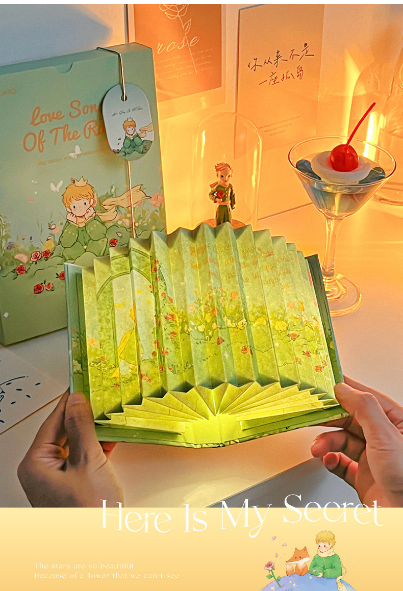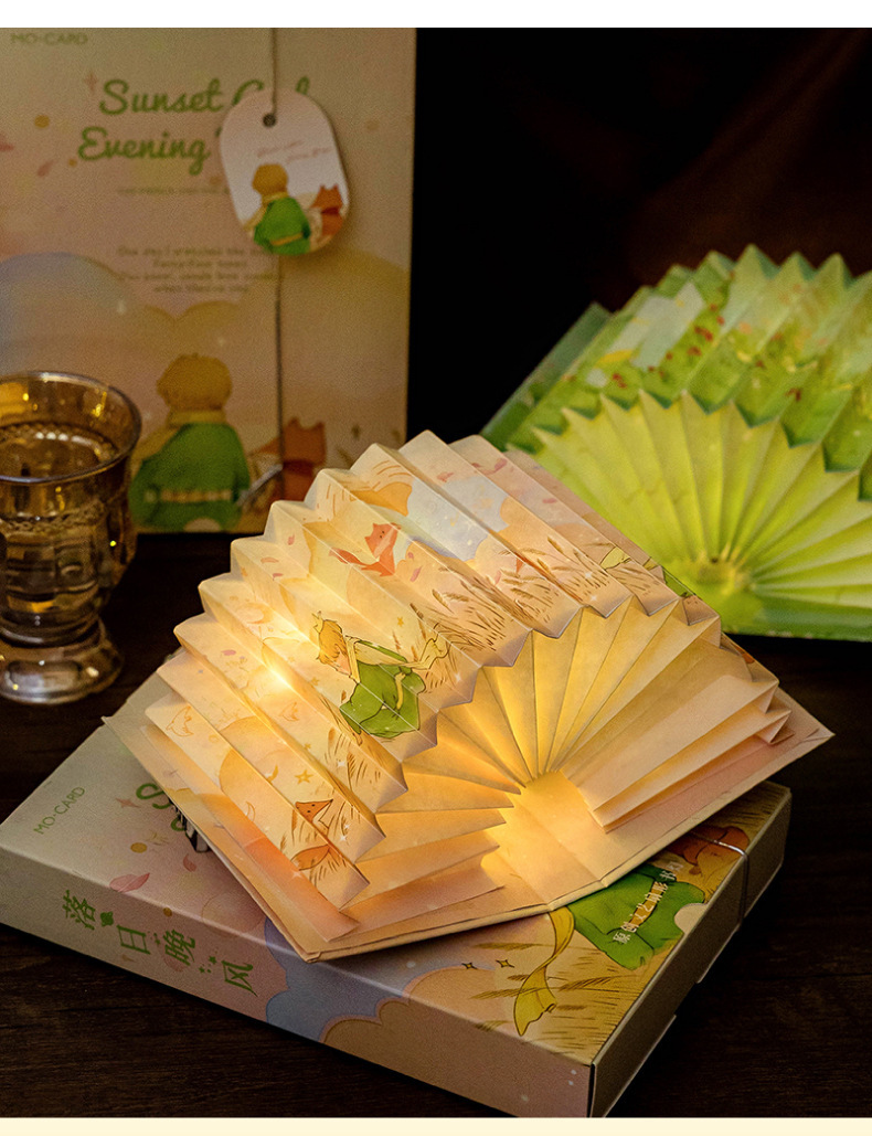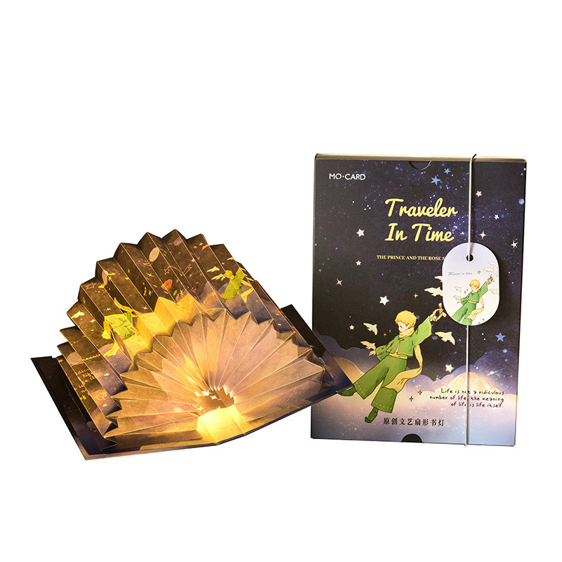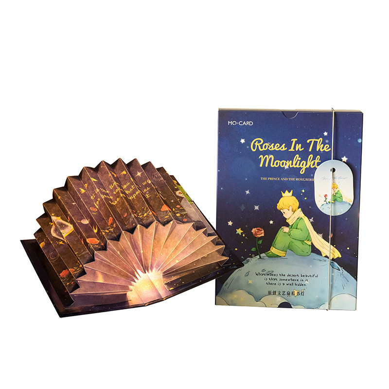 모모 팬 접이식 책 램프 왕자와 로즈 시리즈 로맨틱 아트 바람 선물 수제 DIY 장난감