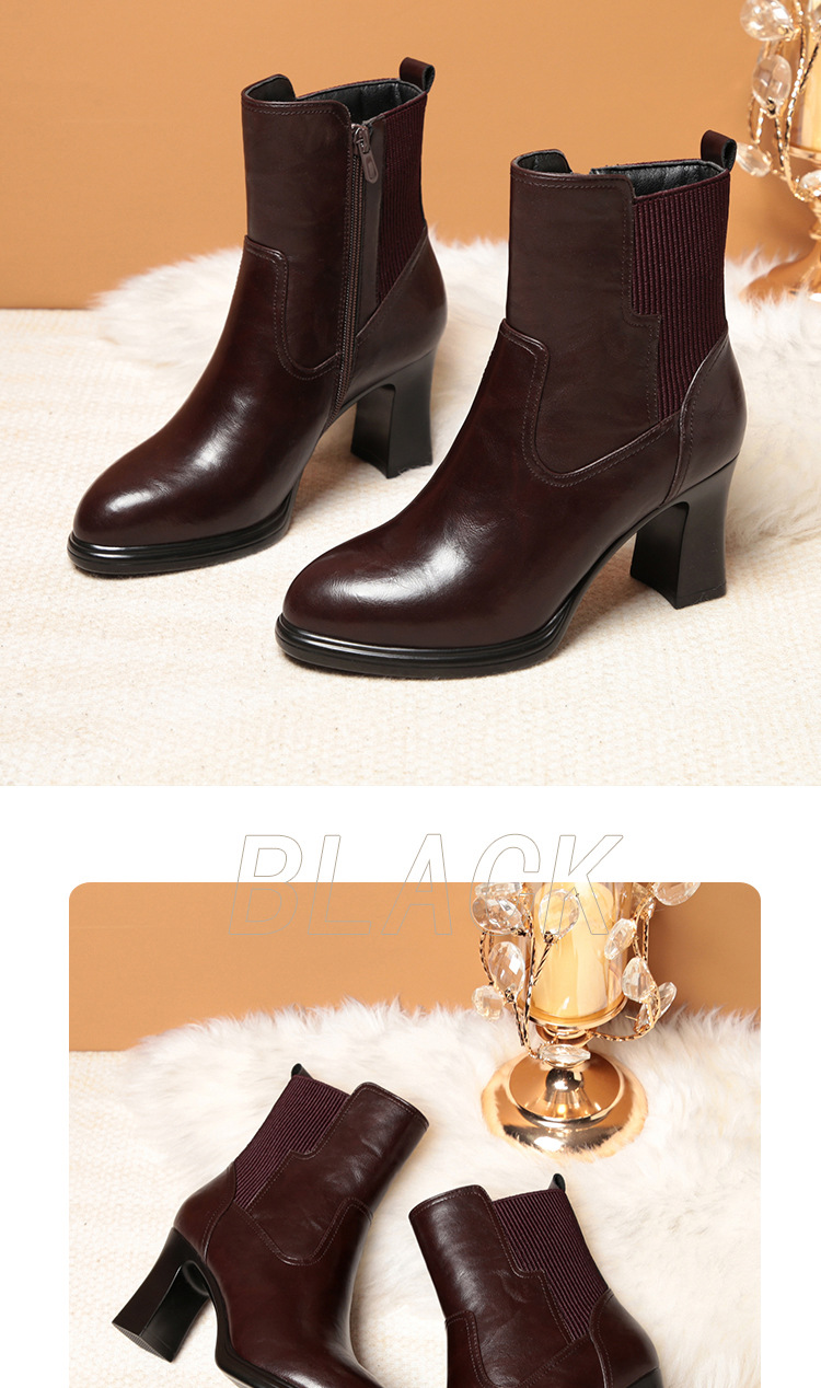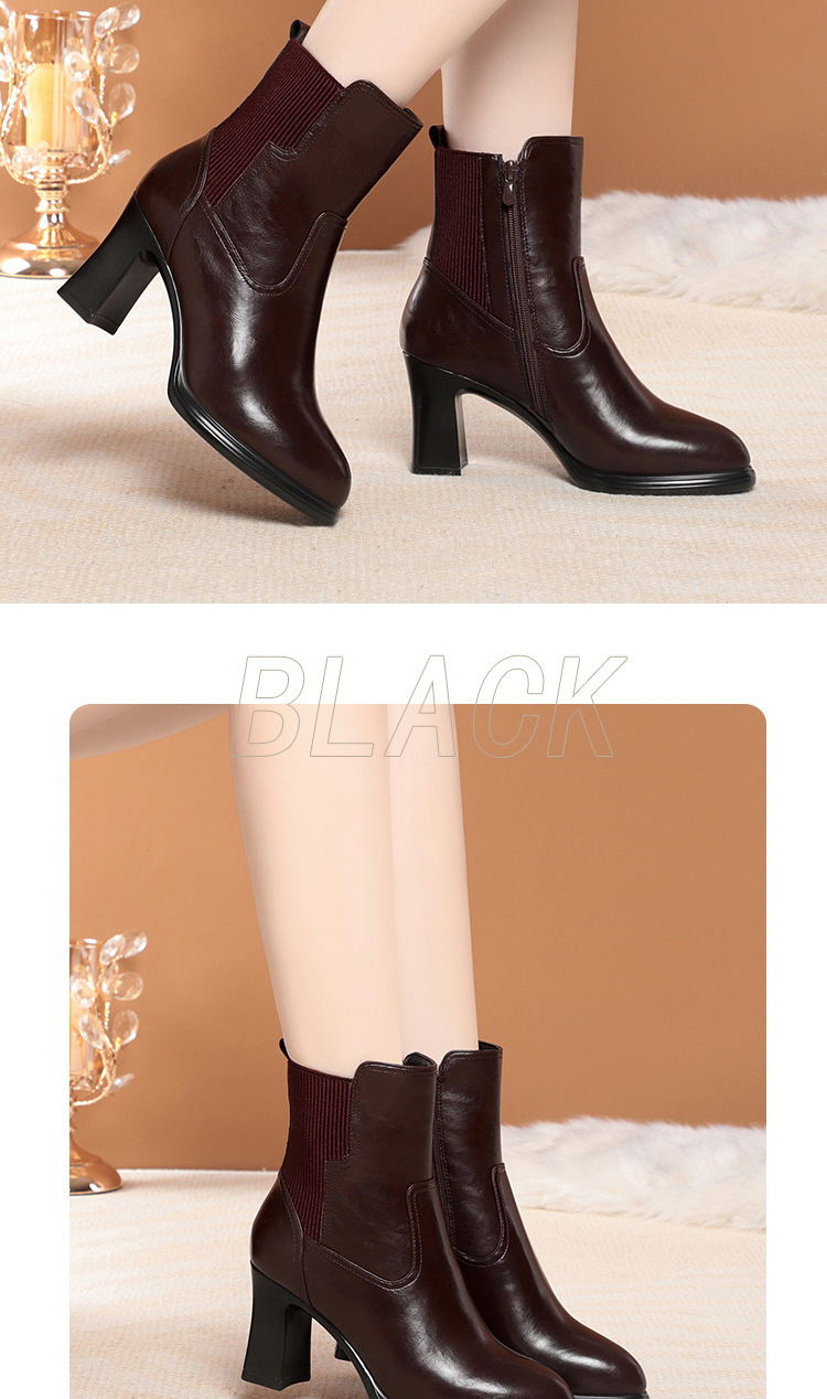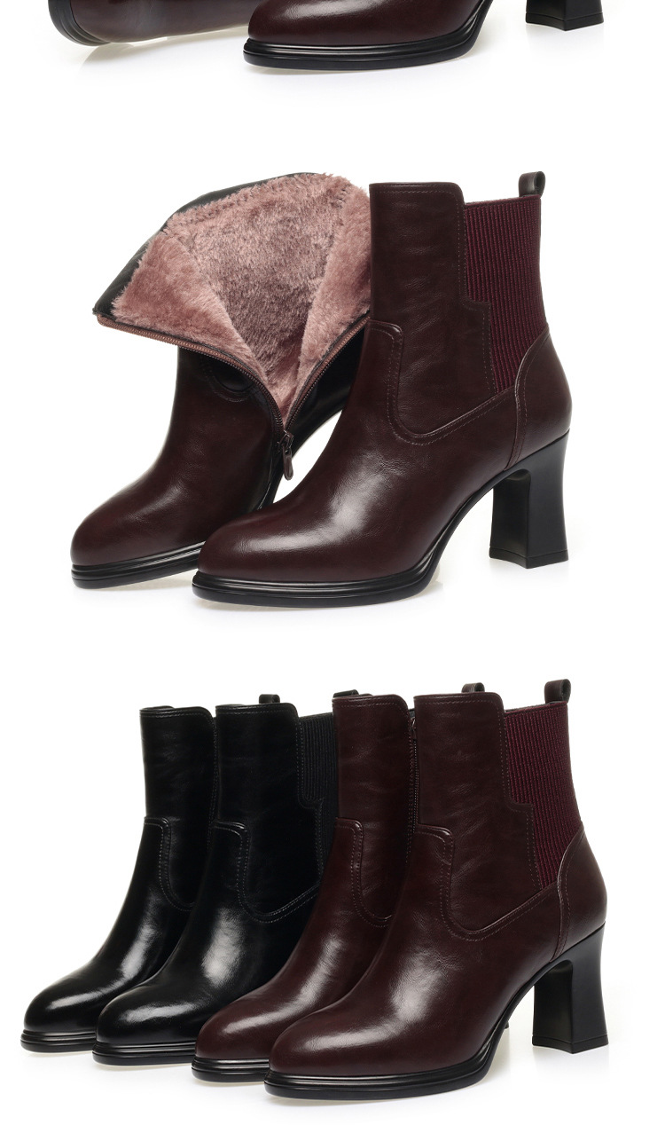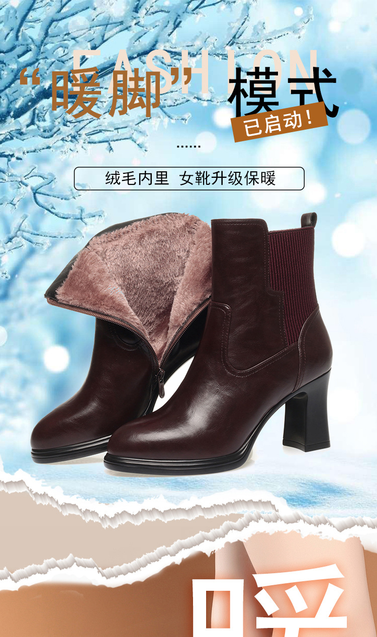 하이힐 쇼트 부츠 여성용 기모 신발 가죽 두꺼운 굽의 어머니면 신발 조커 캣워크 부츠스토어 가기