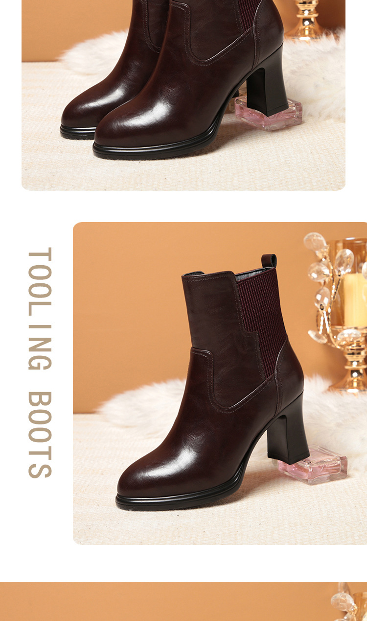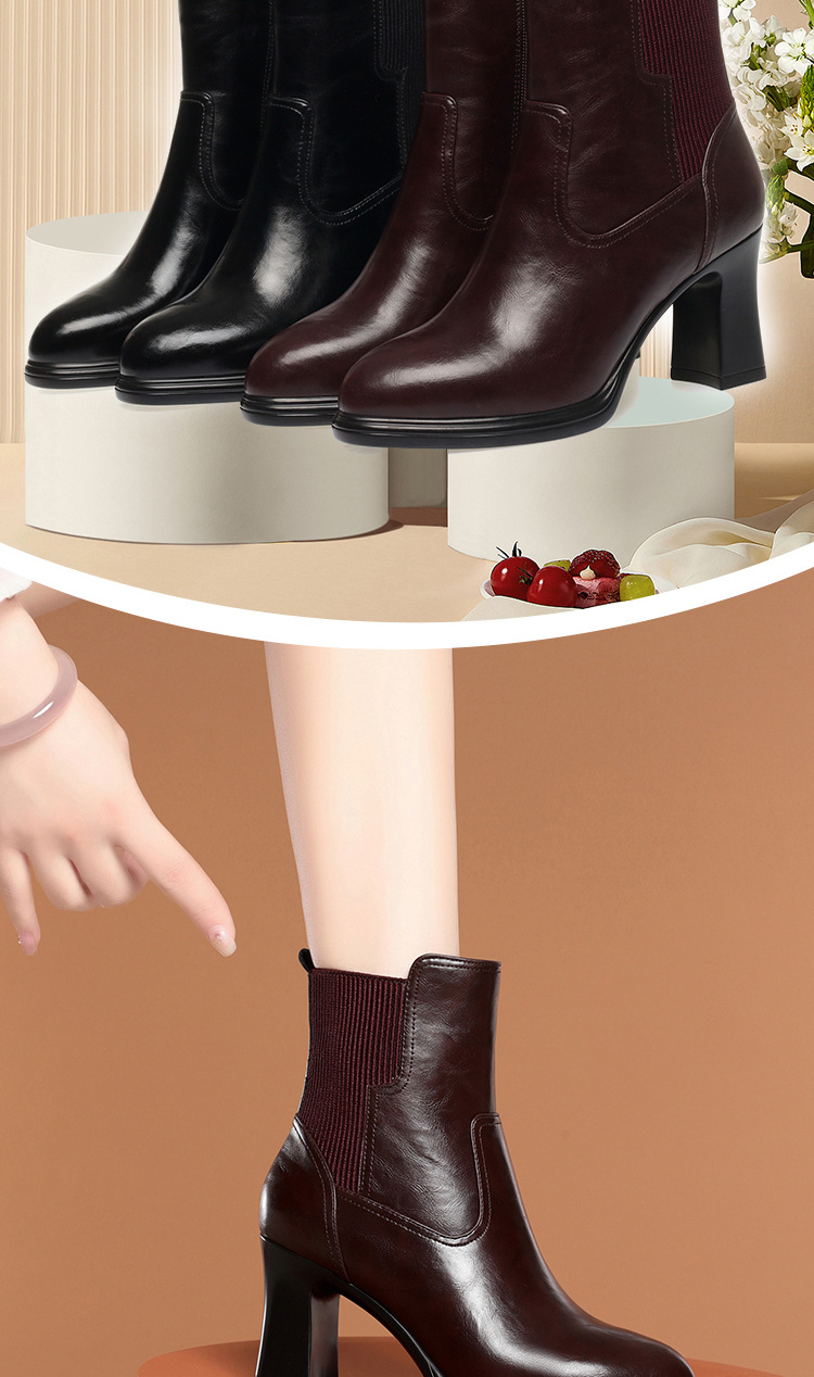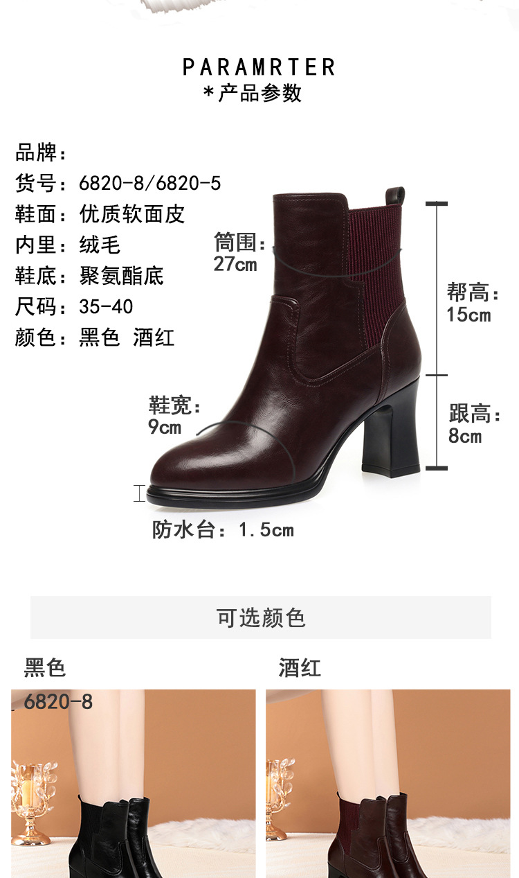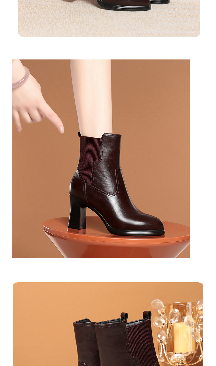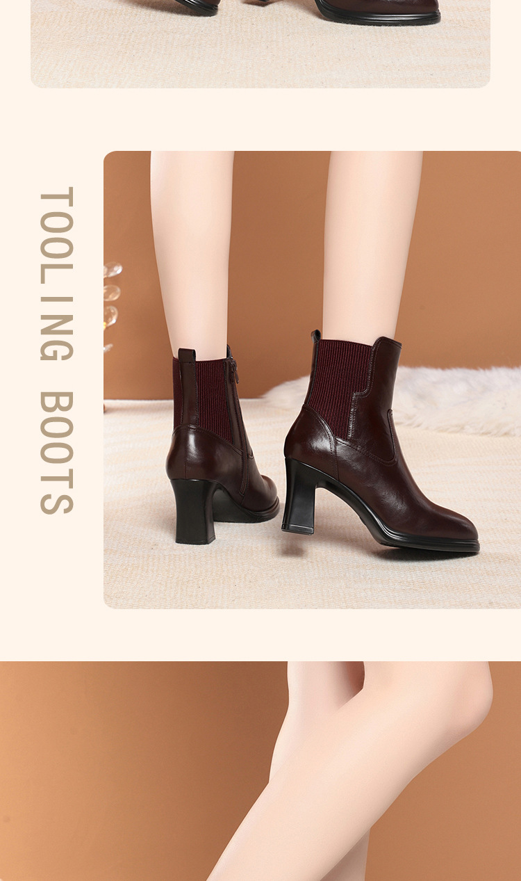하이힐 쇼트 부츠 여성용 기모 신발 가죽 두꺼운 굽의 어머니면 신발 조커 캣워크 부츠스토어 가기