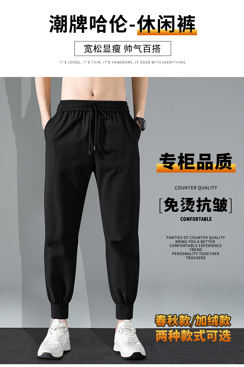 남자 스포츠 바지 솔리드 컬러 캐주얼 바지 봄과 가을 새로운 올매치 한국 패셔너블 루즈 다리 발가락 할란 롱 바지