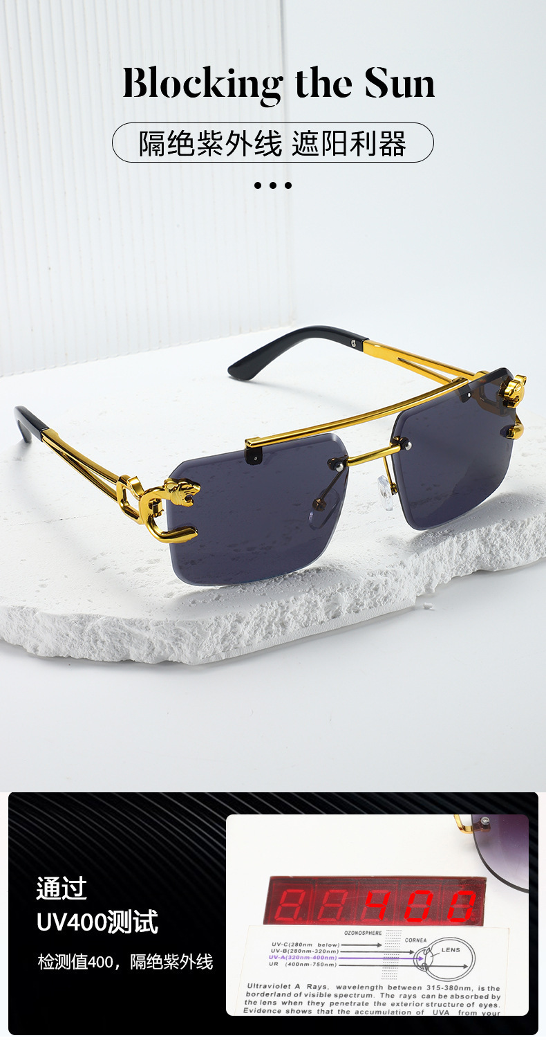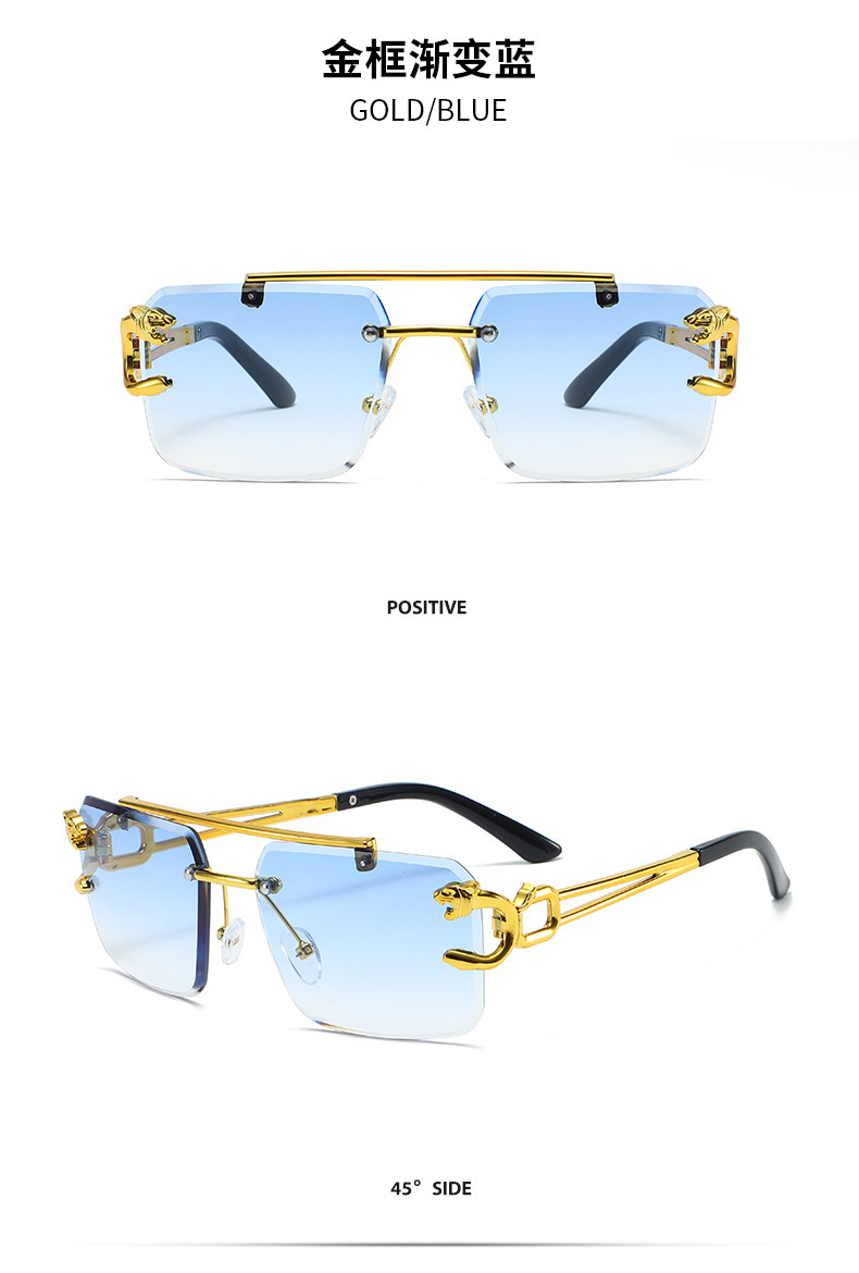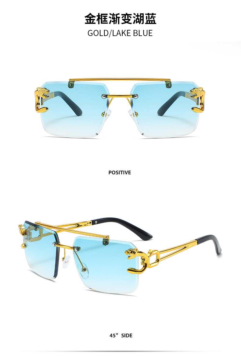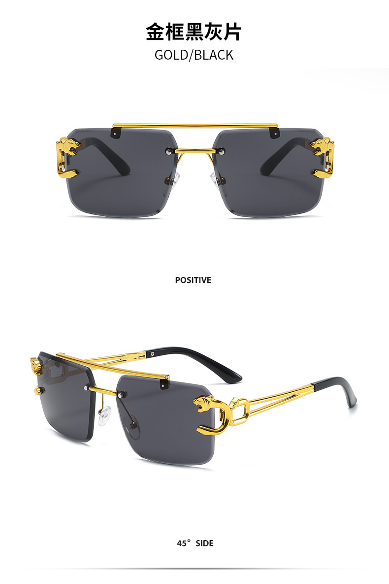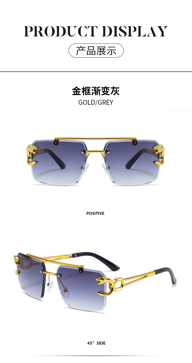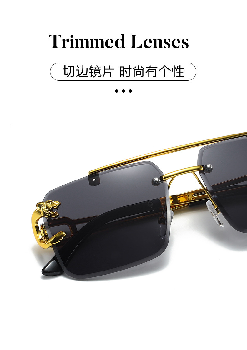 새로운 패션 성격 프레임리스 레오파드 헤드 더블 빔 선글라스 트렌드 야외 운전 성격 트렌드 선글라스스토어 가기