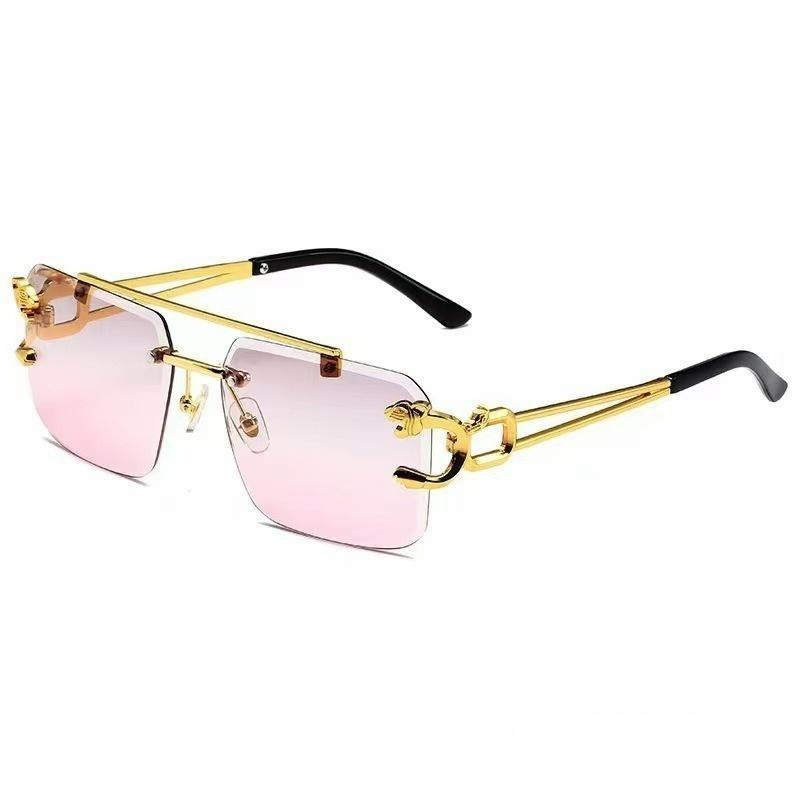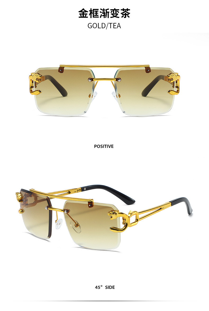 새로운 패션 성격 프레임리스 레오파드 헤드 더블 빔 선글라스 트렌드 야외 운전 성격 트렌드 선글라스