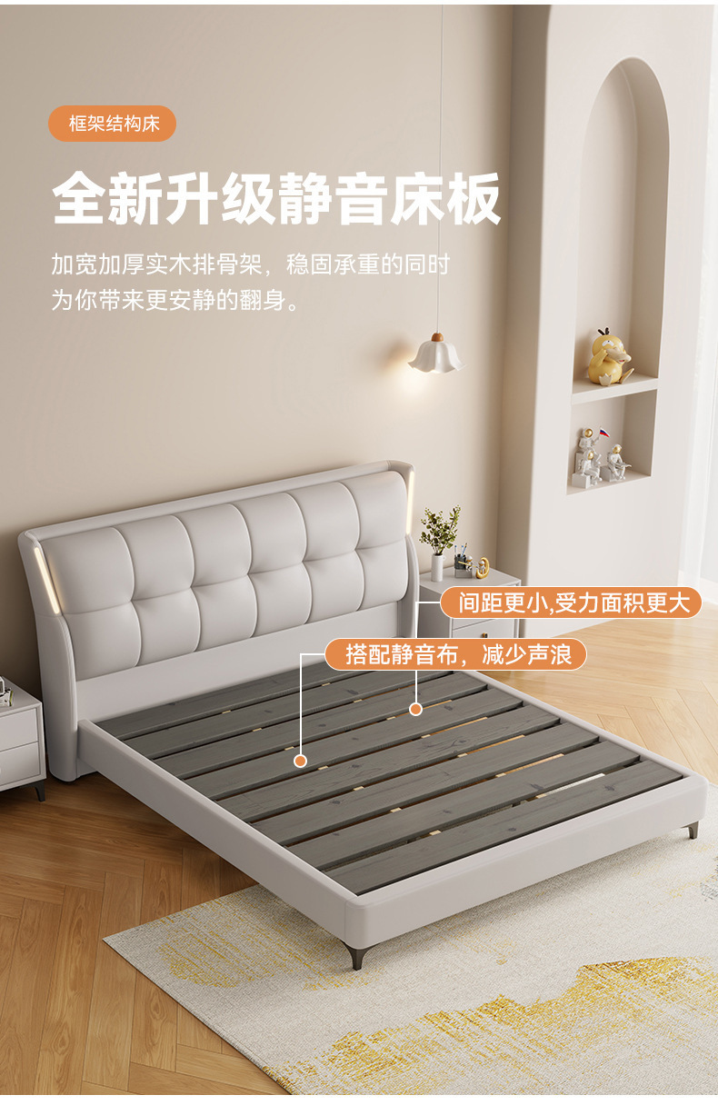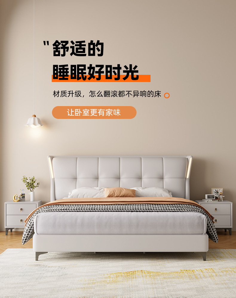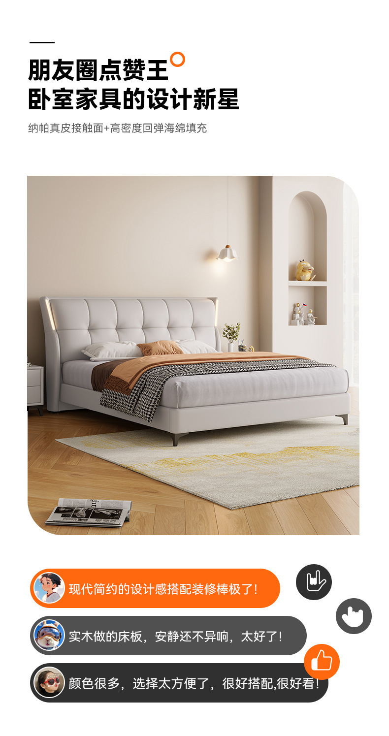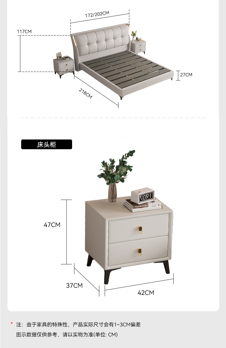 크림 바람 더블 마스터 침실 가죽 침대 현대 미니멀리스트 침대. M 작은 아파트 북유럽 침대 침대. 쌀침대스토어 가기