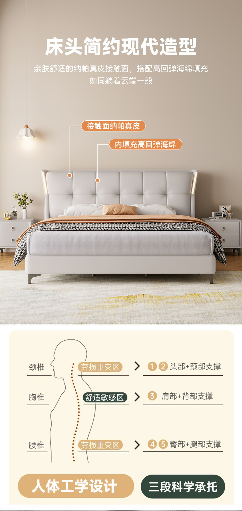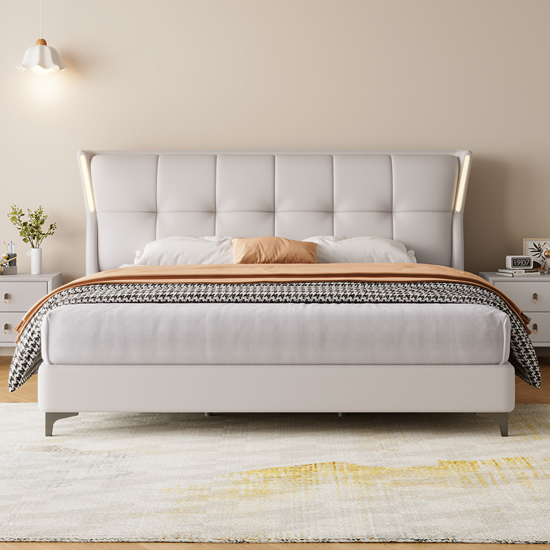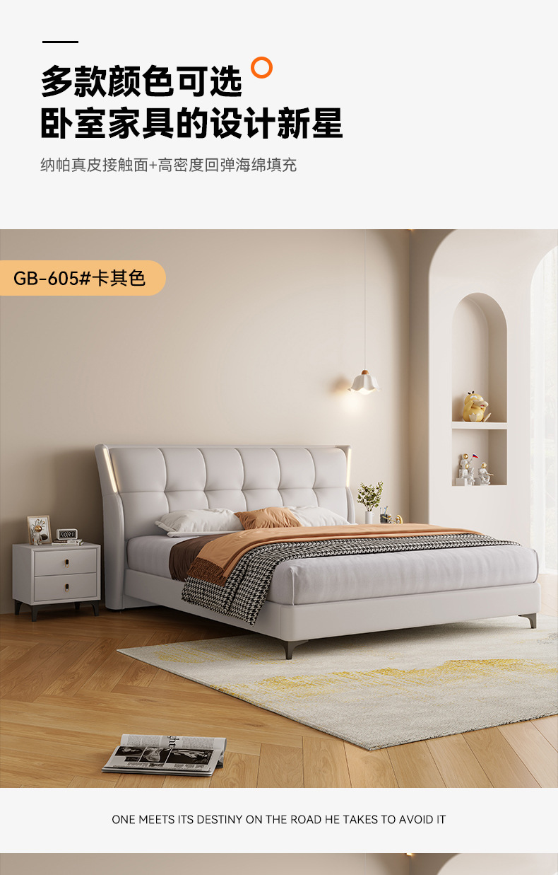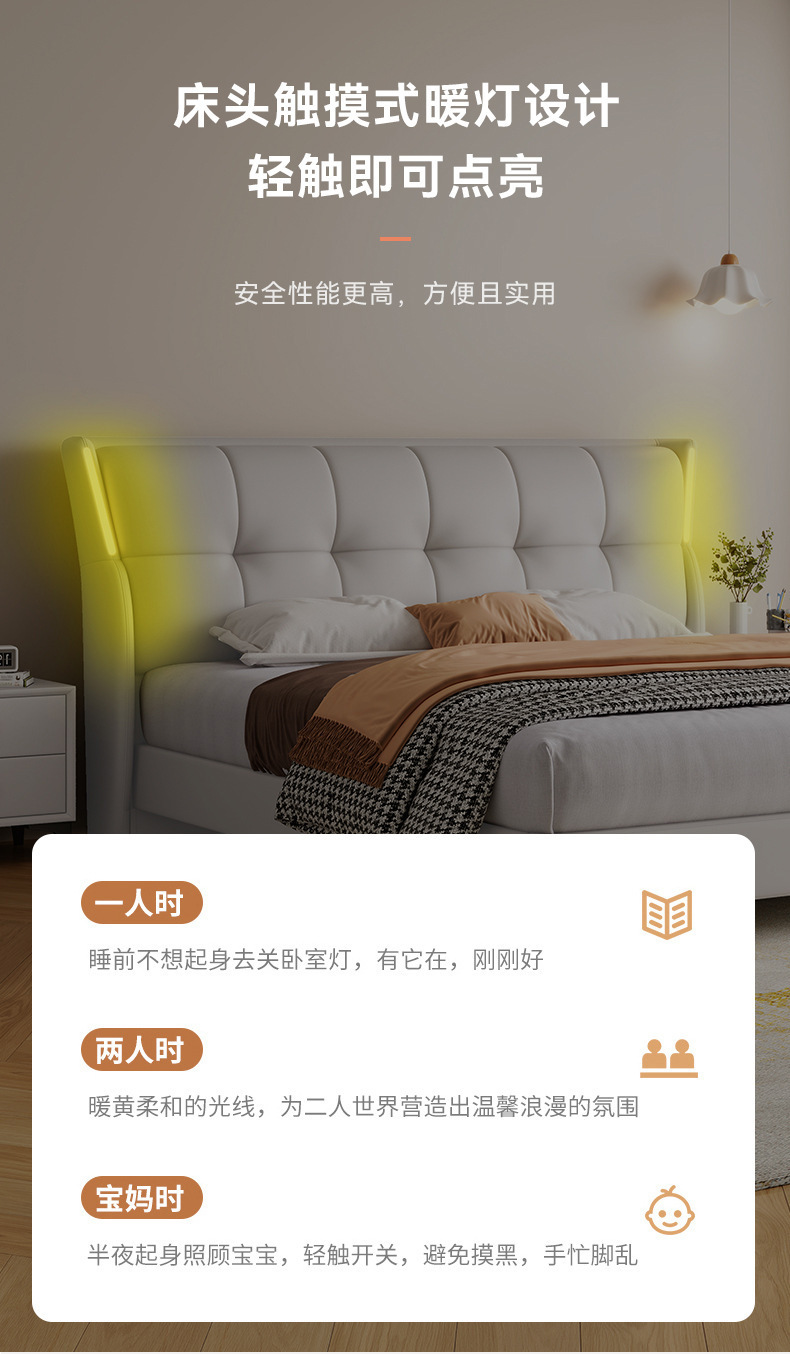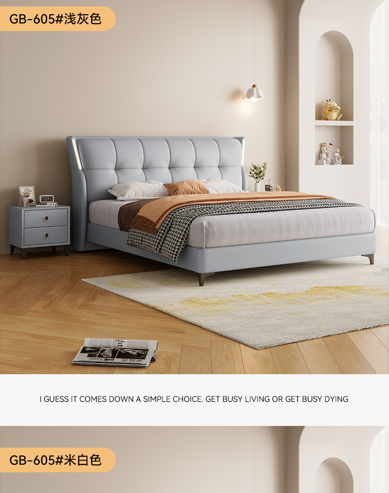 크림 바람 더블 마스터 침실 가죽 침대 현대 미니멀리스트 침대. M 작은 아파트 북유럽 침대 침대. 쌀침대스토어 가기