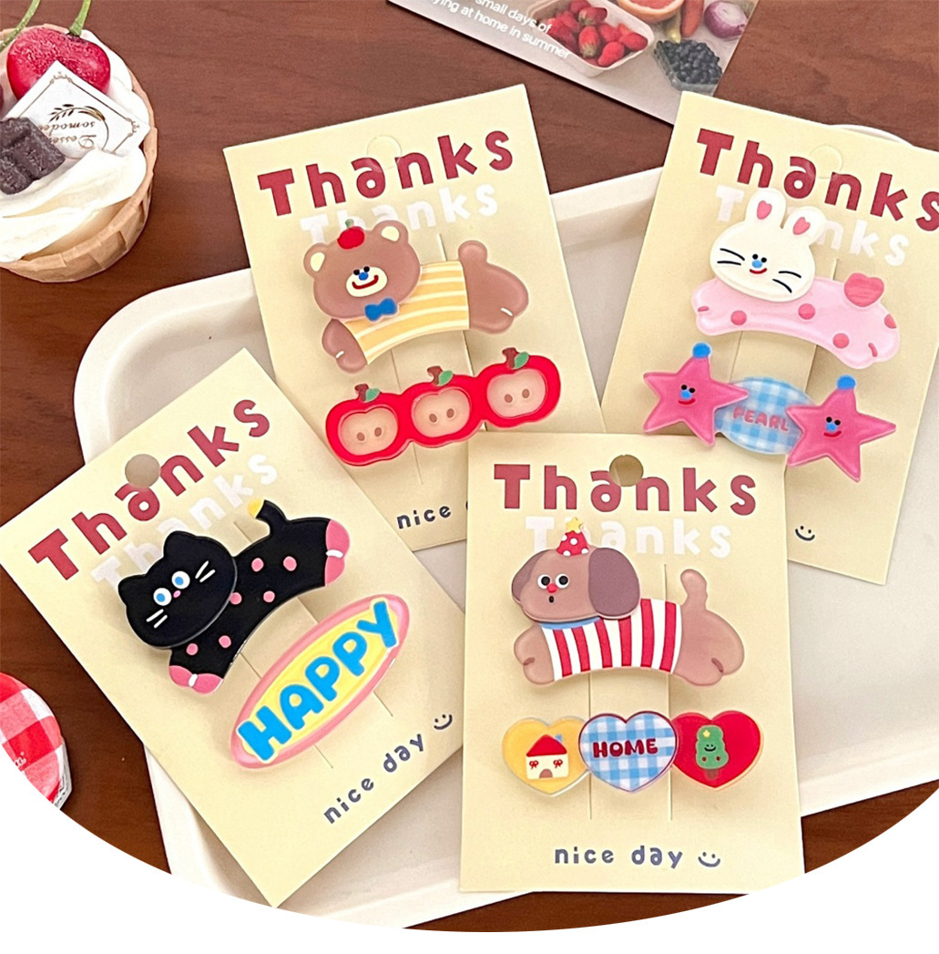 귀여운 만화 귀여운 애완 동물 머리핀 소녀 하트 조커 아크릴 헤어 액세서리 기질 앞머리 클립 머리핀 세트 도매스토어 가기