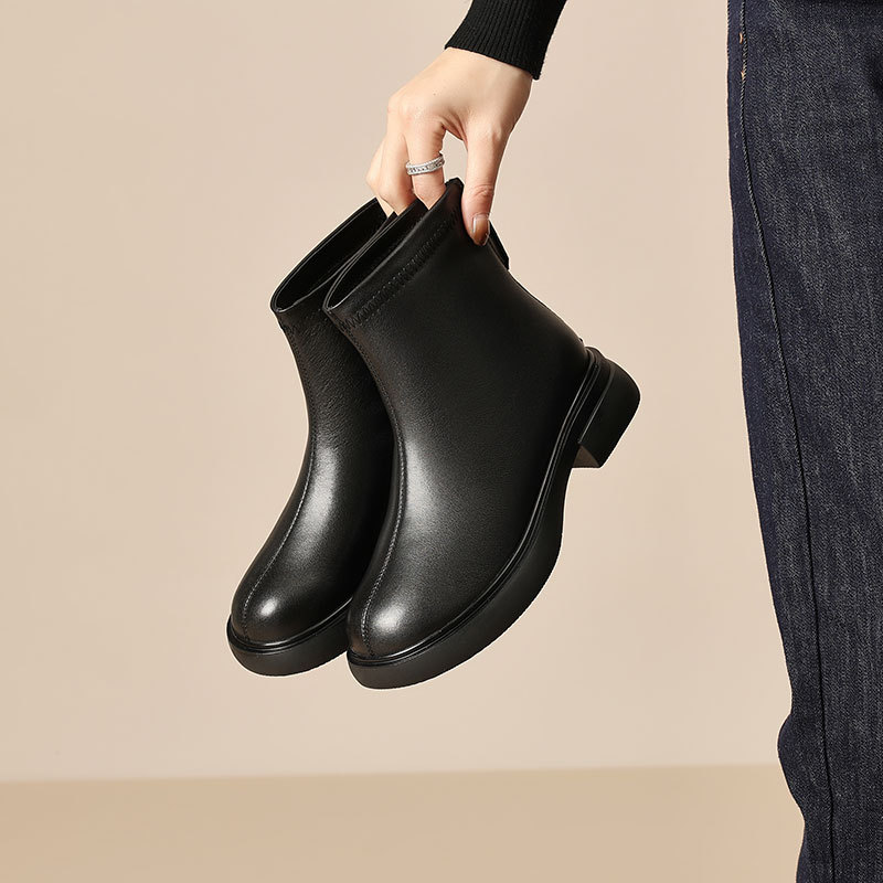 정품 가죽 마틴 부츠 여성 영국 스타일 여성 신발 2024 새로운 겨울 기모 두꺼운 올매치 플랫 가죽 부츠 짧은 부츠
