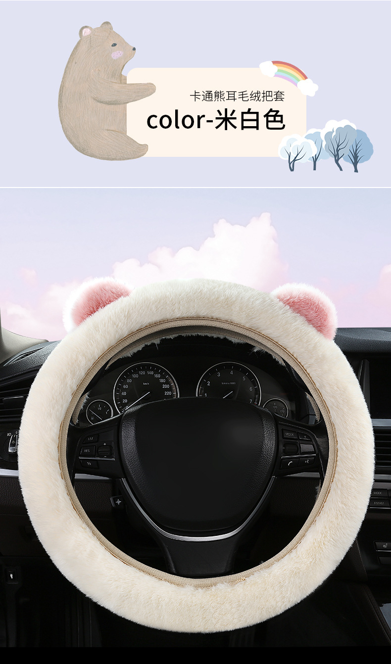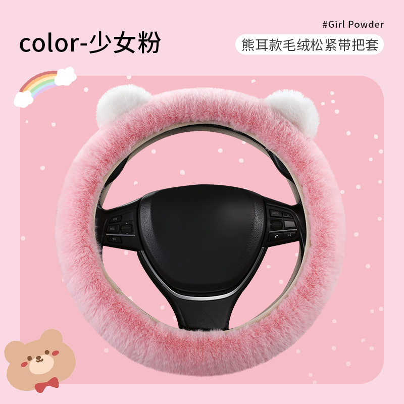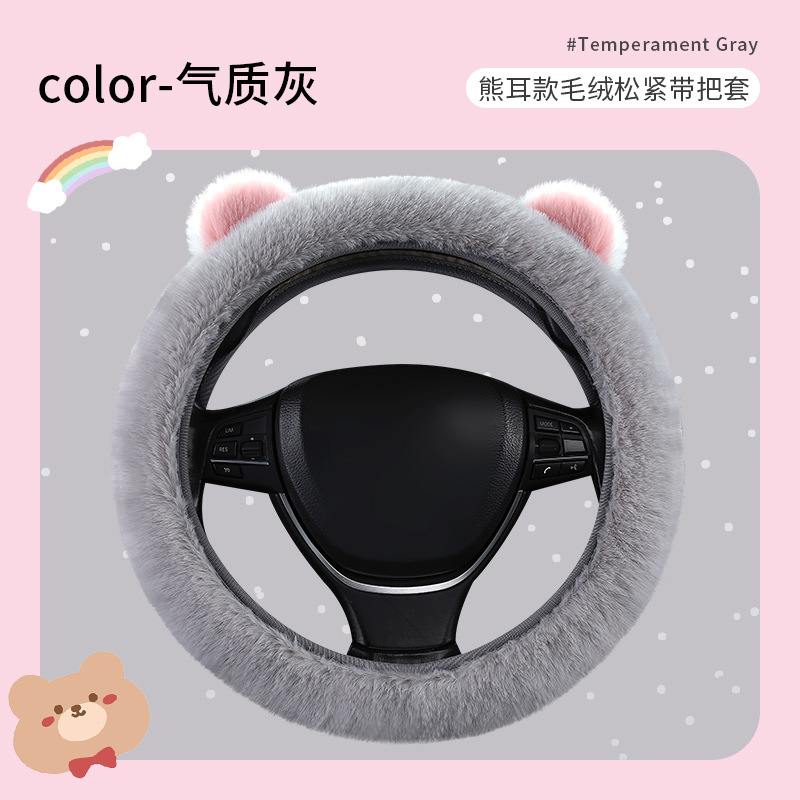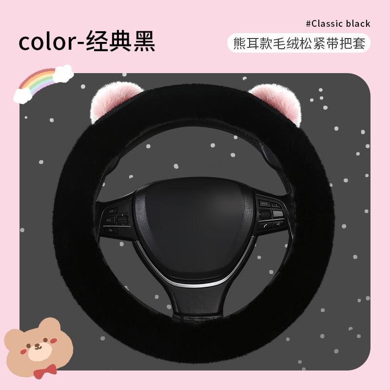 자동차 스티어링 휠 커버 겨울 봉제 따뜻한 탄성 안 링 만화 초박형 미끄럼 방지 핸들 커버 유니버설스토어 가기