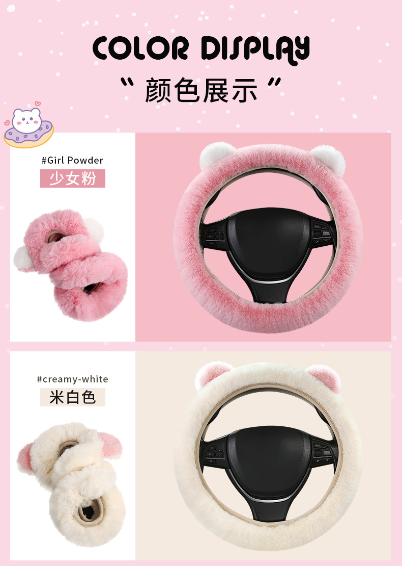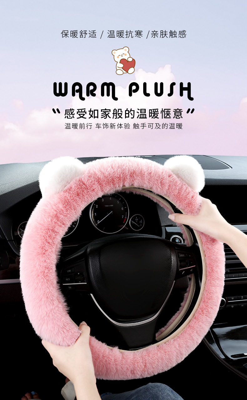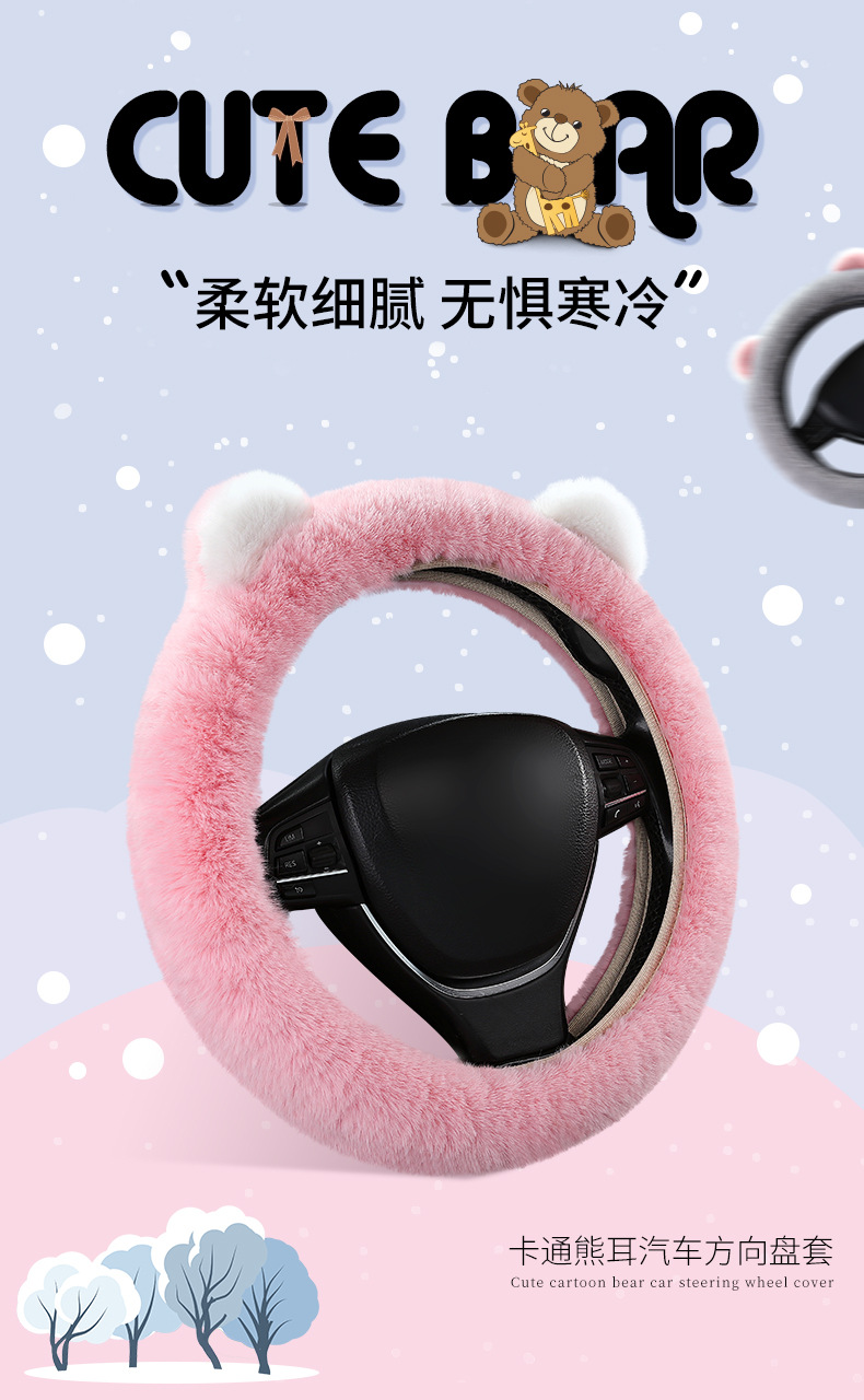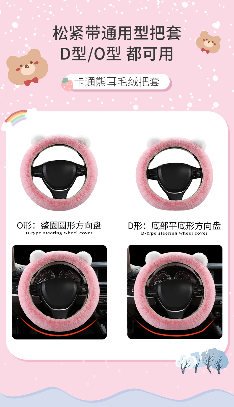 자동차 스티어링 휠 커버 겨울 봉제 따뜻한 탄성 안 링 만화 초박형 미끄럼 방지 핸들 커버 유니버설스토어 가기