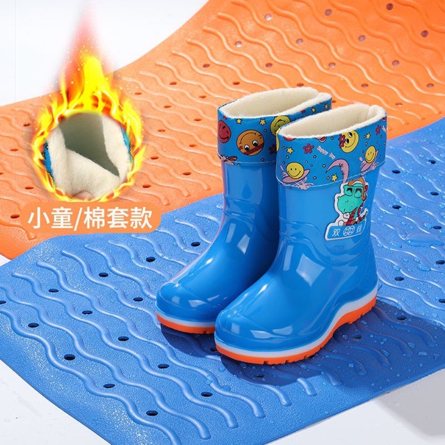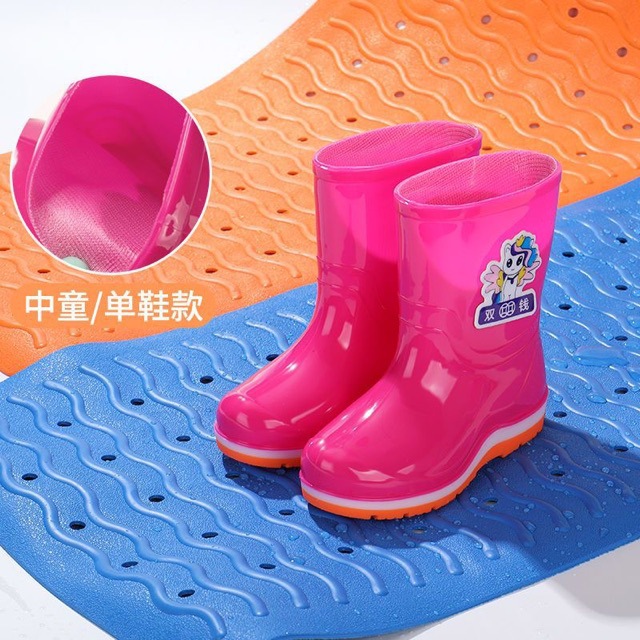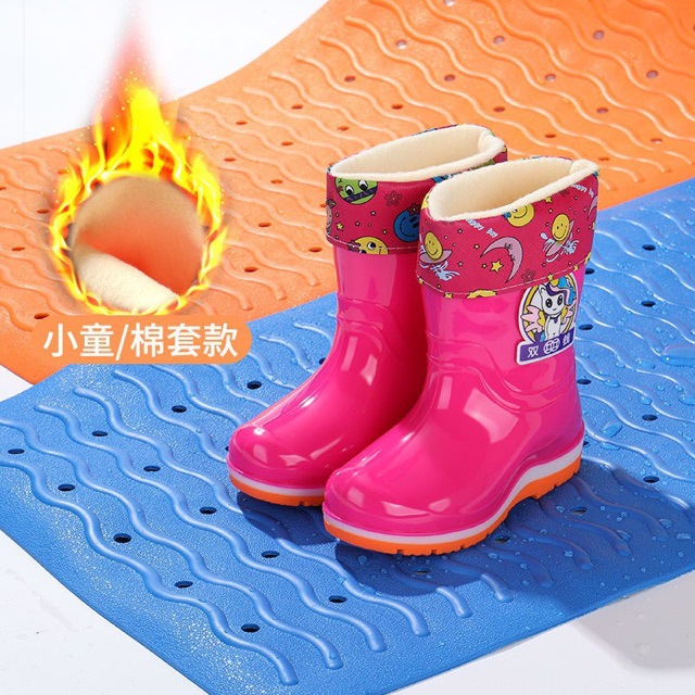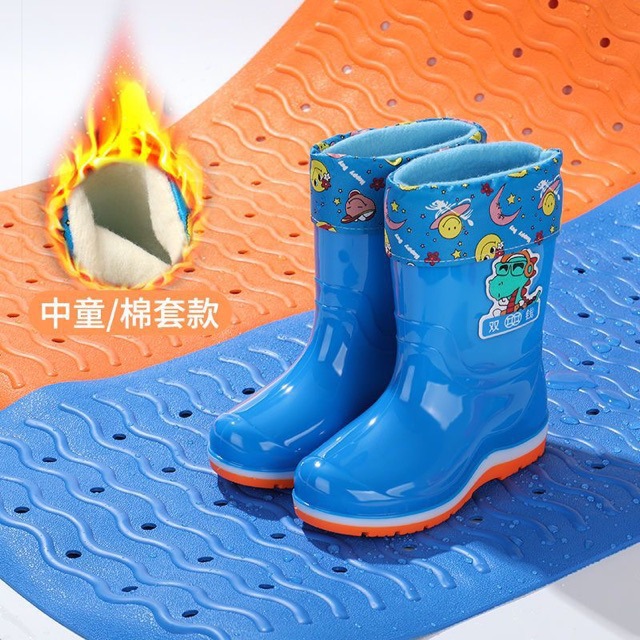 상하이 더블 머니 어린이 비 신발 어린이 따뜻한 3 색 내마모성 미끄럼 방지 밑바닥 물 고무 신발 PVC 장화스토어 가기