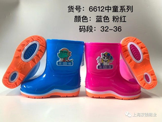 상하이 더블 머니 어린이 비 신발 어린이 따뜻한 3 색 내마모성 미끄럼 방지 밑바닥 물 고무 신발 PVC 장화