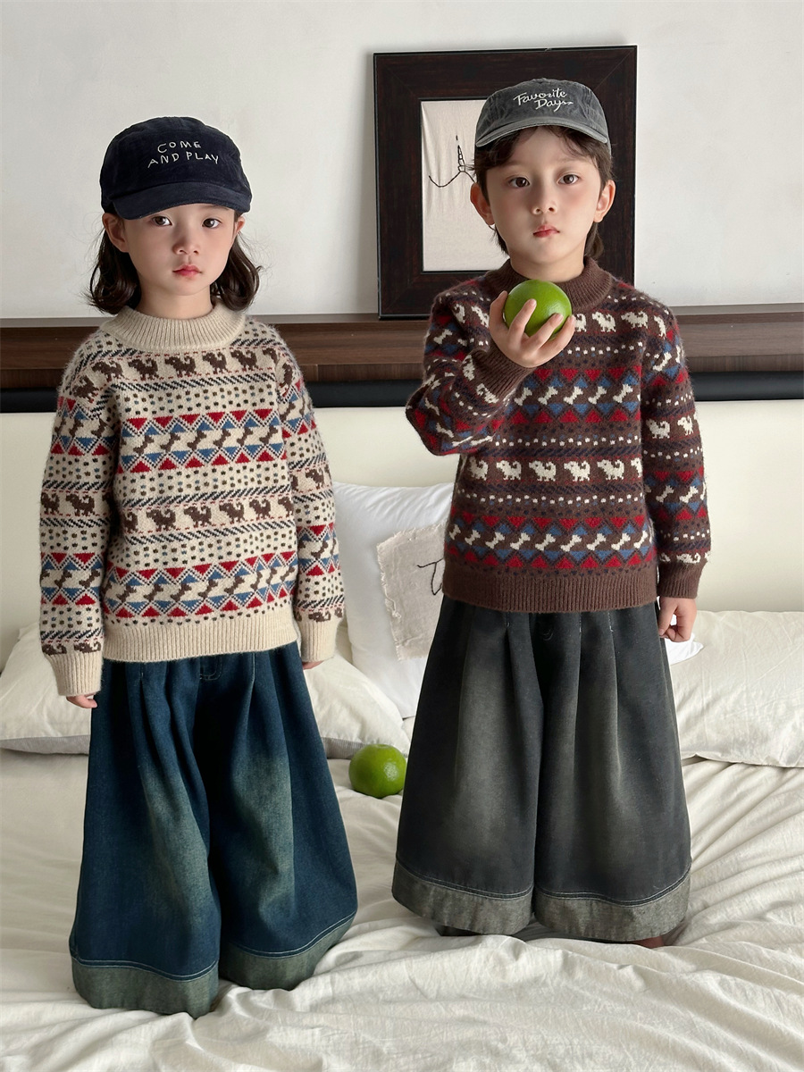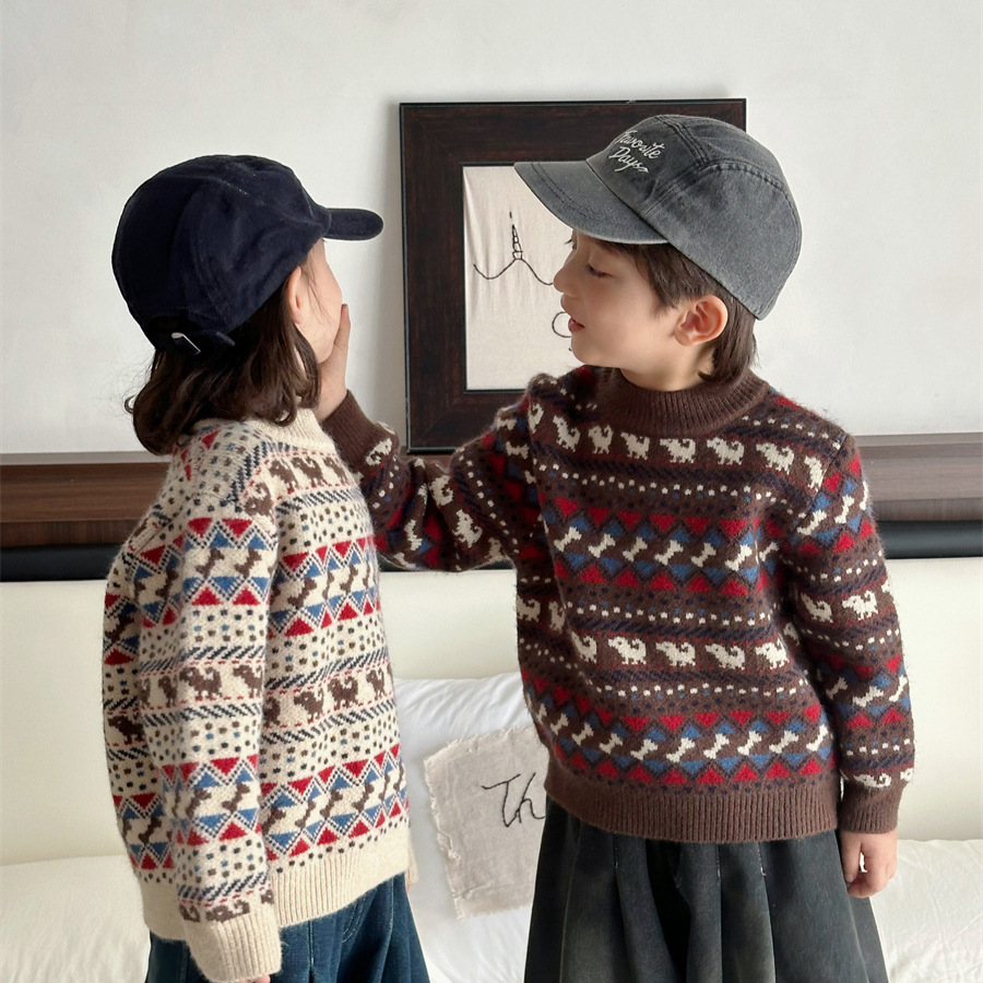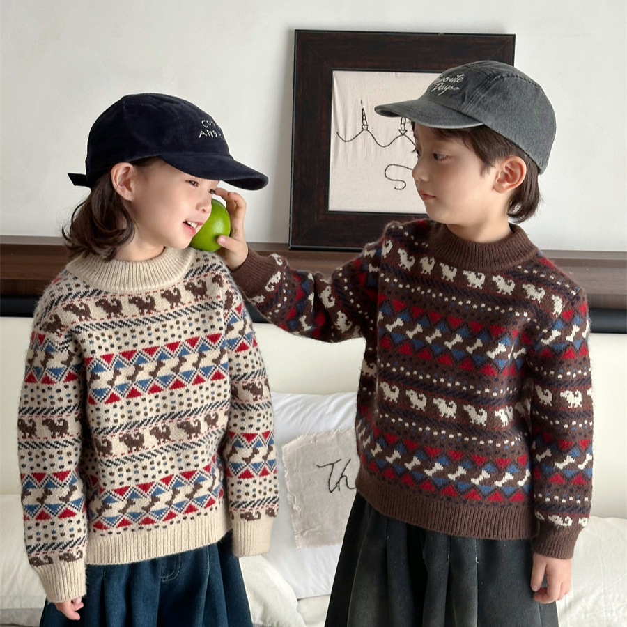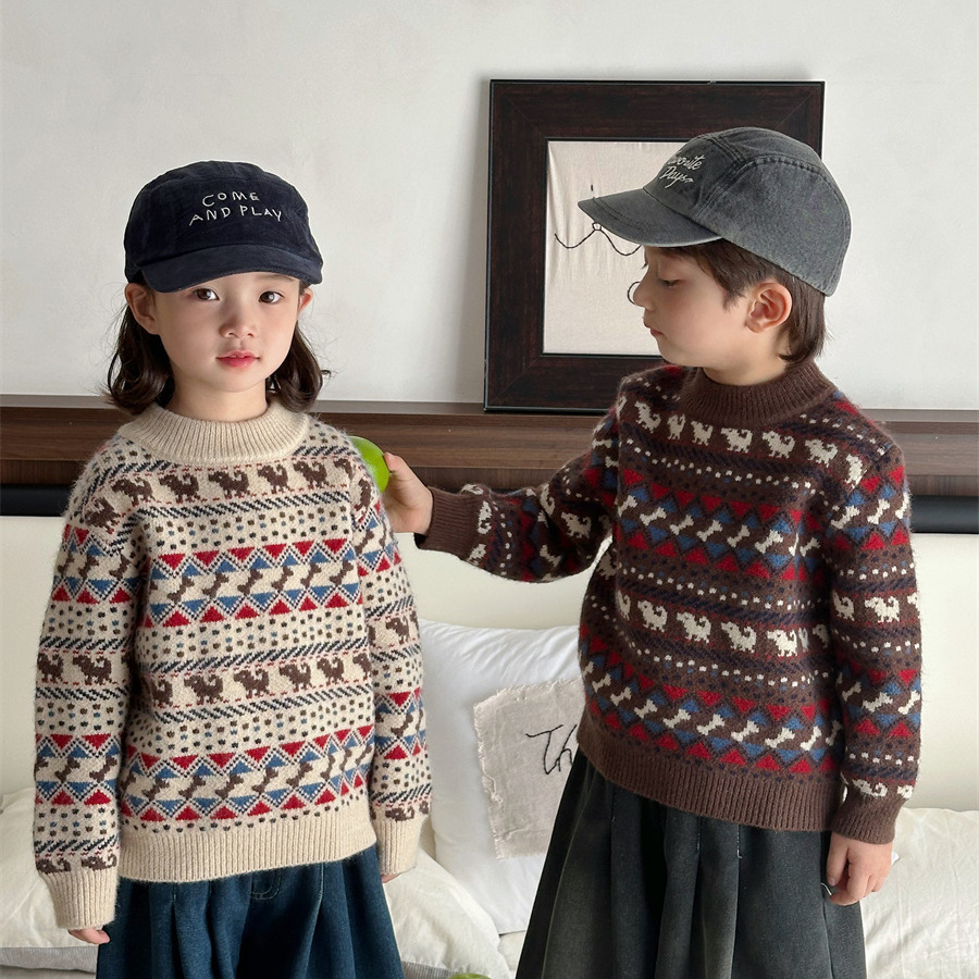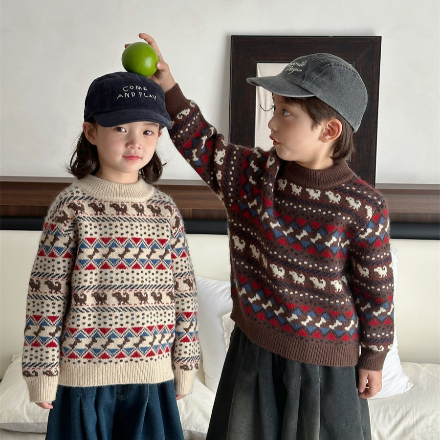 남성과 여성을위한 Jiaye 어린이 2024 겨울 새로운 두꺼운 스웨터 Baosen 레트로 웨스턴 스타일 스웨터스토어 가기