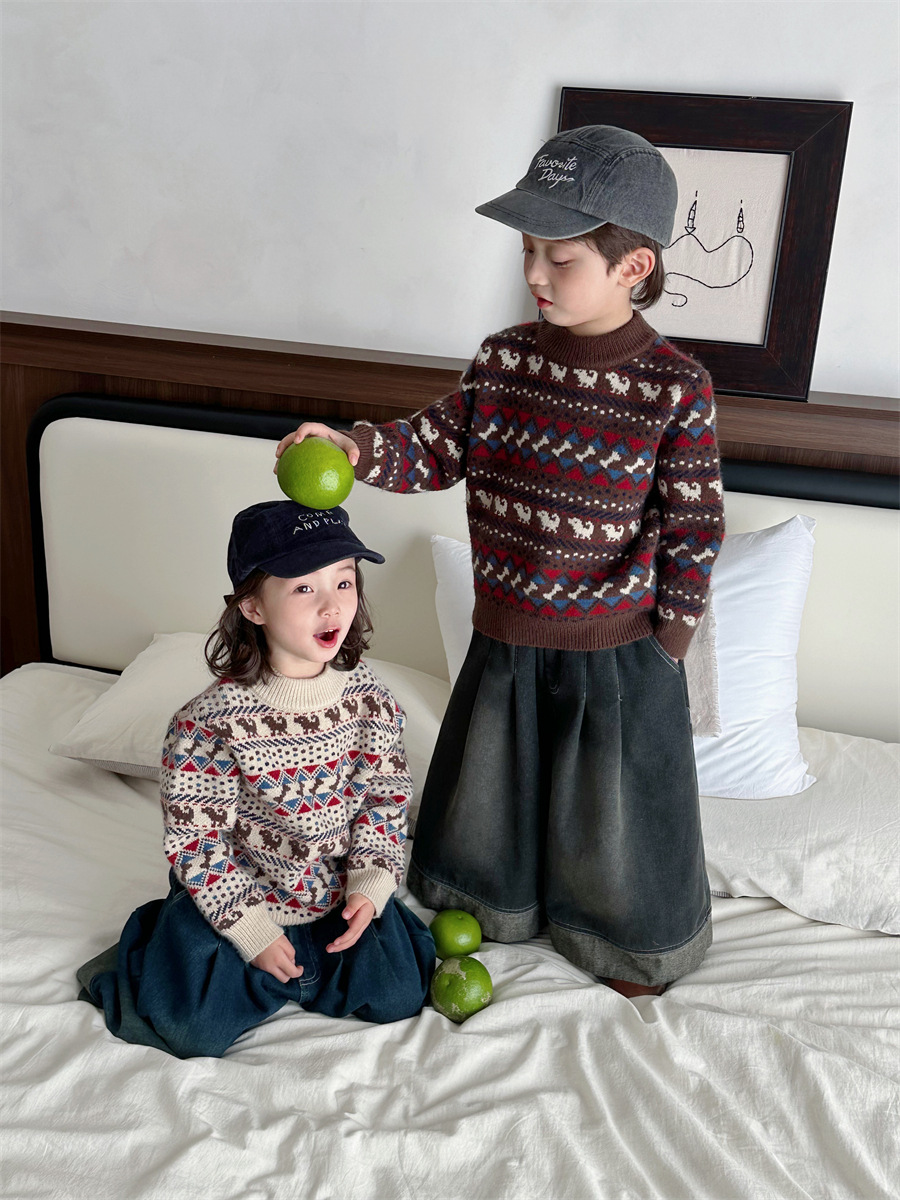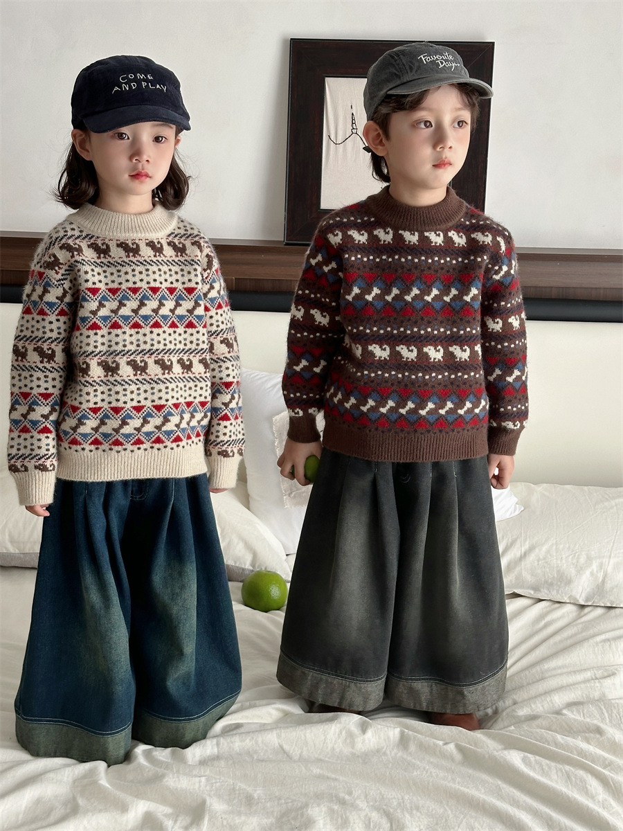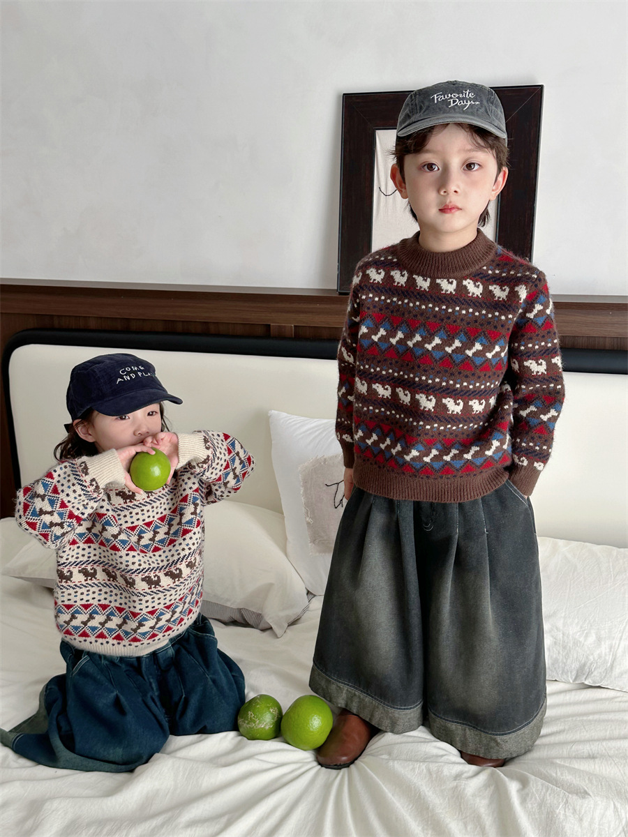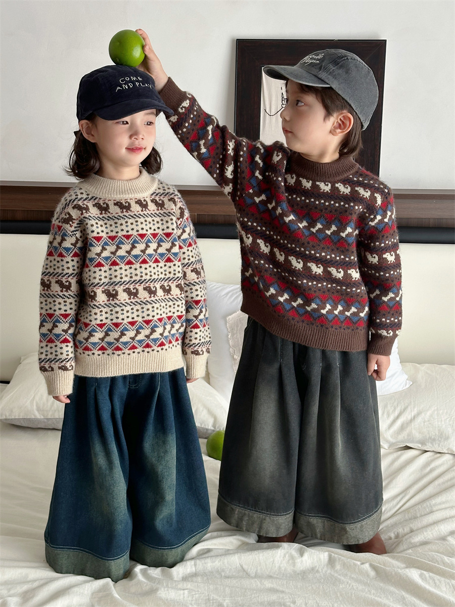 남성과 여성을위한 Jiaye 어린이 2024 겨울 새로운 두꺼운 스웨터 Baosen 레트로 웨스턴 스타일 스웨터스토어 가기