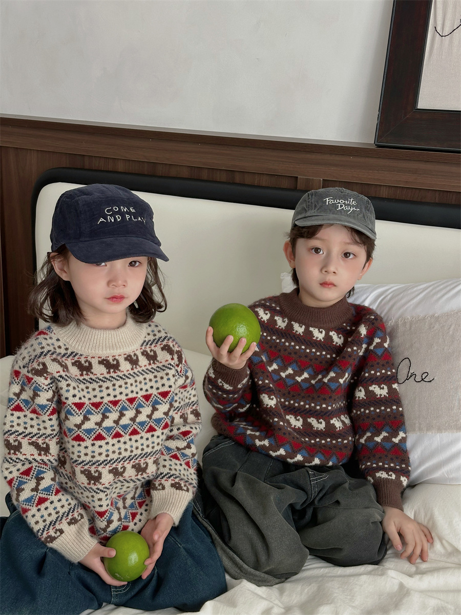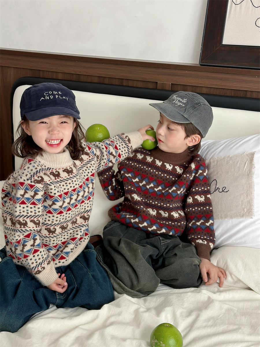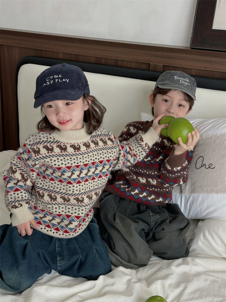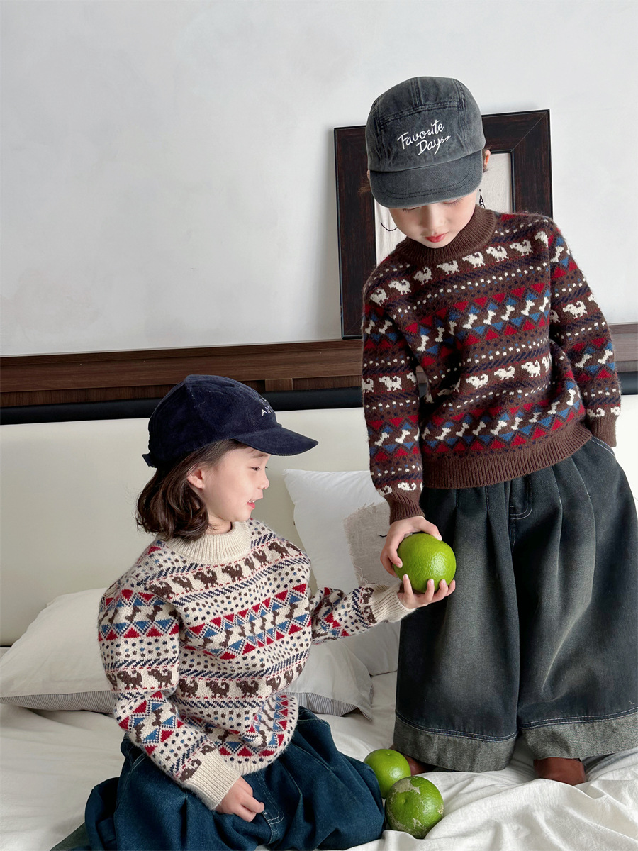 남성과 여성을위한 Jiaye 어린이 2024 겨울 새로운 두꺼운 스웨터 Baosen 레트로 웨스턴 스타일 스웨터스토어 가기