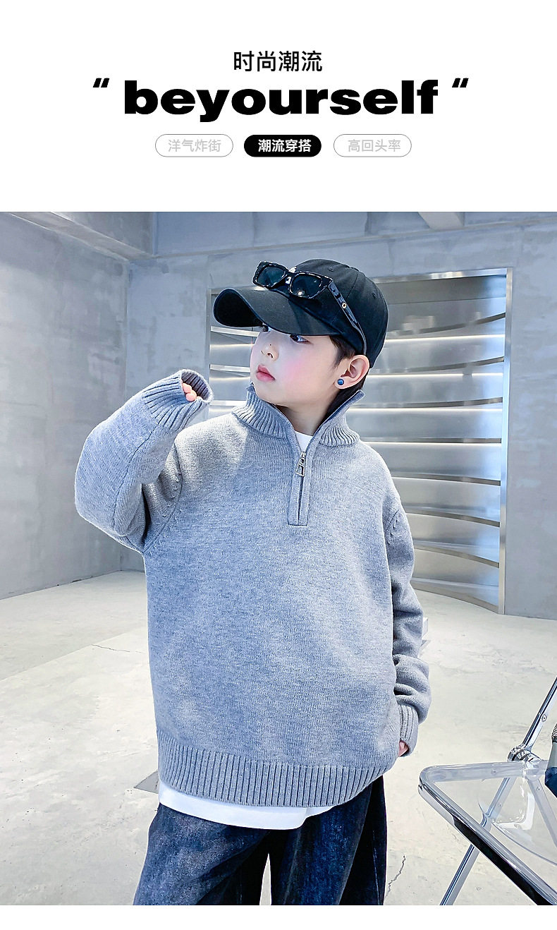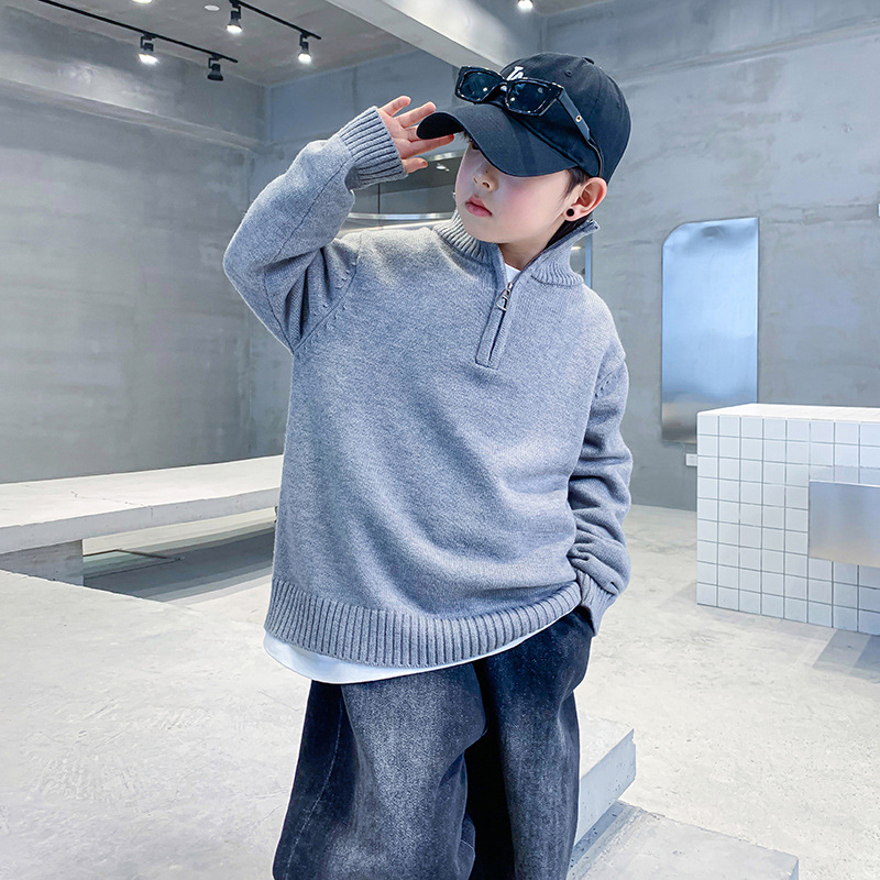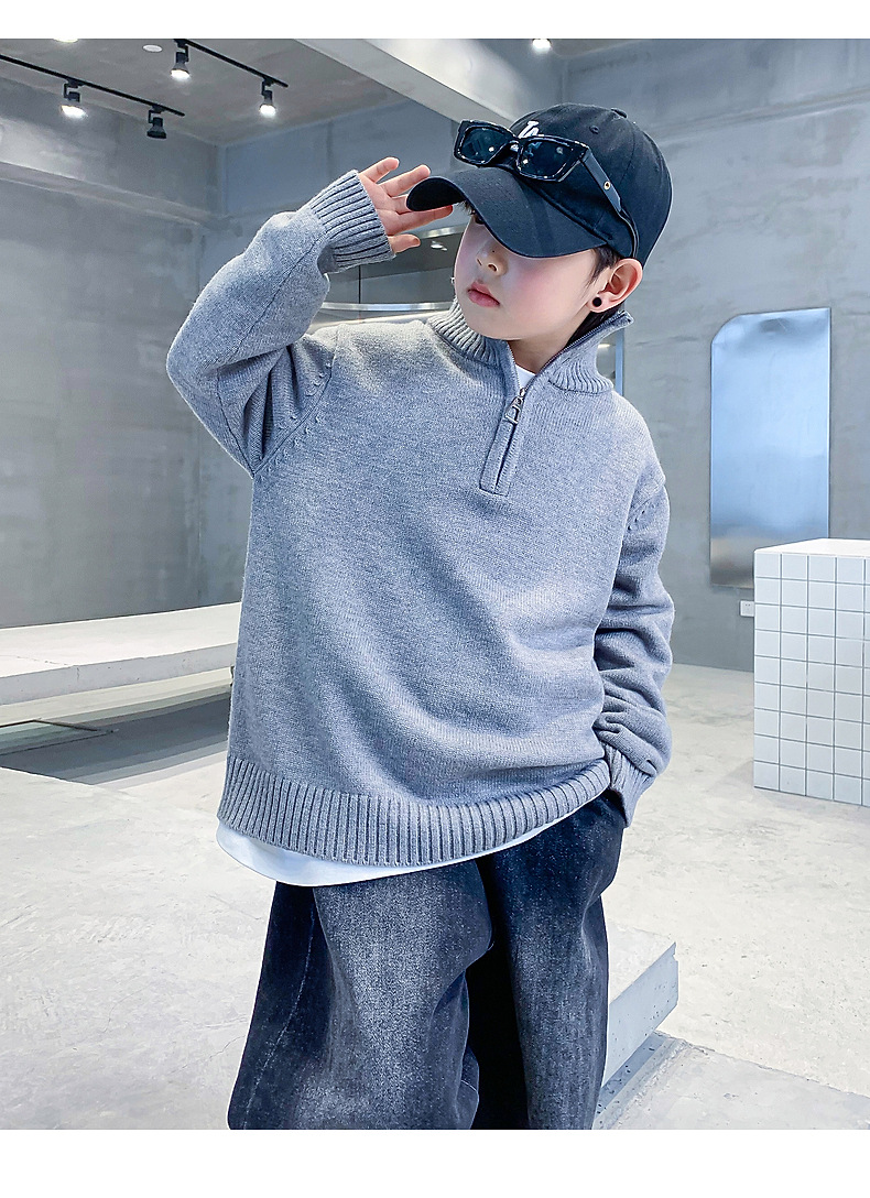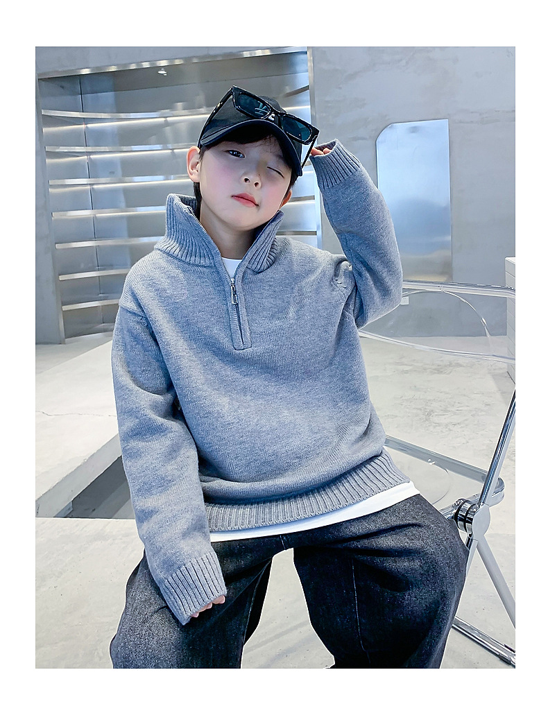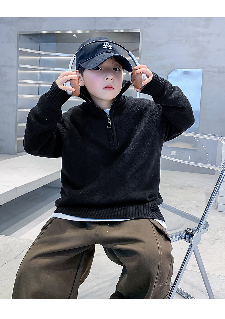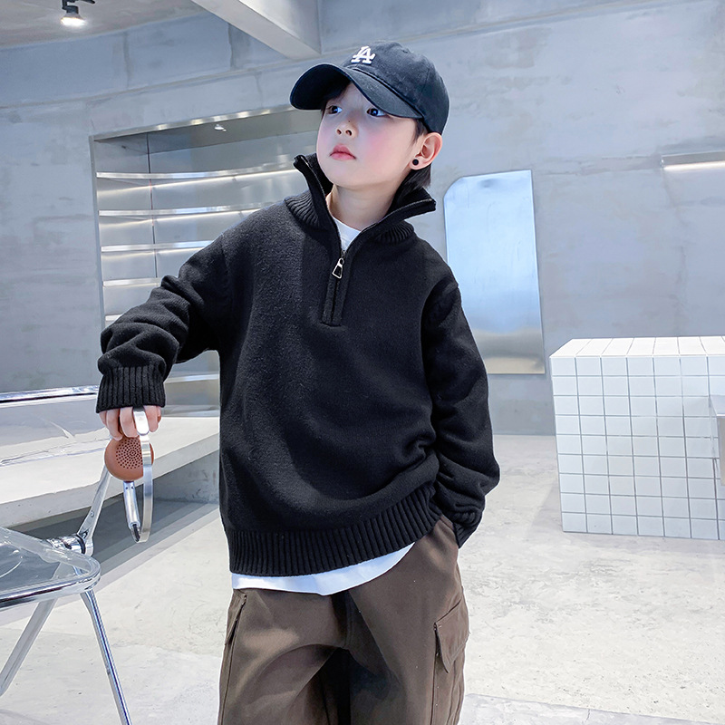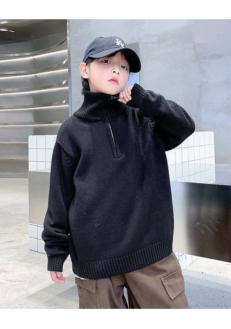 소년 겨울 잘 생긴 하프 카디건 터틀넥 스웨터 2024 새로운 어린이 가을, 겨울 두꺼운 니트 스웨터 재킷스토어 가기