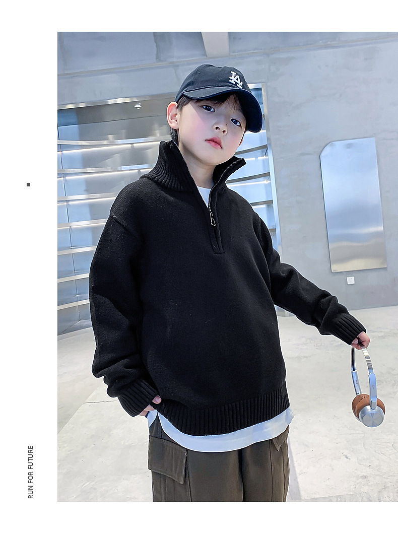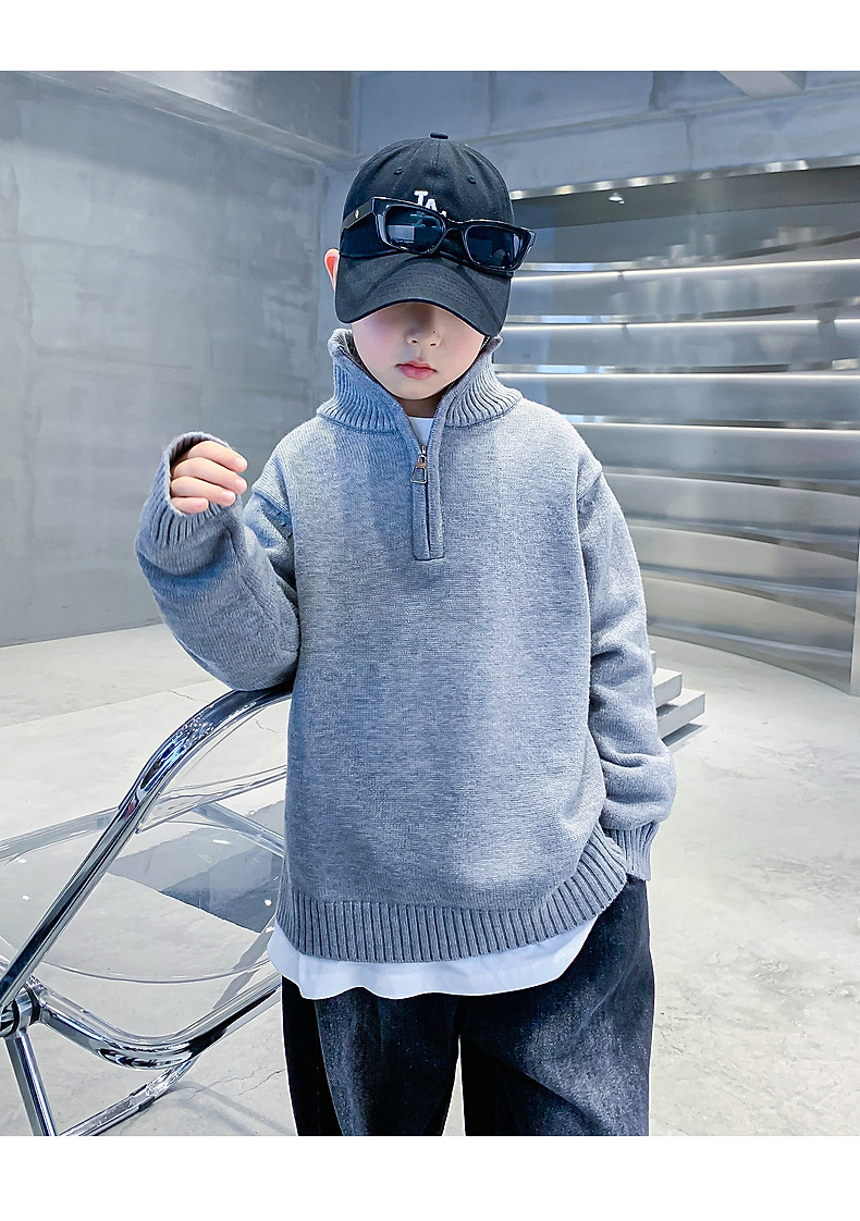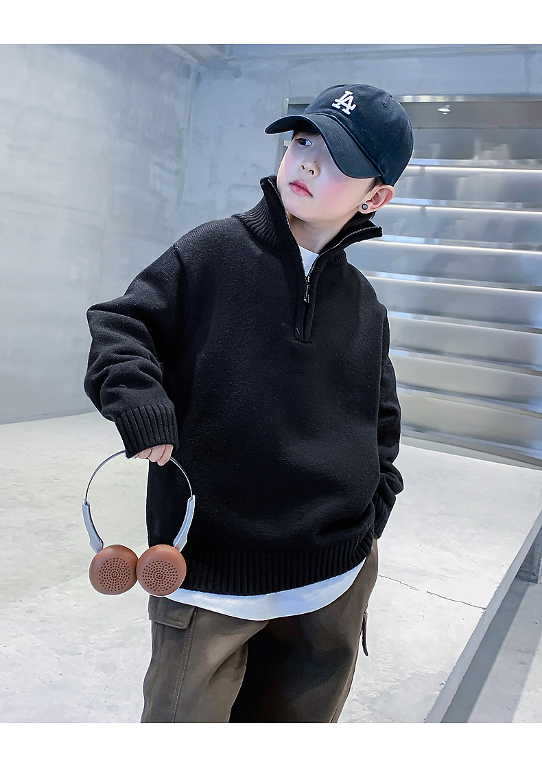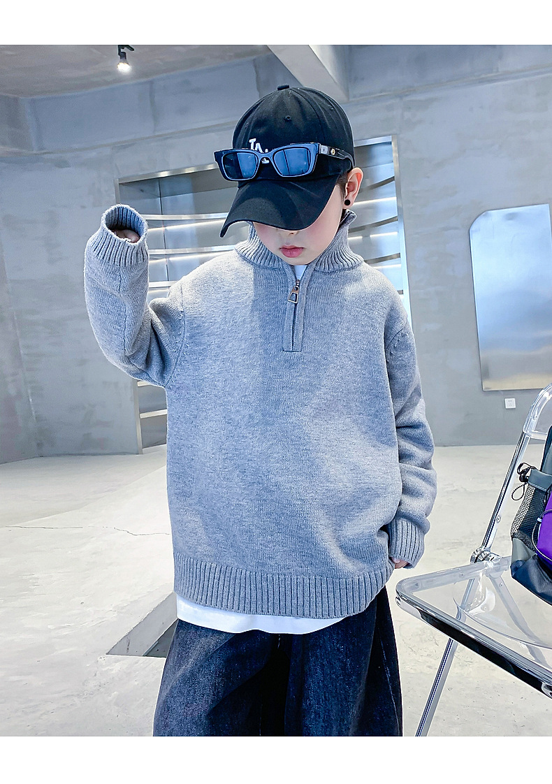 소년 겨울 잘 생긴 하프 카디건 터틀넥 스웨터 2024 새로운 어린이 가을, 겨울 두꺼운 니트 스웨터 재킷