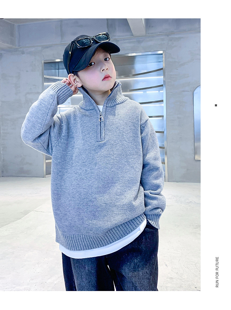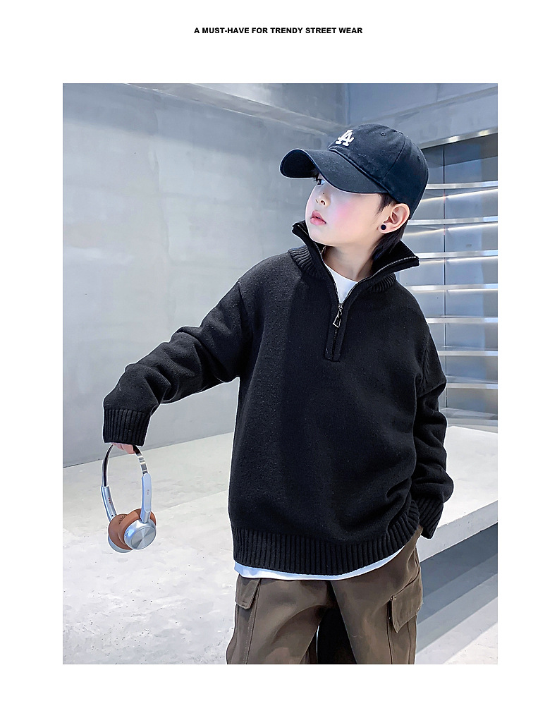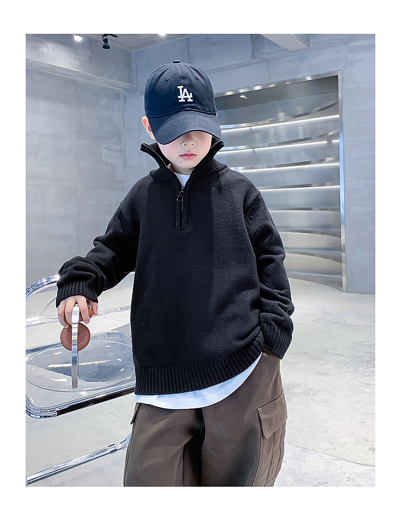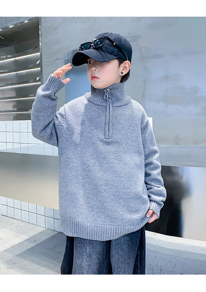 소년 겨울 잘 생긴 하프 카디건 터틀넥 스웨터 2024 새로운 어린이 가을, 겨울 두꺼운 니트 스웨터 재킷