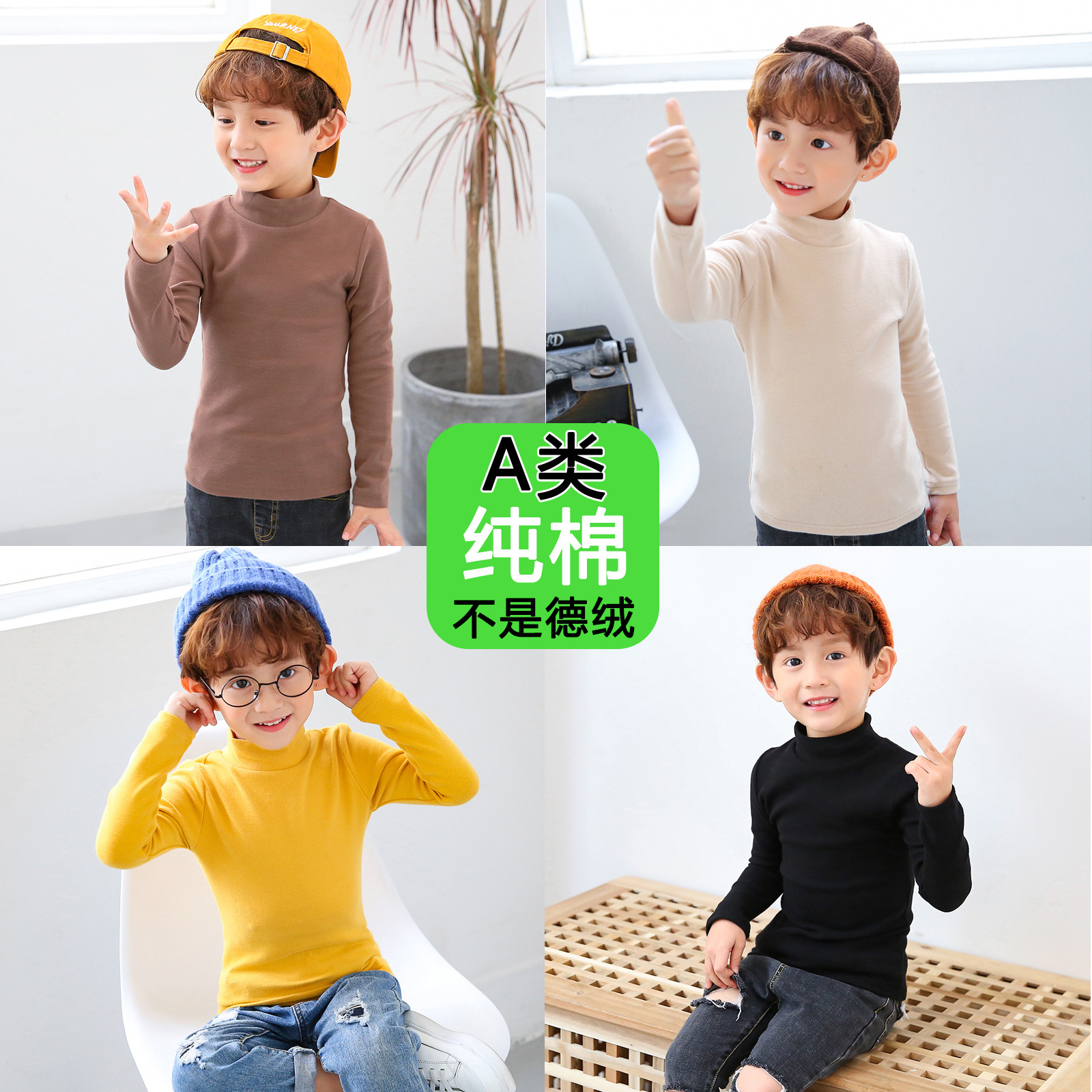 반 높이 칼라 아동베이스 셔츠 소년의 가을과 겨울 유형 순수 코튼 소녀의 내부 아기 따뜻한 탑 긴팔 티셔츠