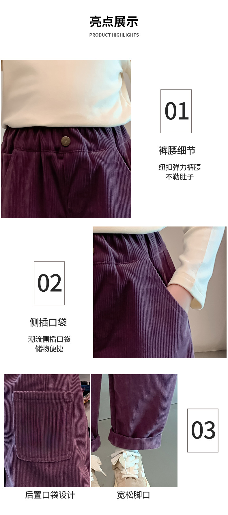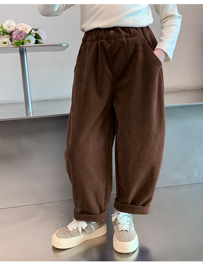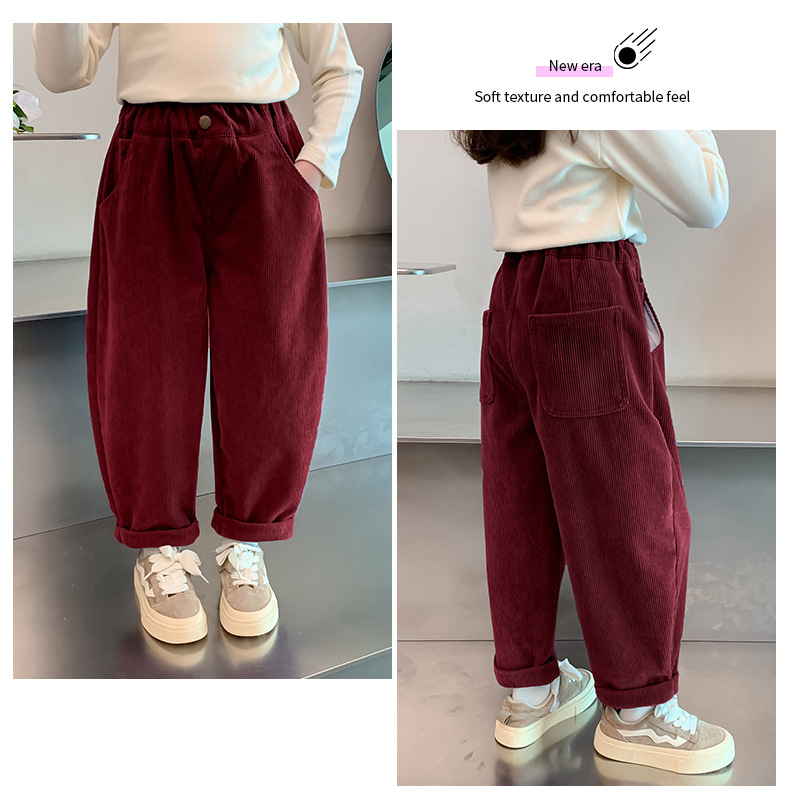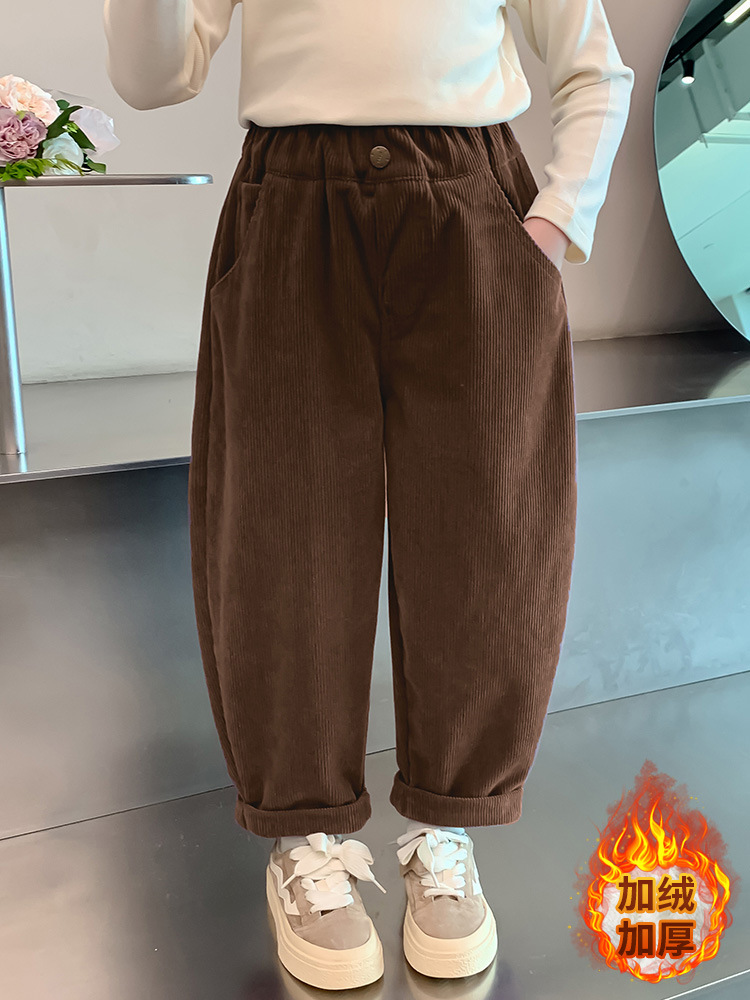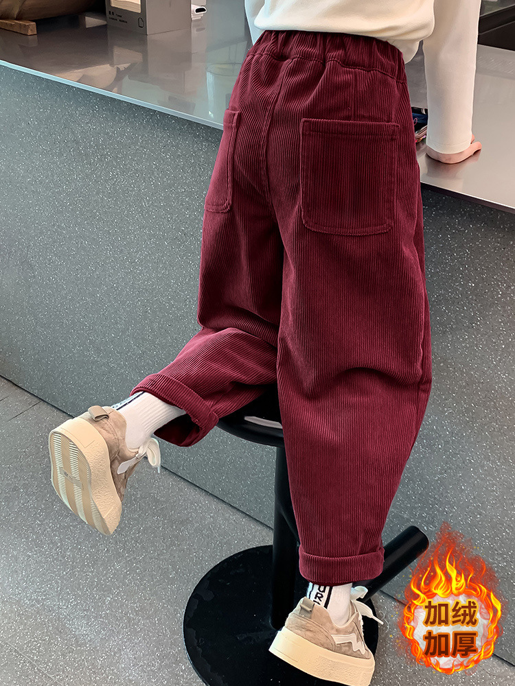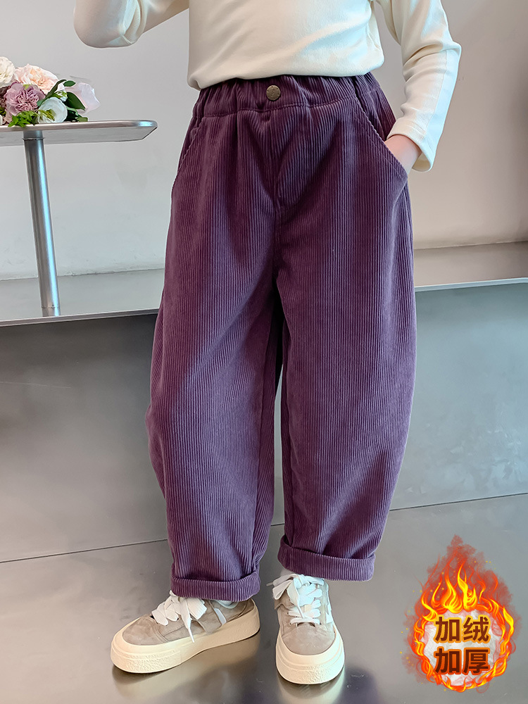 어린이 소녀 바지 소녀 겨울 새로운 스타일 중 큰 어린이 기모 두꺼운 후주 직조 코듀로이 토레 바지
