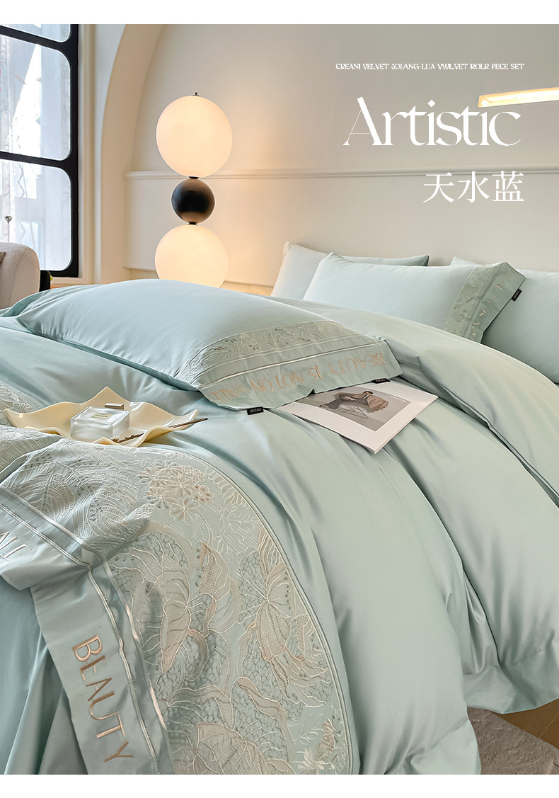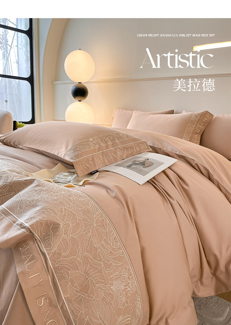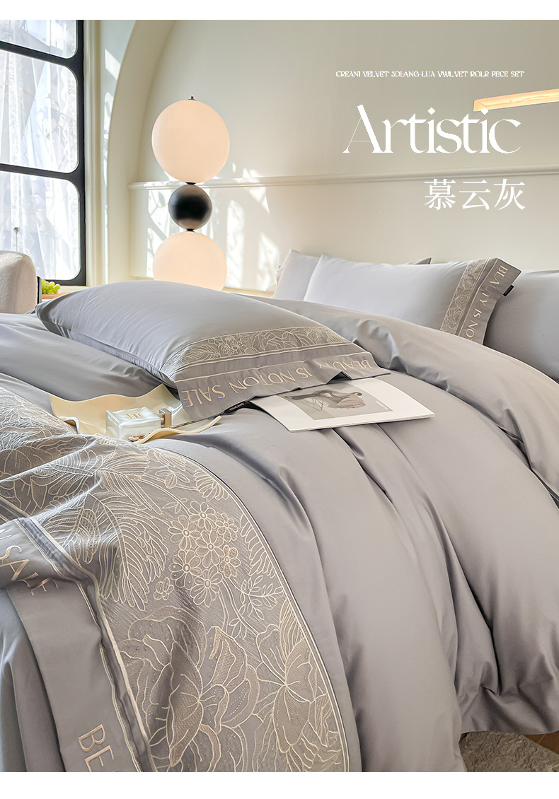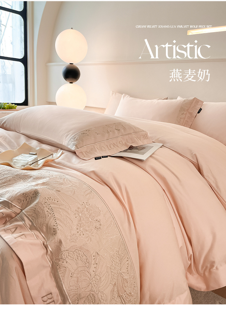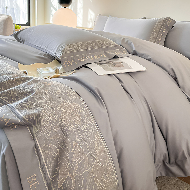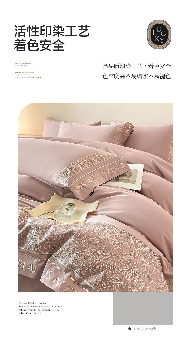 새로운 코튼 4 피스 세트 코튼 라이트 럭셔리 알몸 슬리핑 드라이 헤비 자수 침대 시트 퀼트 커버 호텔 스타일 침구스토어 가기
