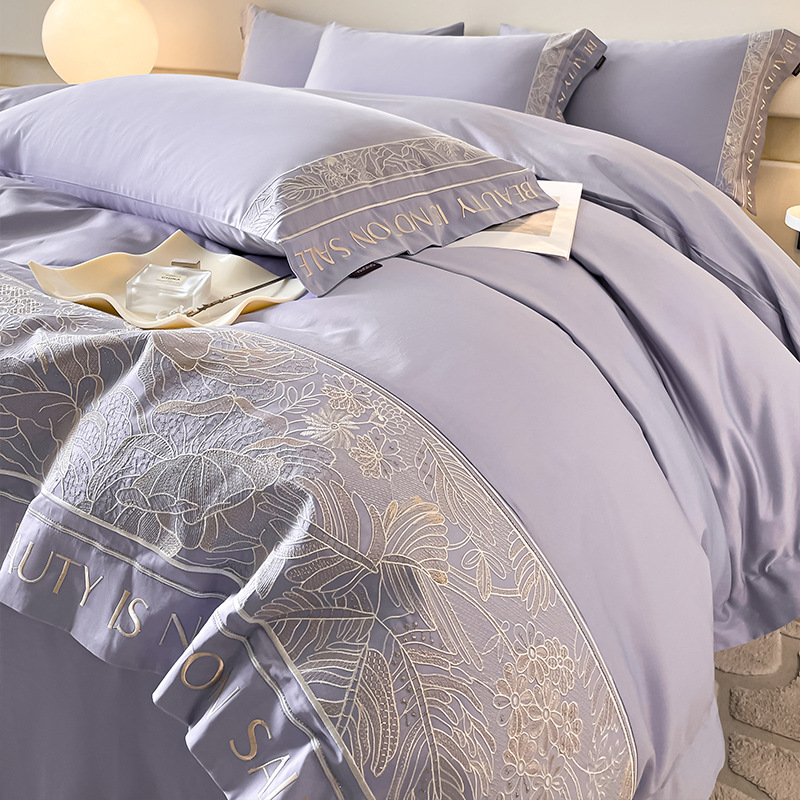 새로운 코튼 4 피스 세트 코튼 라이트 럭셔리 알몸 슬리핑 드라이 헤비 자수 침대 시트 퀼트 커버 호텔 스타일 침구