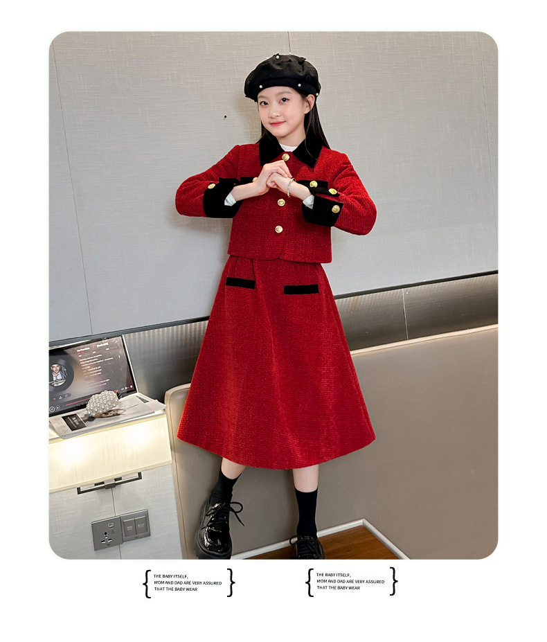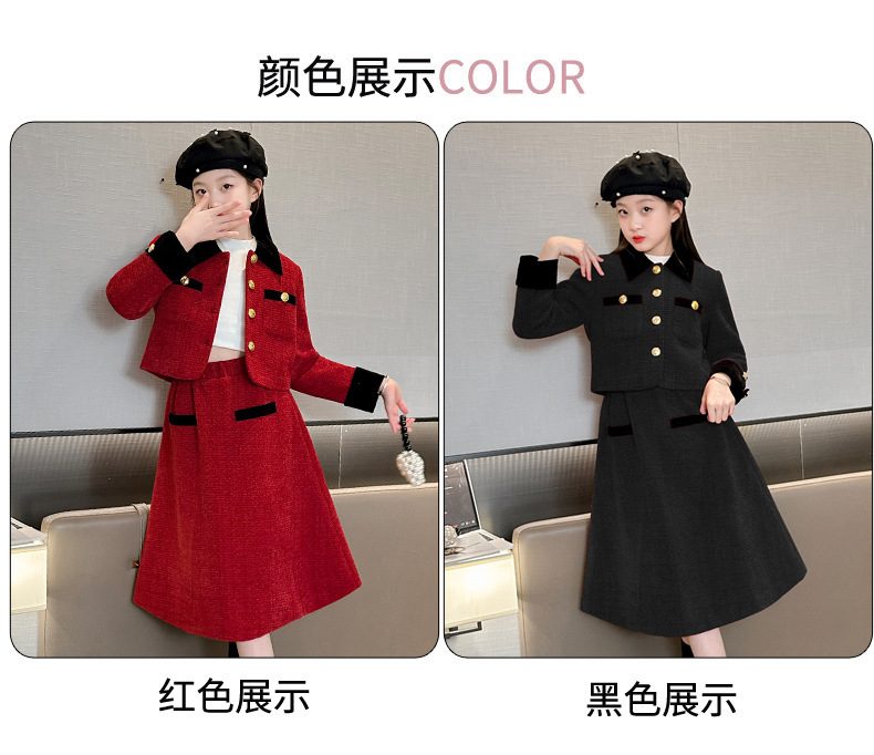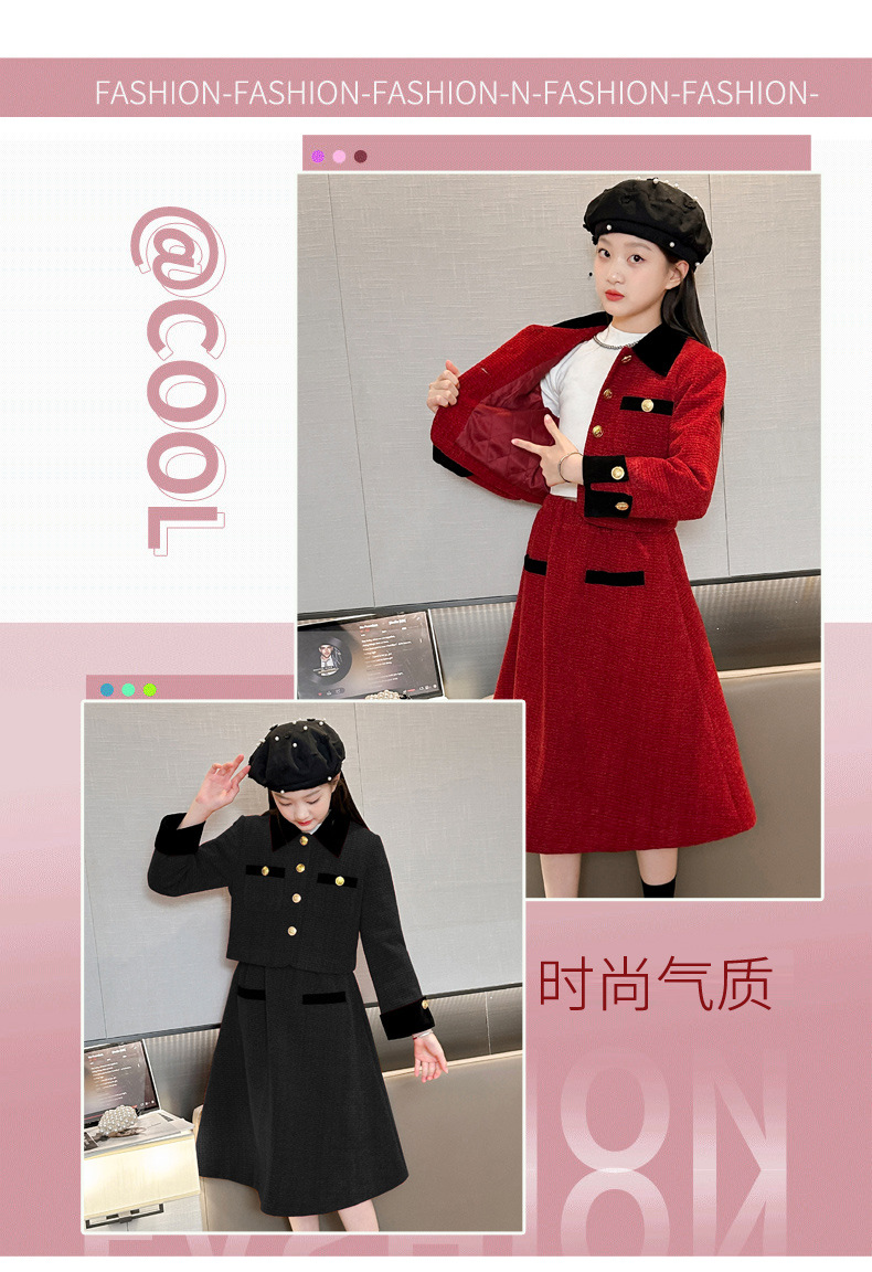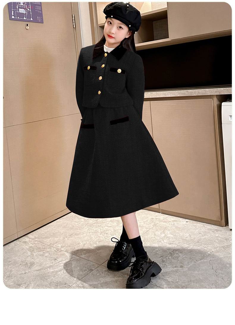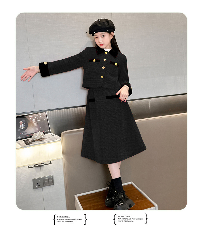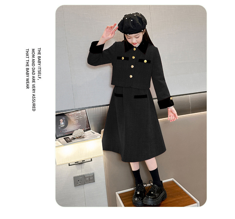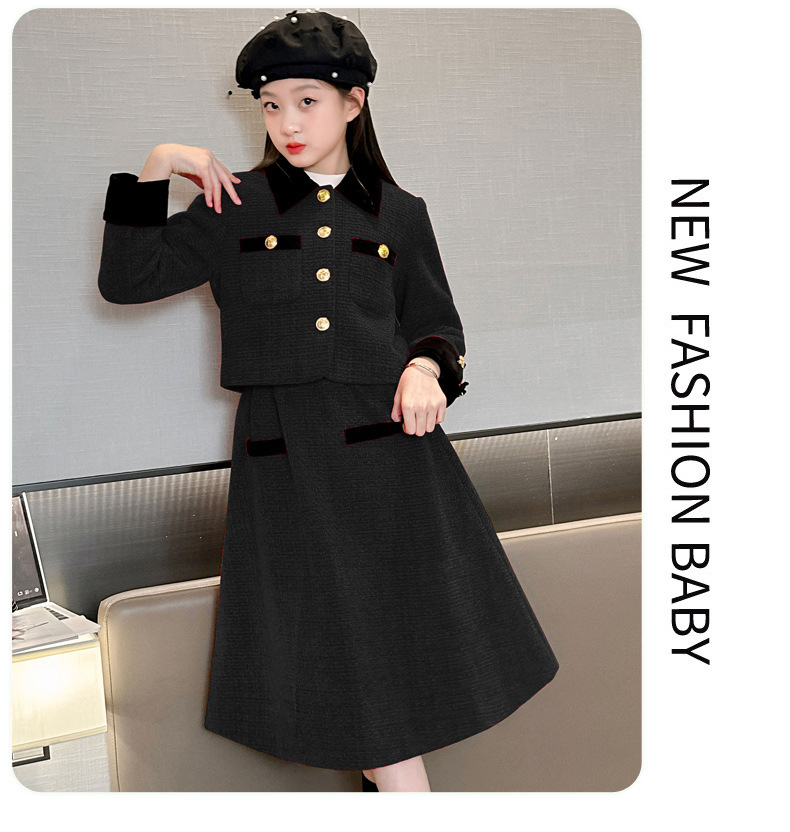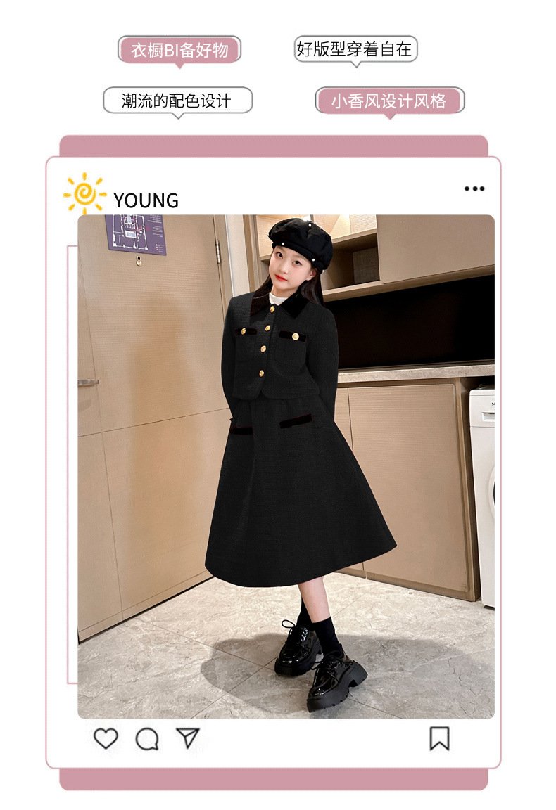 소녀 가을과 겨울 면화 두꺼운 샤넬 스타일 원피스 2024 새로운 스타일 겨울 어린이 프랑스어 두 조각스토어 가기