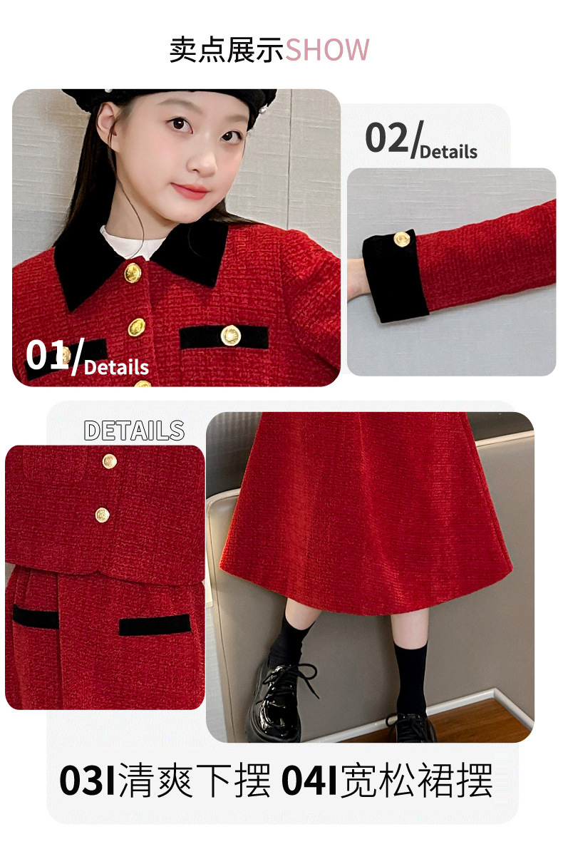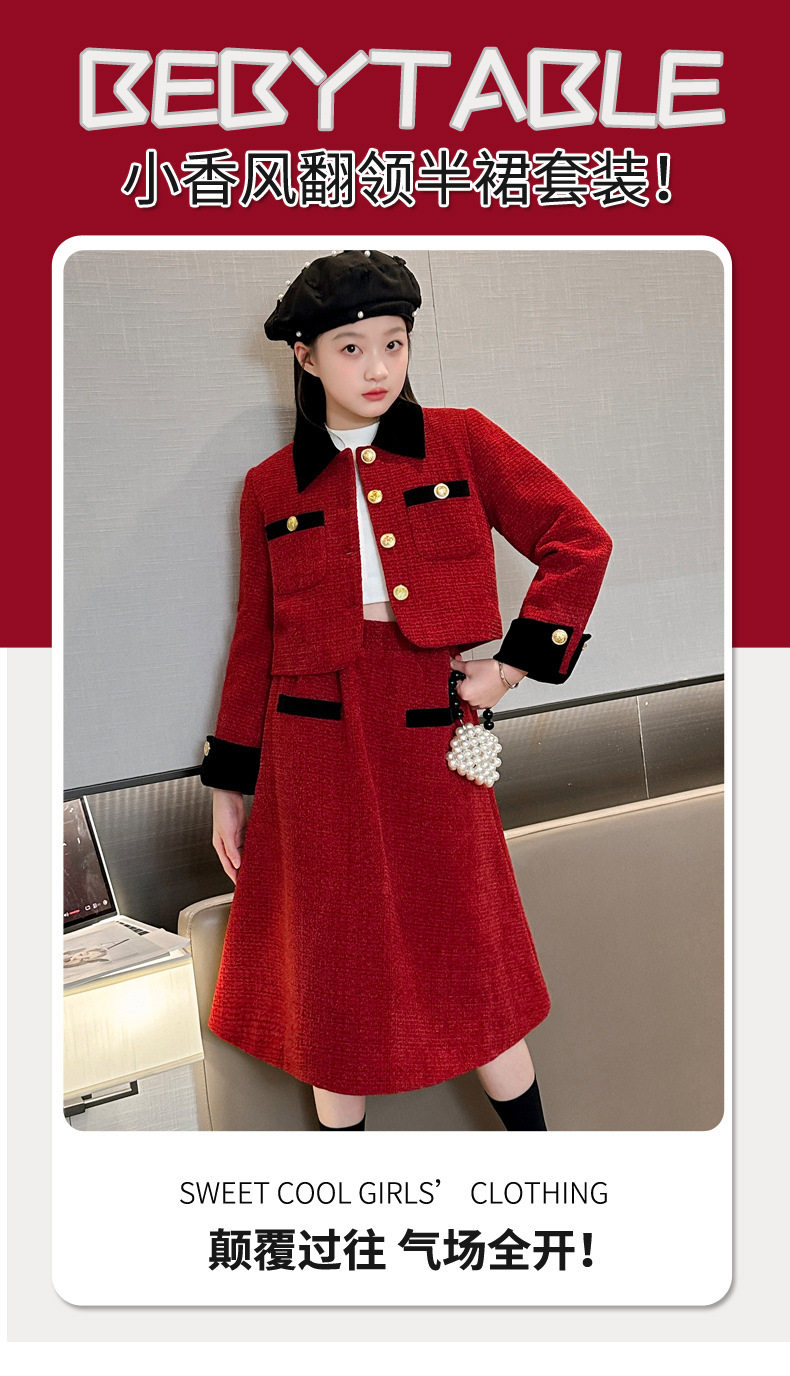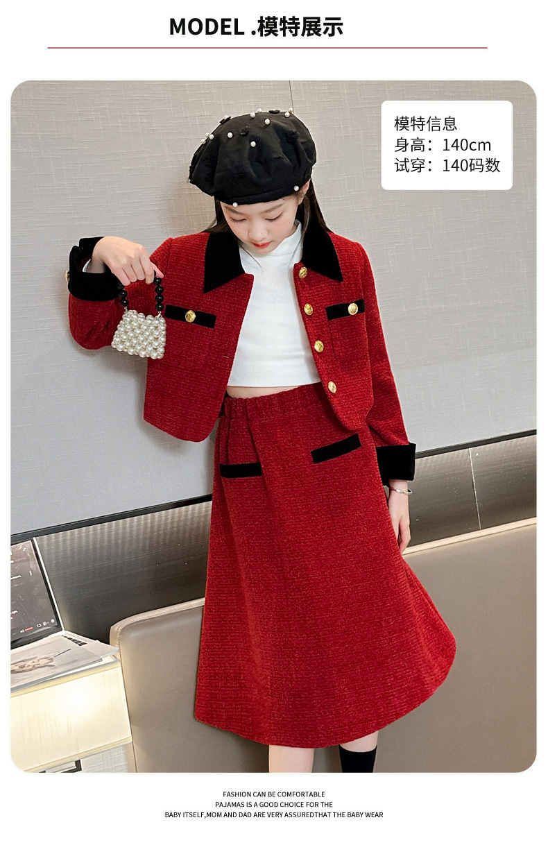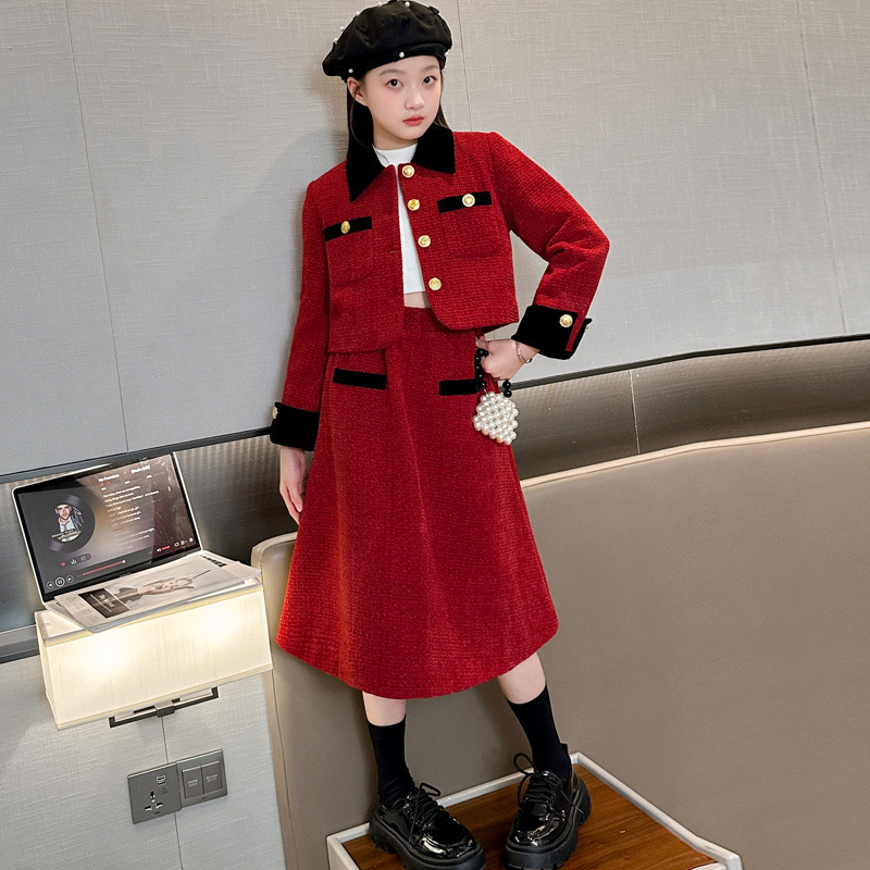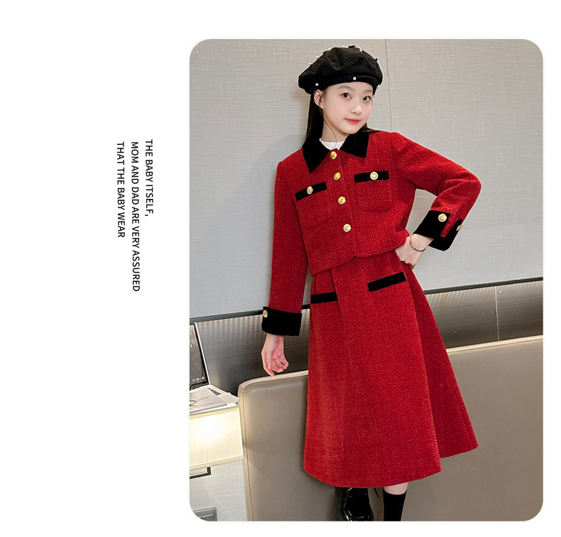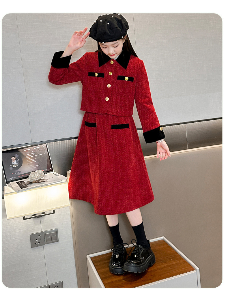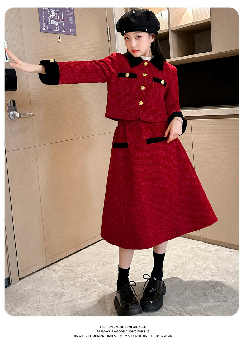 소녀 가을과 겨울 면화 두꺼운 샤넬 스타일 원피스 2024 새로운 스타일 겨울 어린이 프랑스어 두 조각스토어 가기