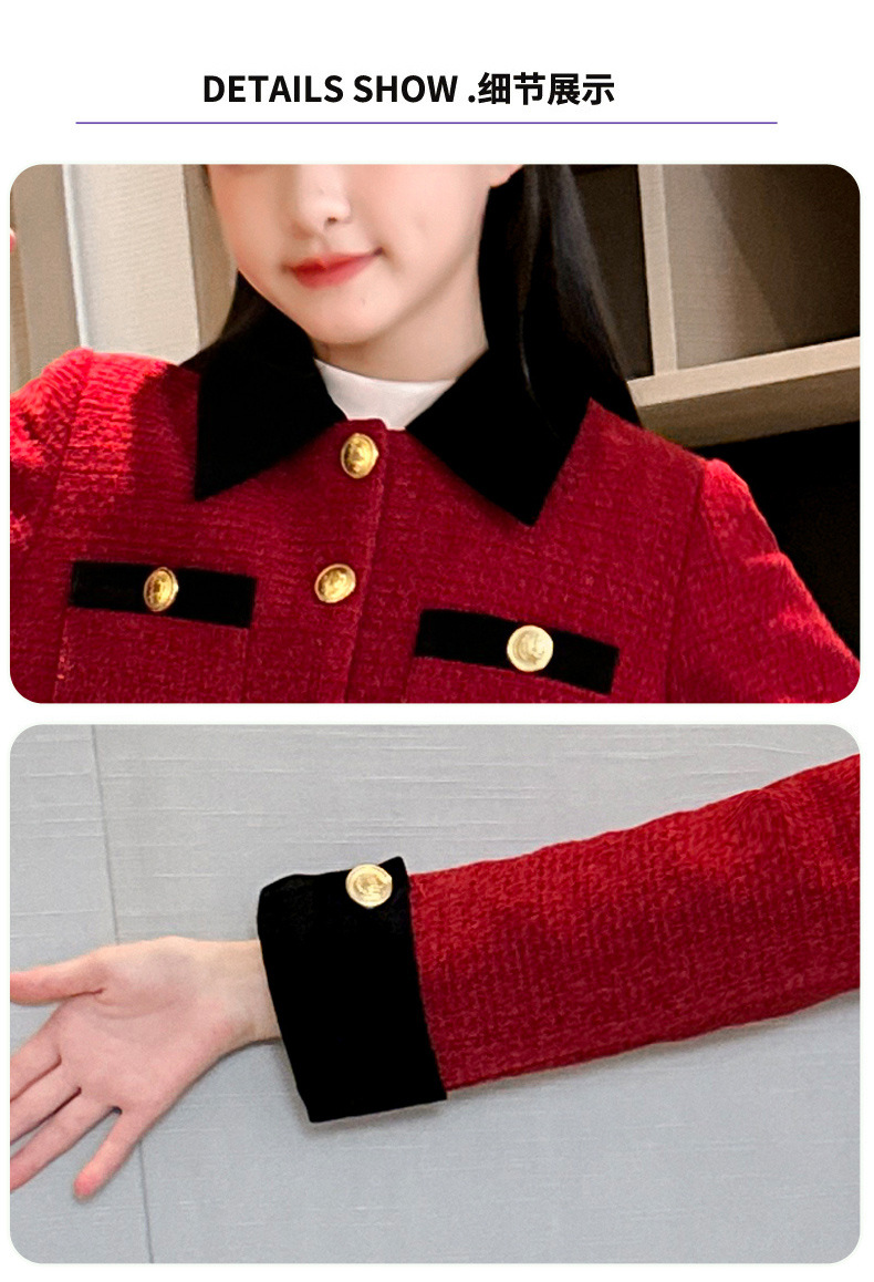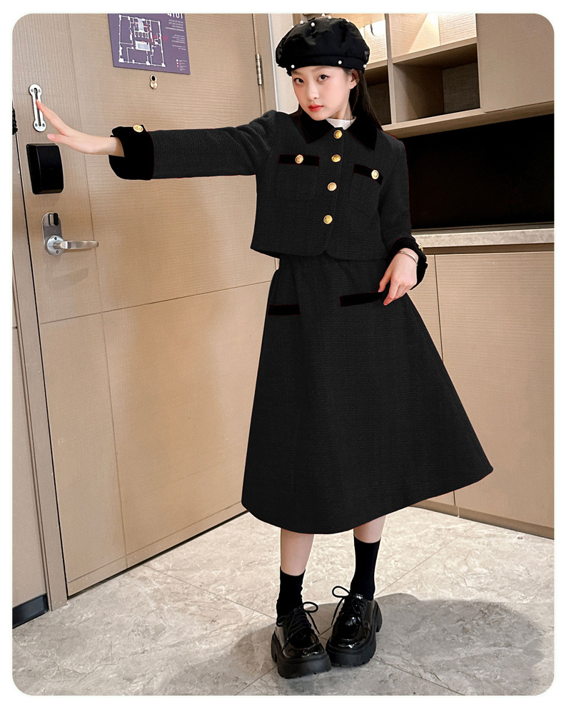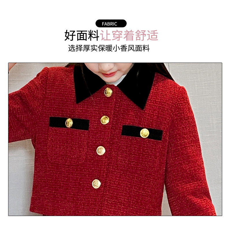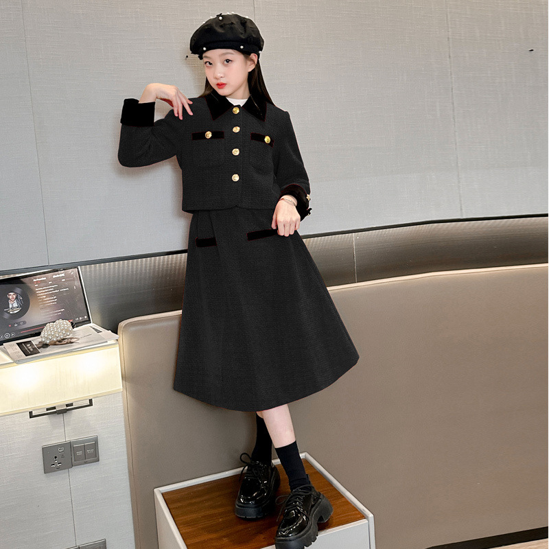 소녀 가을과 겨울 면화 두꺼운 샤넬 스타일 원피스 2024 새로운 스타일 겨울 어린이 프랑스어 두 조각