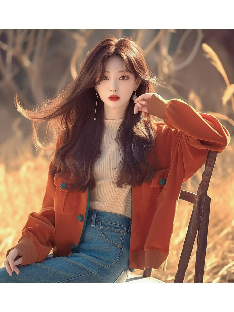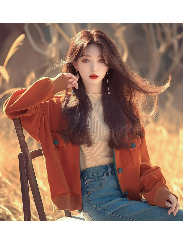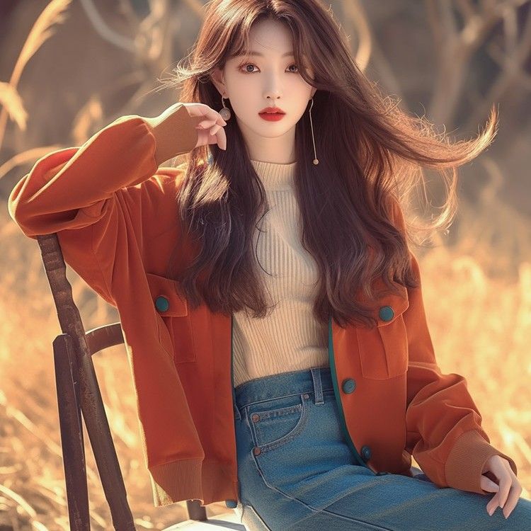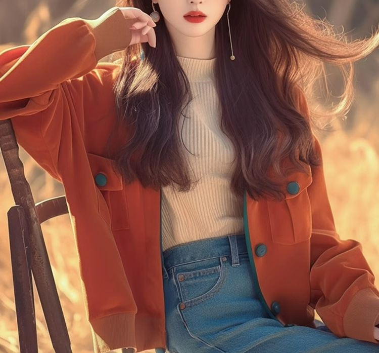 이른 가을 새로운 독특한 슈퍼 잘 생긴 탑 틈새 세련된 하이 엔드 오렌지 긴팔 샤넬 스타일 짧은 재킷스토어 가기