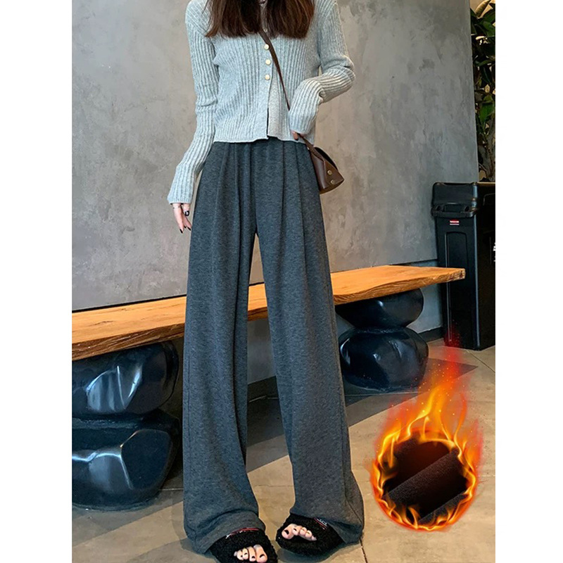 겨울 새로운 도착 기모 두꺼운 찹쌀 바지 여성 높은 허리 캐주얼 기모 넓은 다리 바지 작은 여성의 가을과 겨울 니트 바지스토어 가기