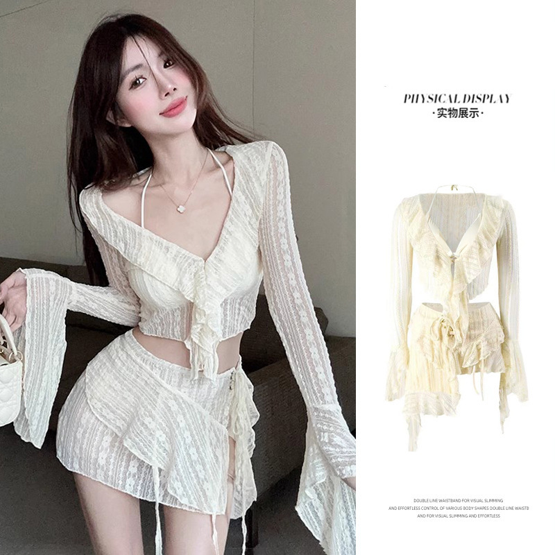 비키니 수영복 여성용 2024 새로운 요정 분할 4 피스 세트 우아한 섹시한 순수한 욕망 작은 가슴 푸시 업 수영복
