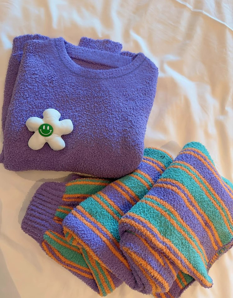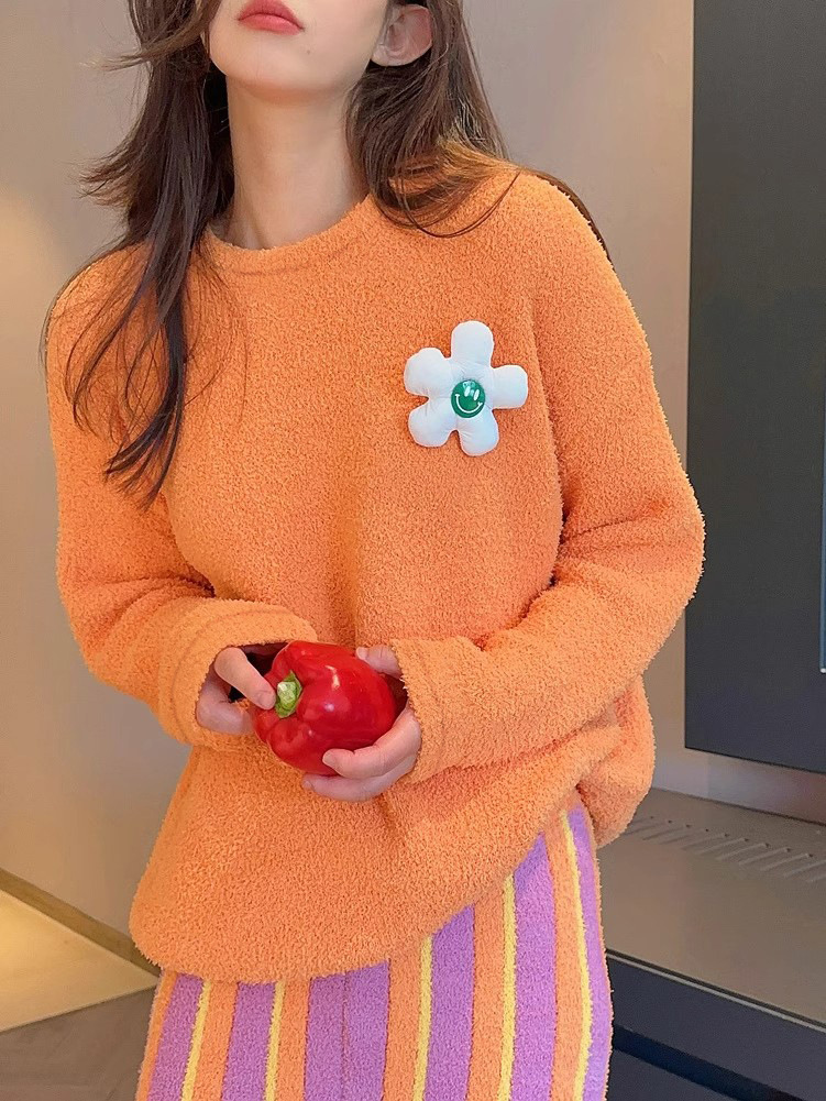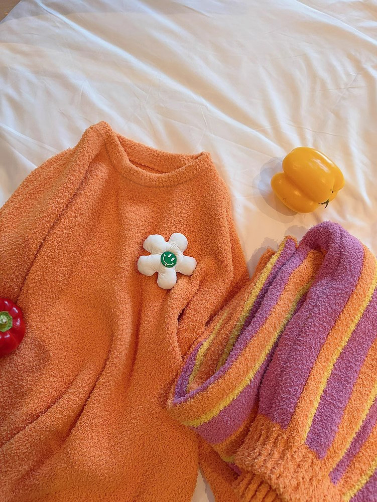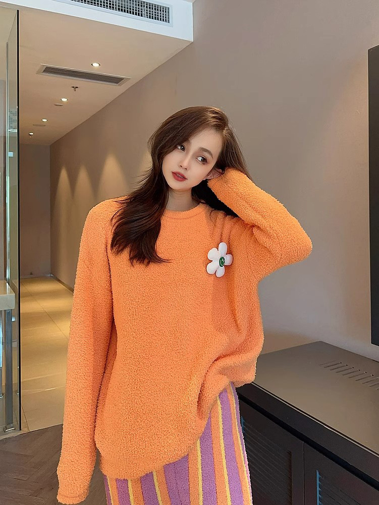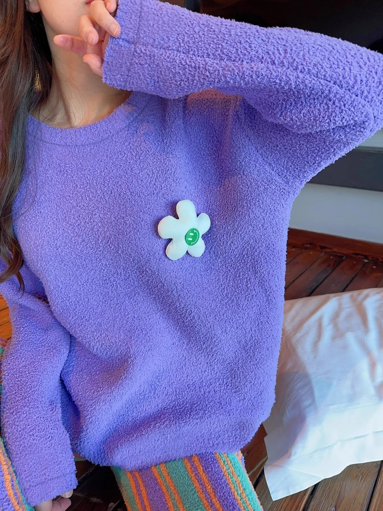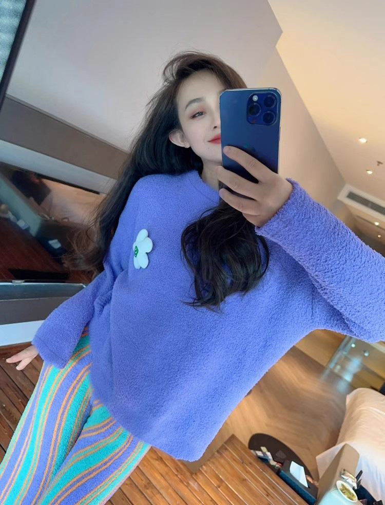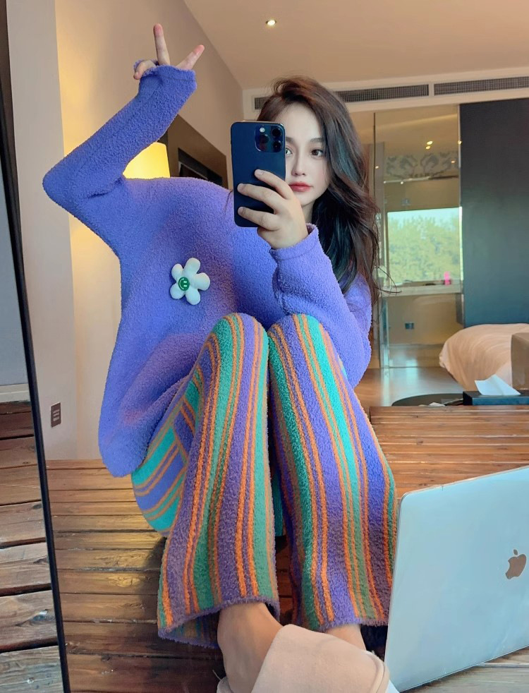 새로운 스타일의 심플한 하프 벨벳 홈웨어 세트, 가을 겨울 스타일, 부드럽고 달콤하며 캐주얼한 여성용 긴팔 잠옷스토어 가기