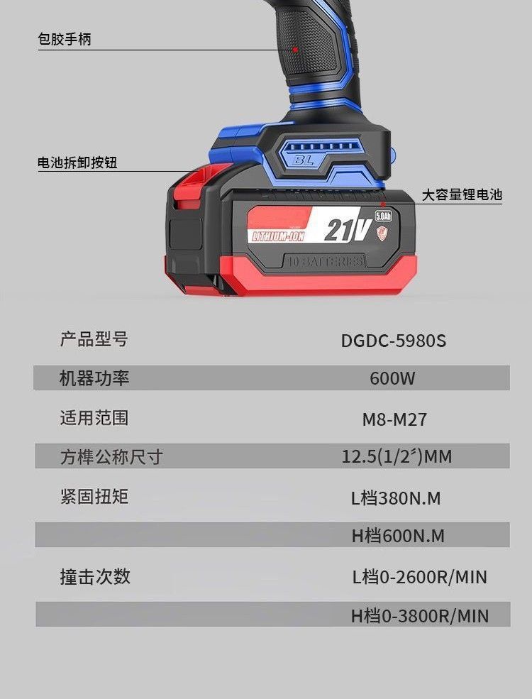 동청 브러시리스 전기 렌치 리튬 충전식 대형 토크 렌치 프레임 작업자 자동 수리 다기능 공기 총