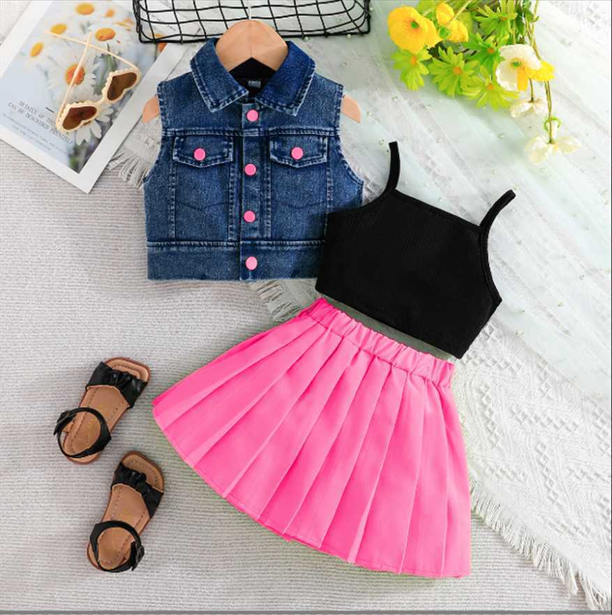 국경 새 여름 소녀 데님 조끼 탑 슬링 속옷 그린 100 배 스커트 벨트 4 피스 세트