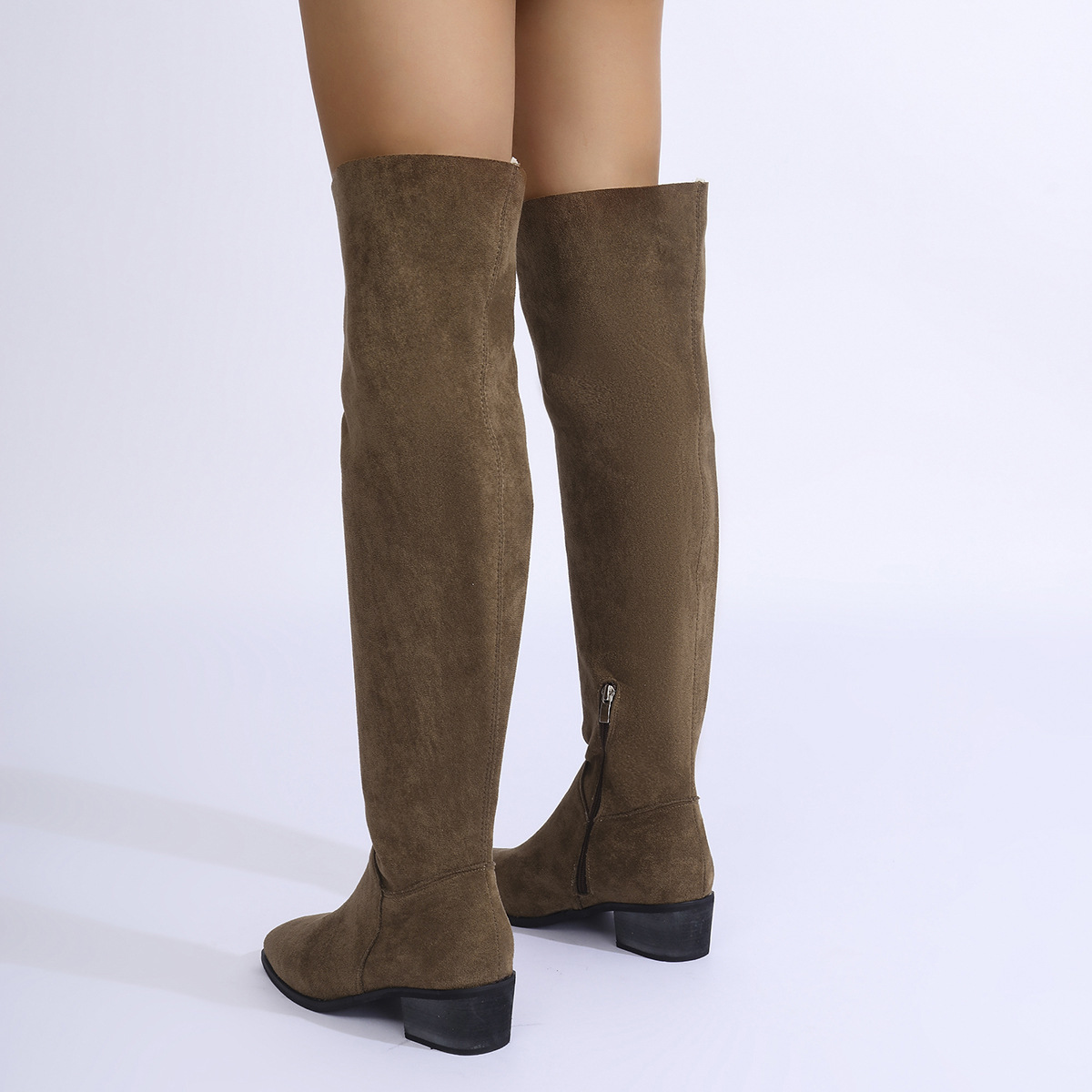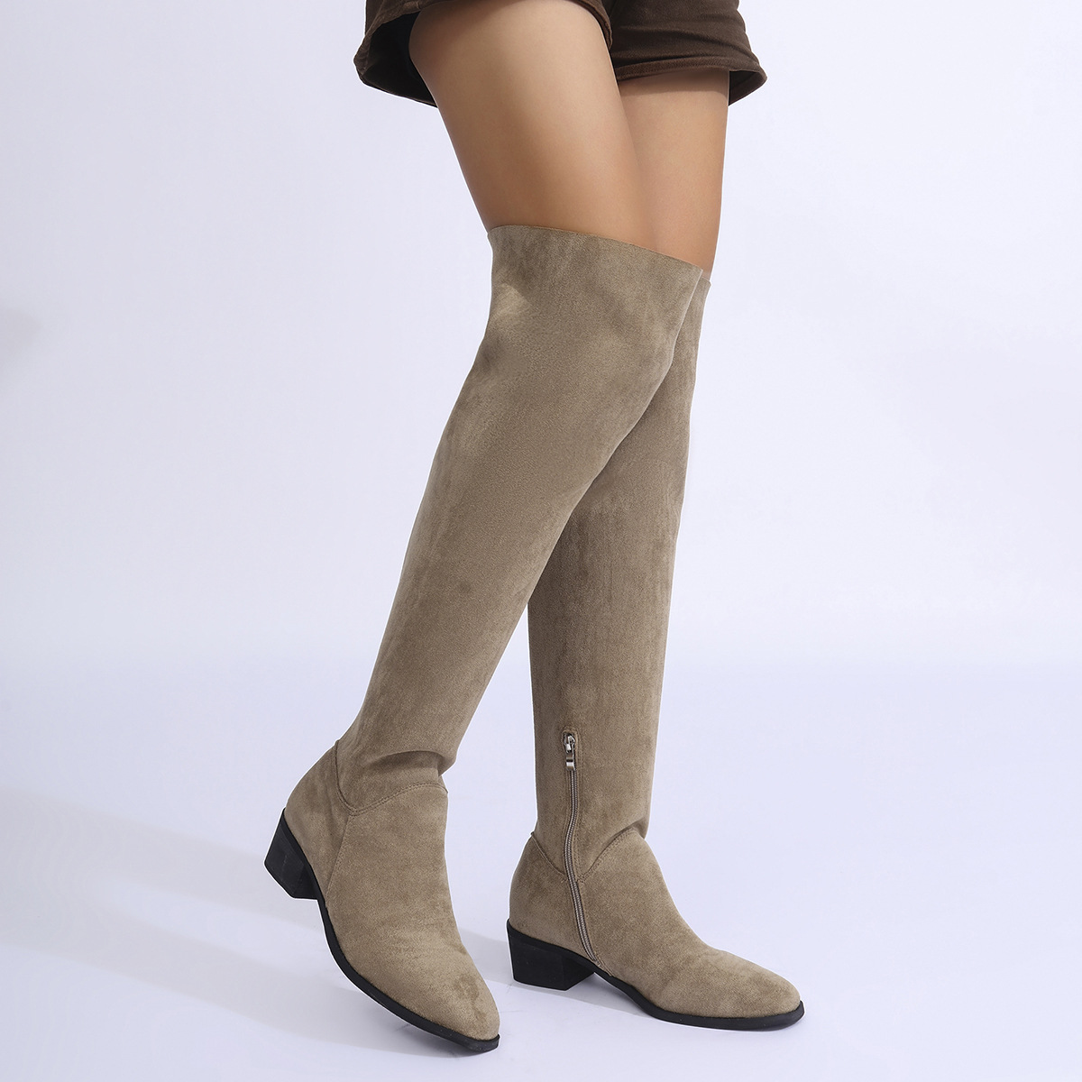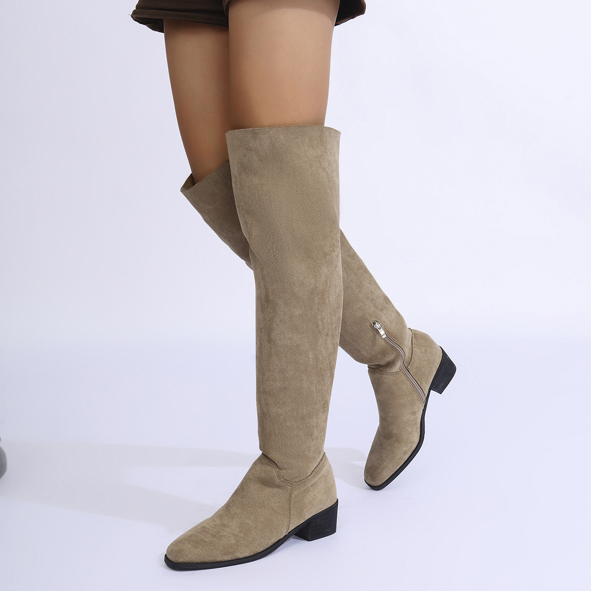 국경을 넘는 플러스 사이즈 2024 년 무릎 위 스트레치 부츠 여성용 두꺼운 발 뒤꿈치 가을과 겨울 새로운 플러스 사이즈 사이드 지퍼 스웨이드 슬림 부츠