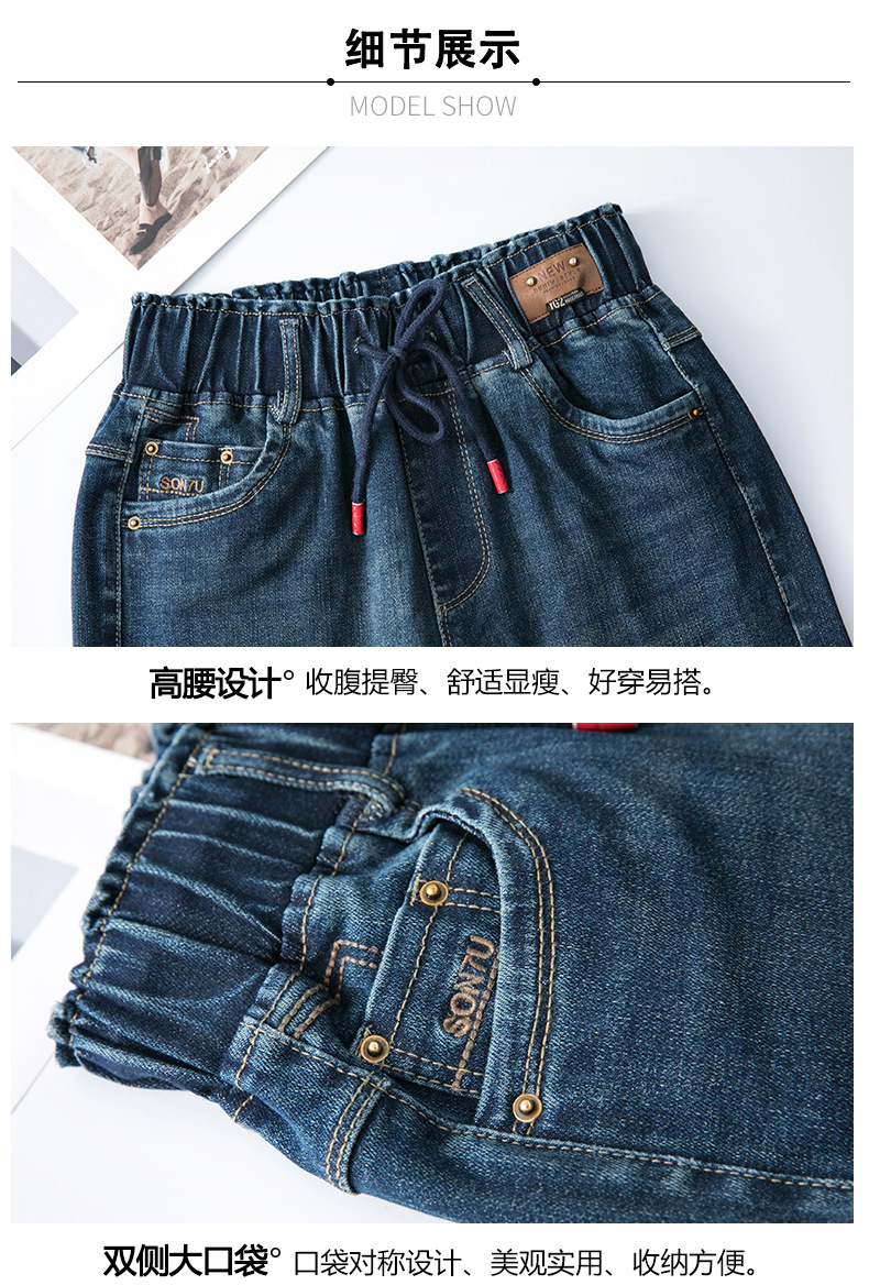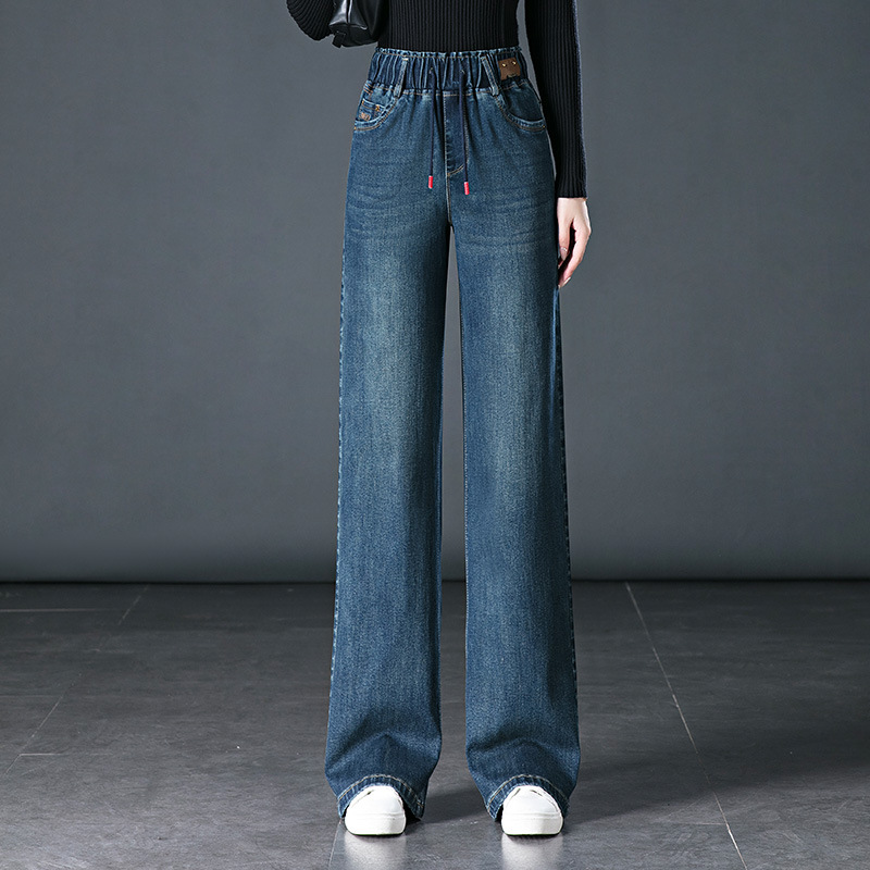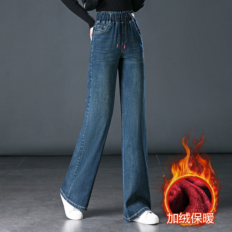 빈티지 블루 좁은 넓은 다리 청바지 여자 플러스 사이즈 플러스 사이즈 가을과 겨울 기모 두꺼운 캐주얼 스트레이트 바지 9X스토어 가기