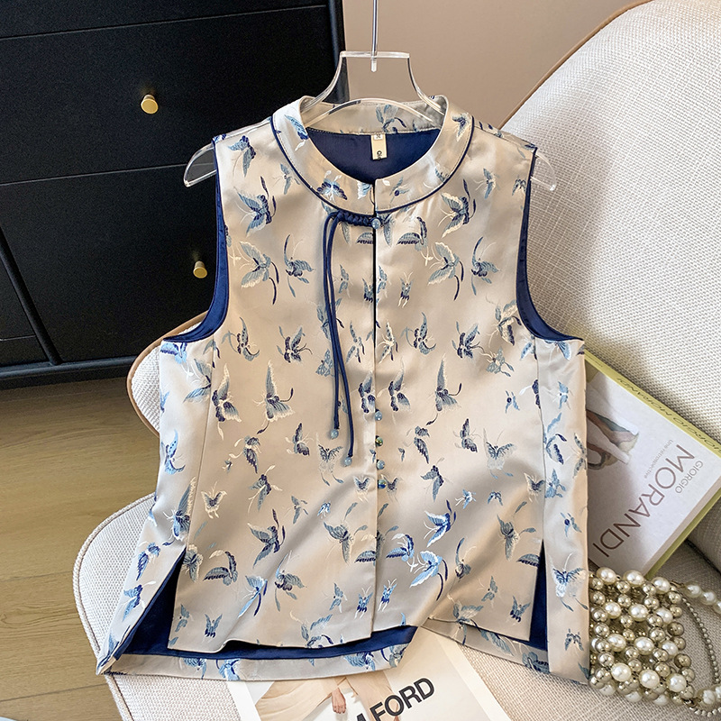 2025 봄 가을 신상 중국풍 복고풍 라운드넥 단추 자수 조끼 여성 자켓 중국풍 민소매 조끼 상의