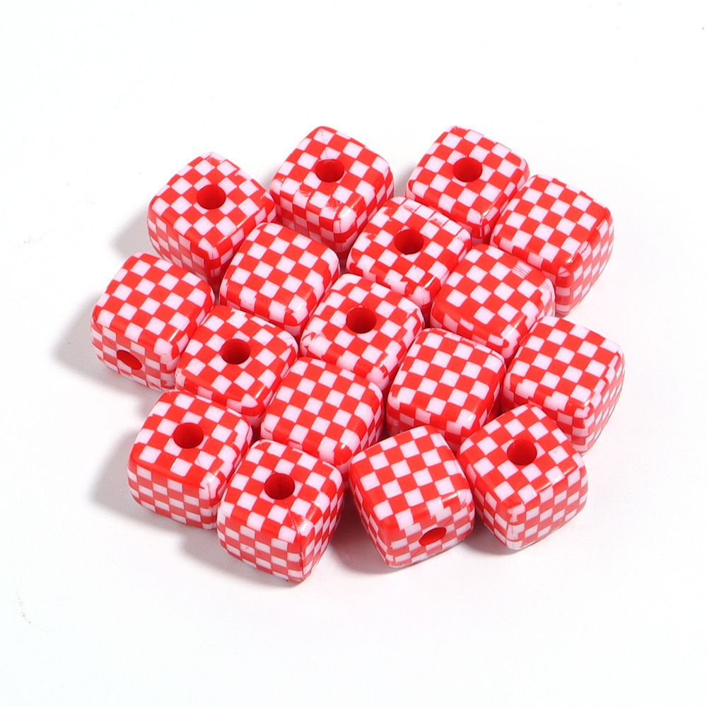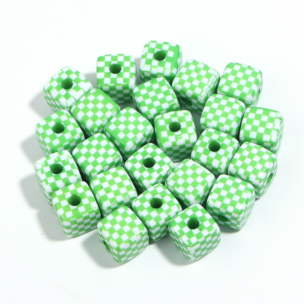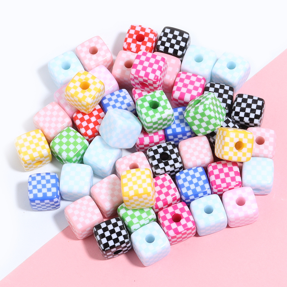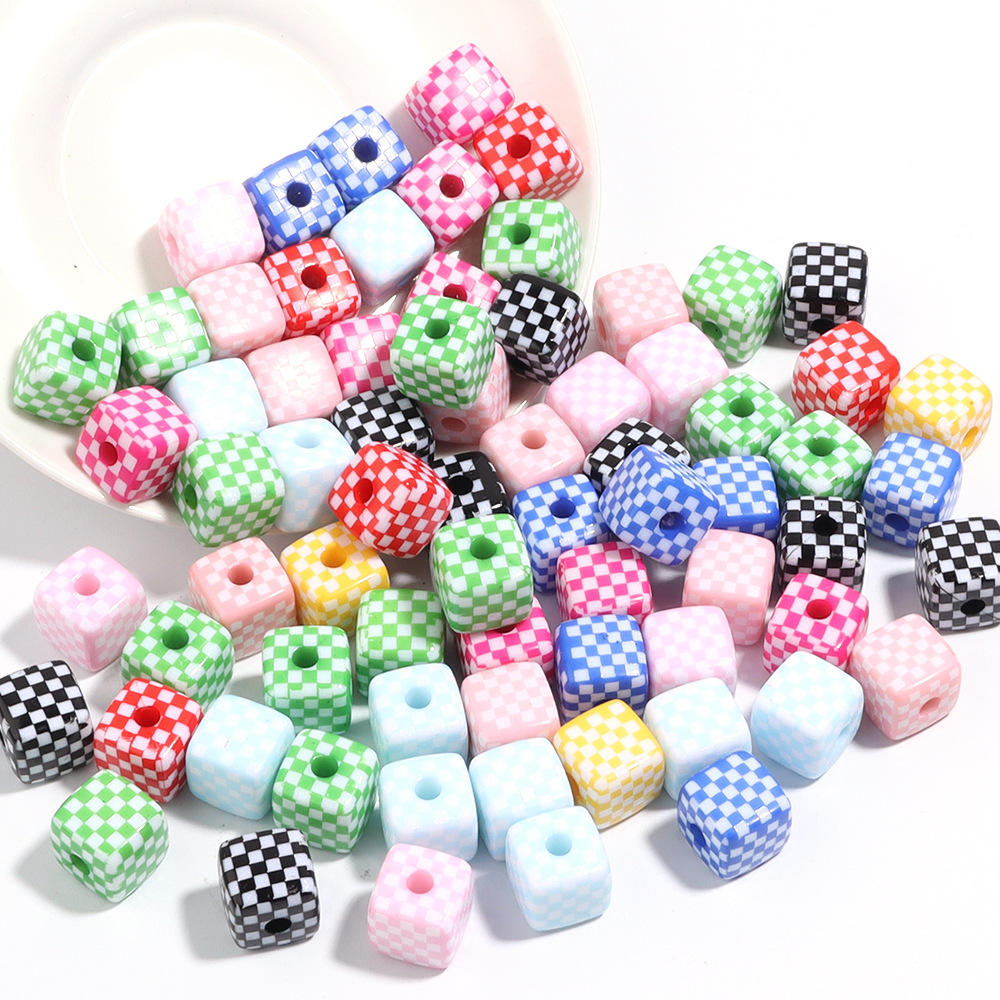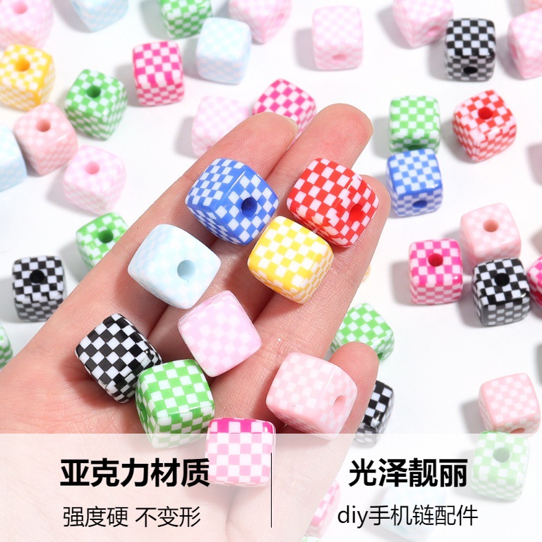 아크릴 스퀘어 비즈 컬러 체커 보드 격자 스트레이트 홀 스퀘어 비즈 수제 DIY 휴대 전화 체인 펜던트 액세서리