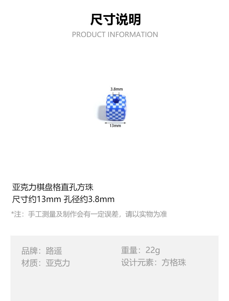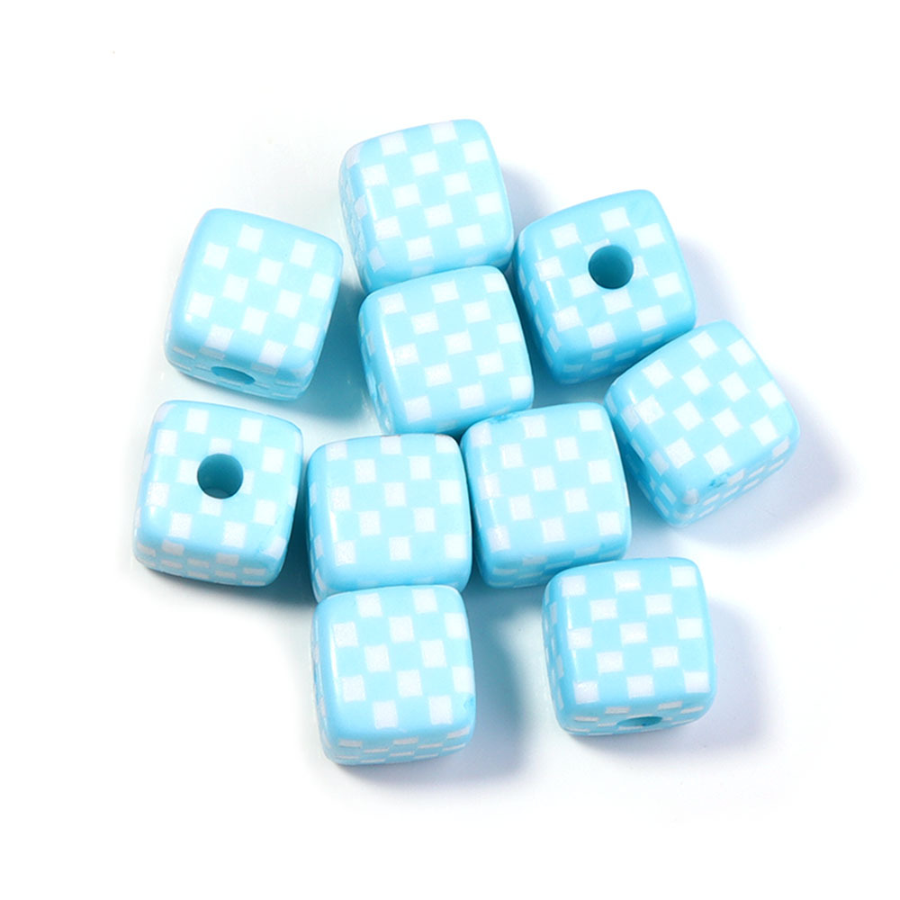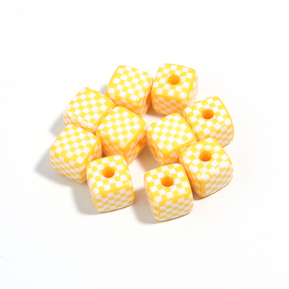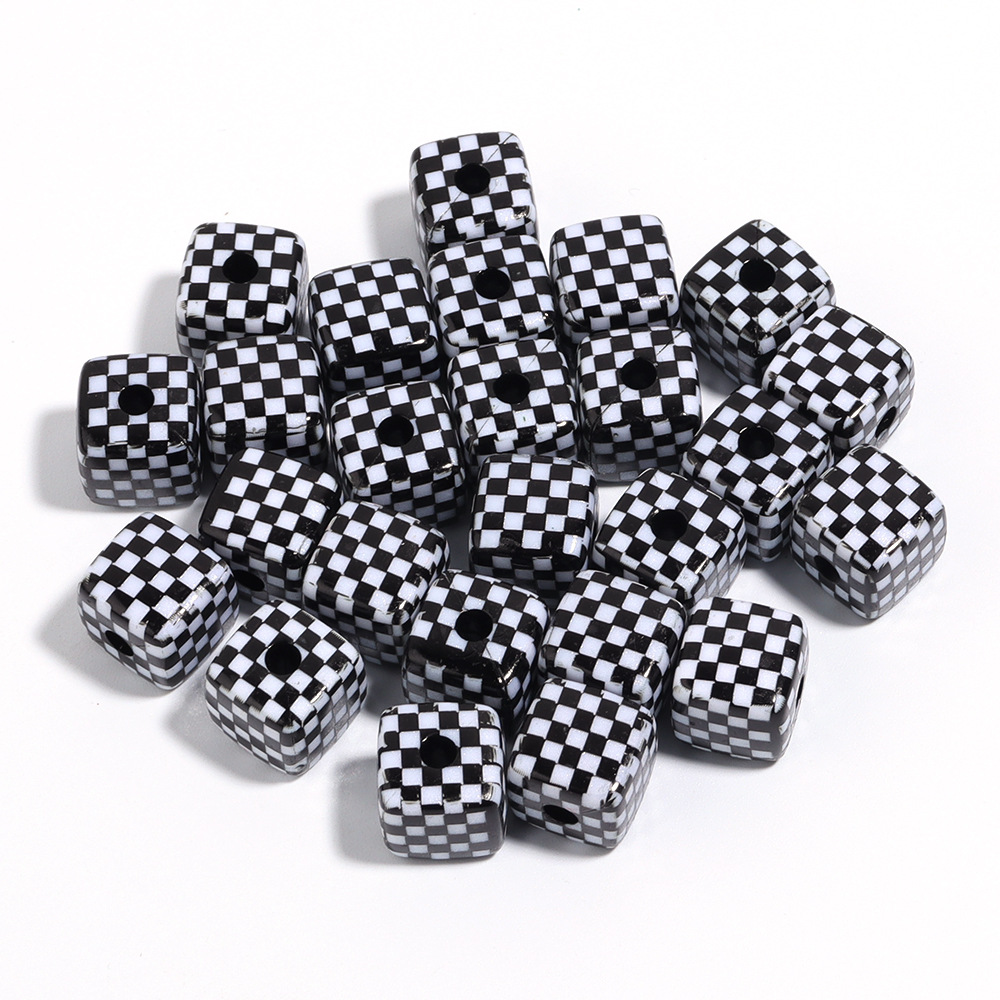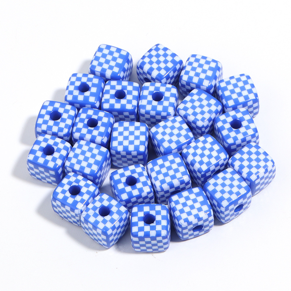 아크릴 스퀘어 비즈 컬러 체커 보드 격자 스트레이트 홀 스퀘어 비즈 수제 DIY 휴대 전화 체인 펜던트 액세서리