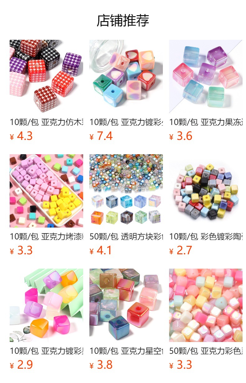아크릴 스퀘어 비즈 컬러 체커 보드 격자 스트레이트 홀 스퀘어 비즈 수제 DIY 휴대 전화 체인 펜던트 액세서리스토어 가기