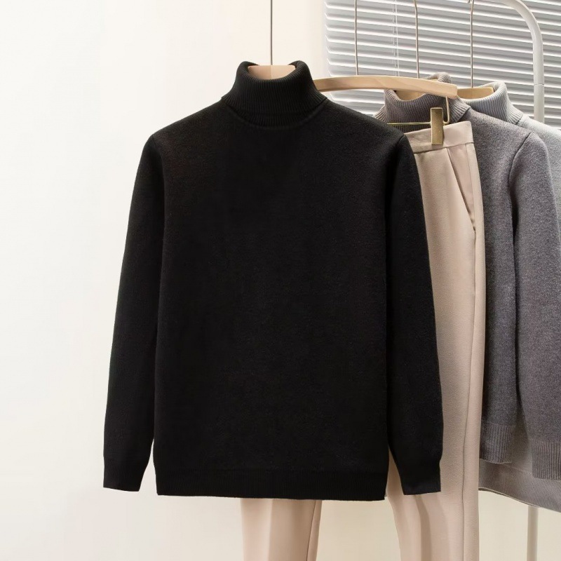 국경 간 터틀넥 스웨터 남자 슬림 핏 블랙 2023 가을과 겨울 새로운 한국 패션 남성베이스 셔츠 트렌디
