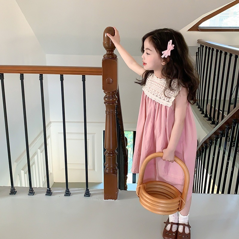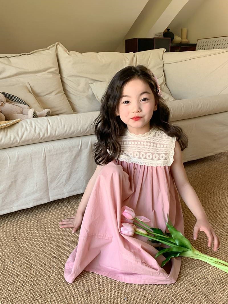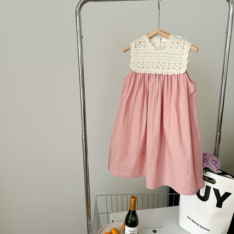 소녀 서양식 핑크 레이스 자수 공주 선박 원피스 여름 어린이 우아한 민소매 원피스 XT-77266스토어 가기