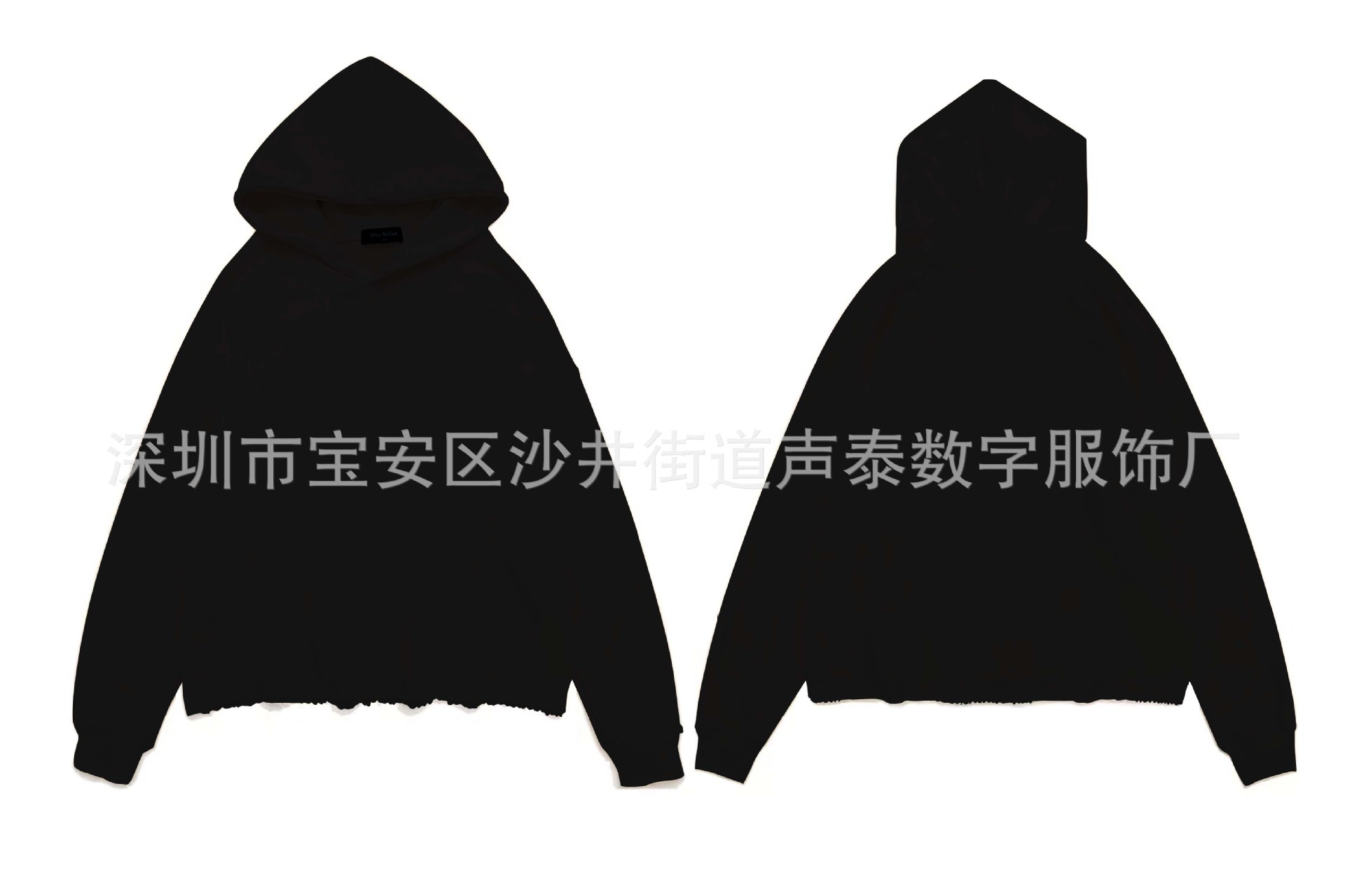 국경을 넘는 유럽과 미국의 플러스 사이즈 헤비급 순면 스웨터 남성 패션 브랜드 후드 스웨터 밑단이없는 대형 패턴