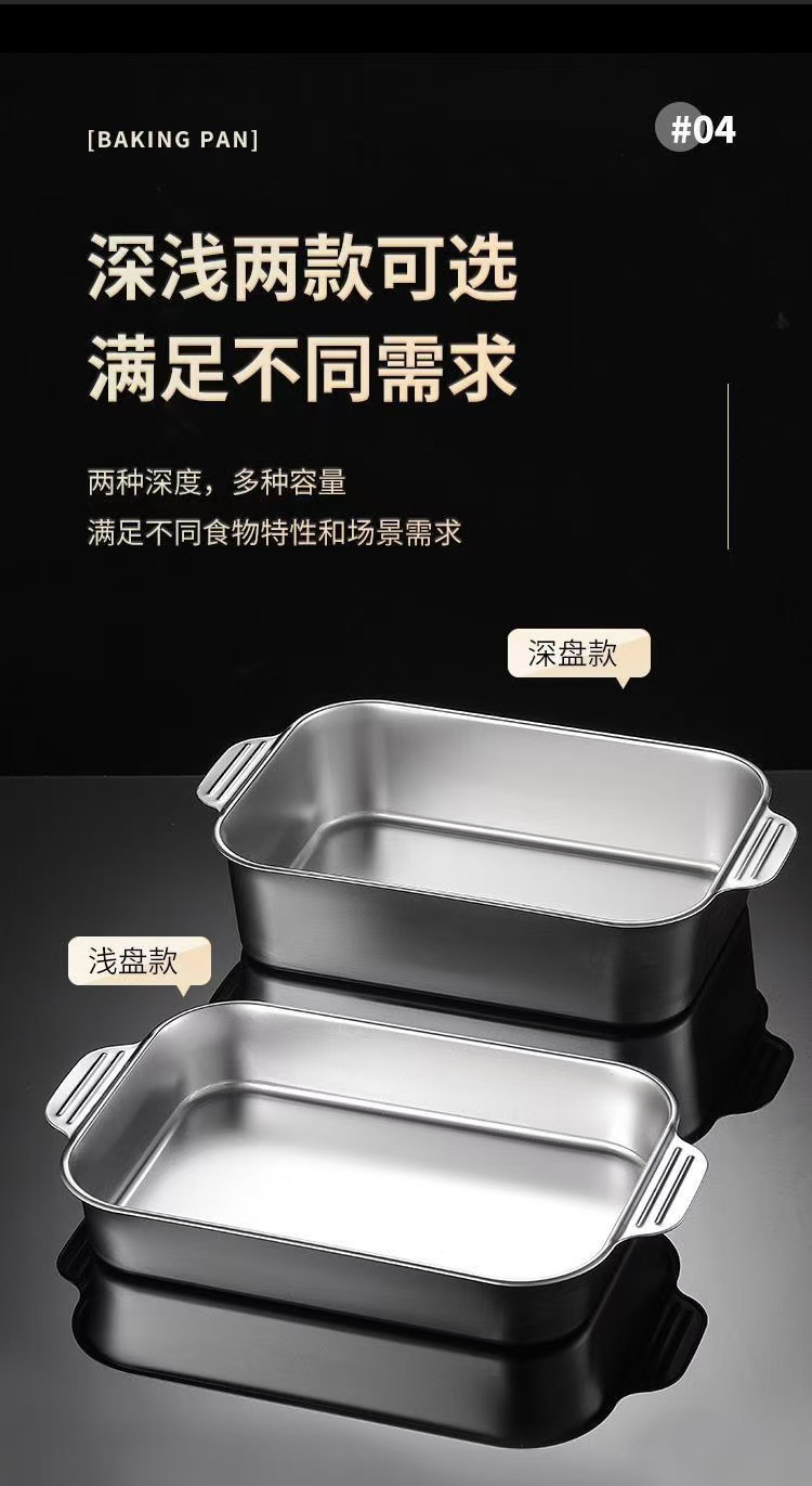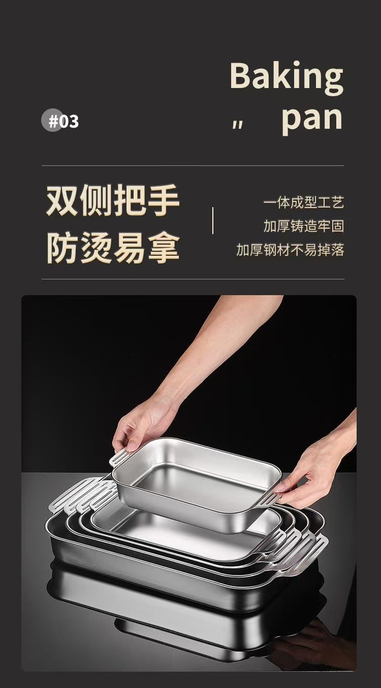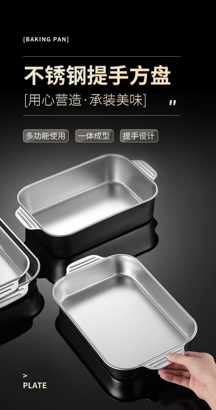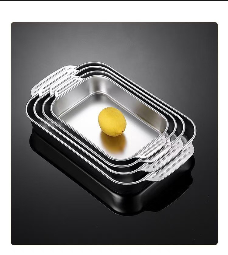 410 스테인레스 스틸 피쉬 플레이트 더블 이어 생선 구이 스토브 가스 스토브 유도 쿠커를위한 뚜껑 플랫 하단 트레이가있는 직사각형 트레이스토어 가기