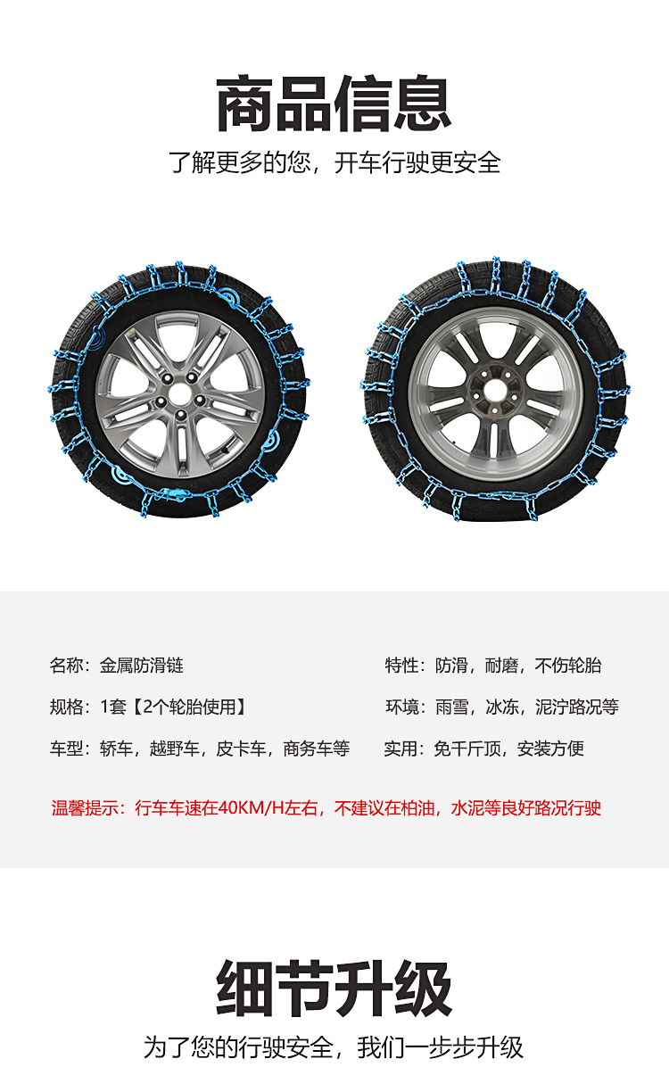 자동차 타이어 스노우 체인 자동차 suv 오프로드 차량 픽업 트럭 일반 겨울 눈 비상 사태는 타이어 휘파람 축하를 해치지 않습니다.