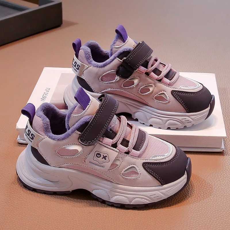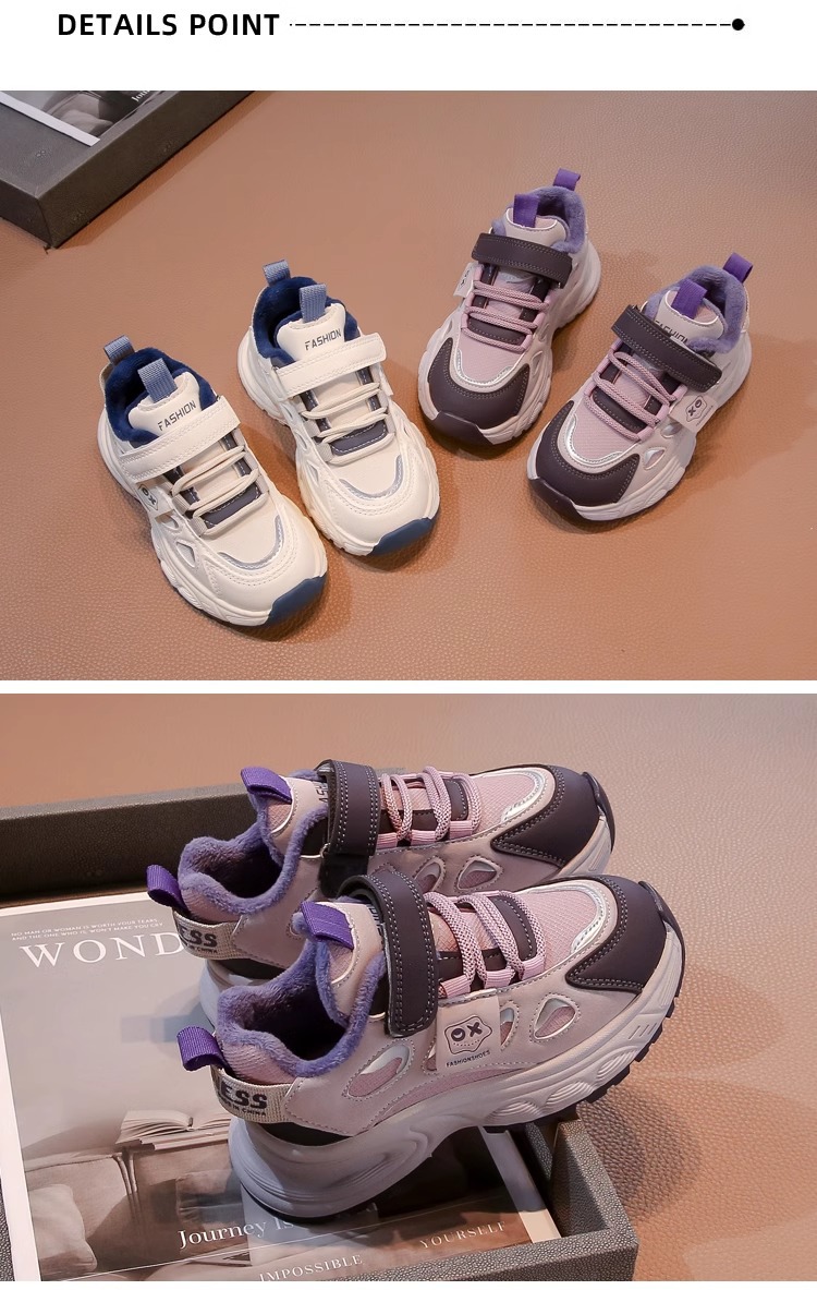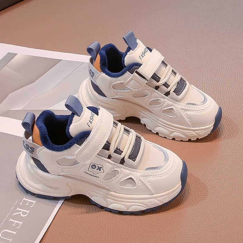소년 신발 2024 새로운 가을과 겨울 기모 코튼 신발 큰 어린이 튀긴 거리 달리기 운동화 어린이 아버지 작은 흰색 신발